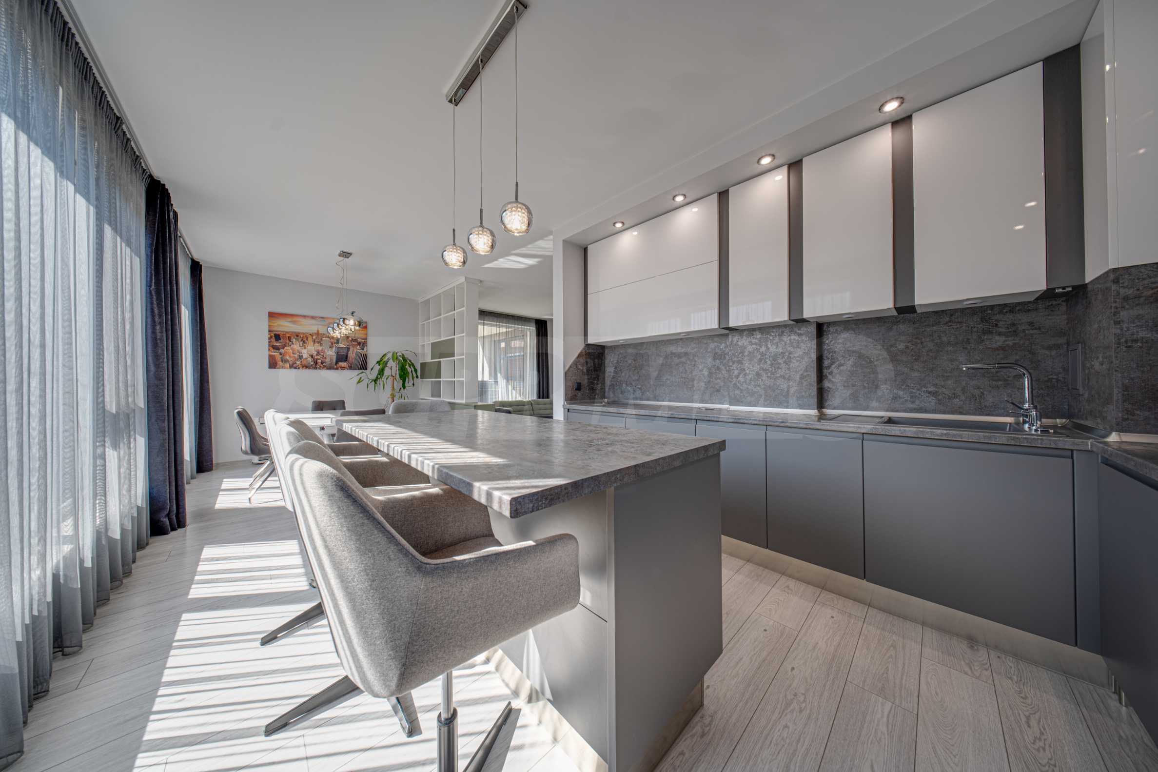 We present a super spacious and excellently furnished four-bedroom apartment with panoramic views of Vitosha Mountain, located in one of the most preferred southern areas of Sofia - the "Manastirski Livadi - West" neighborhood.