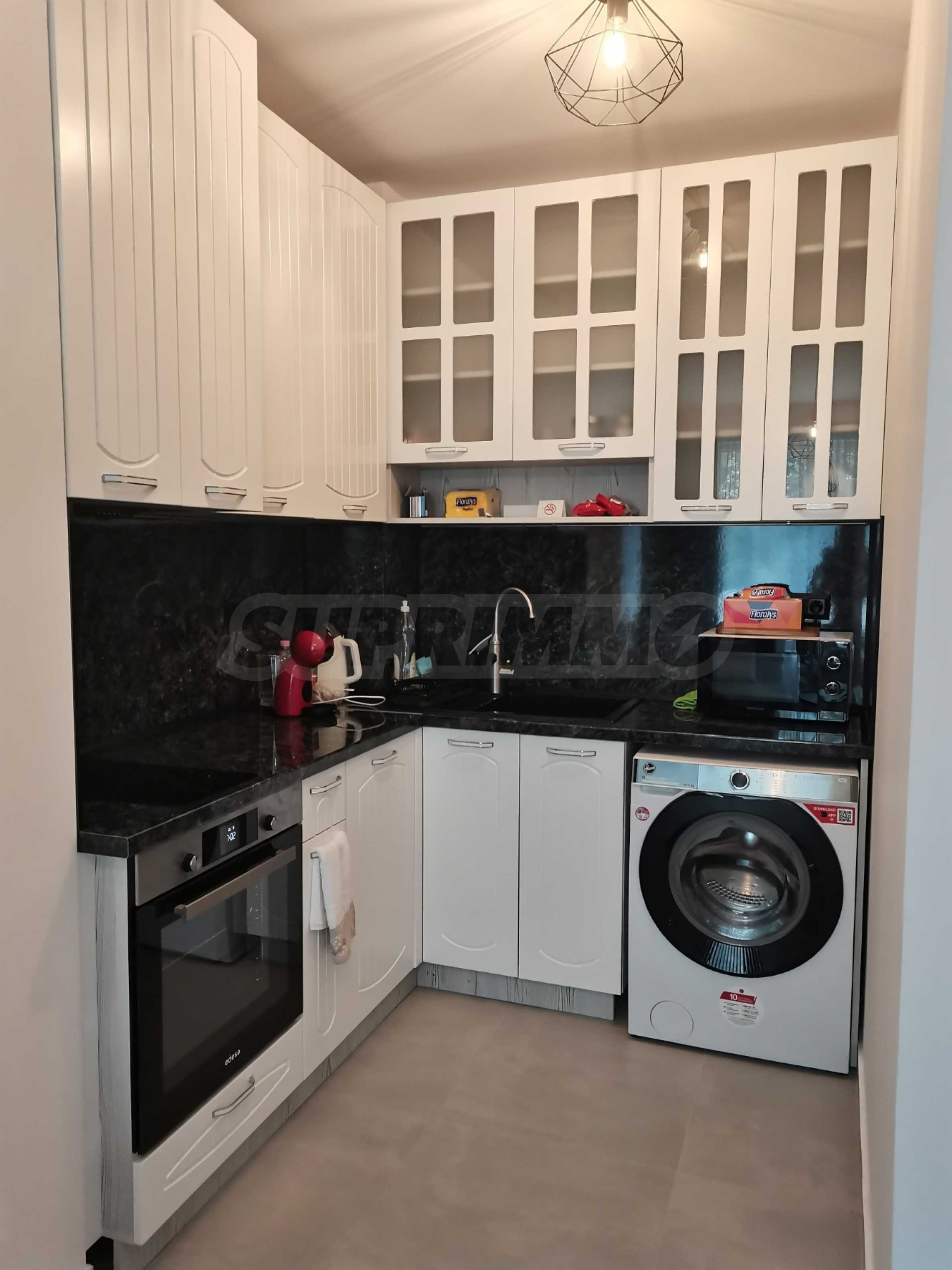 We present a stylish one-bedroom apartment in a new gated complex, in the heart of the resort of St. St. Constantine and Elena. With an excellent location close to shops, restaurants, bus stops and minutes from the beach. The area is extremely preferred both for year-round living and for a vacation property with high profitability.