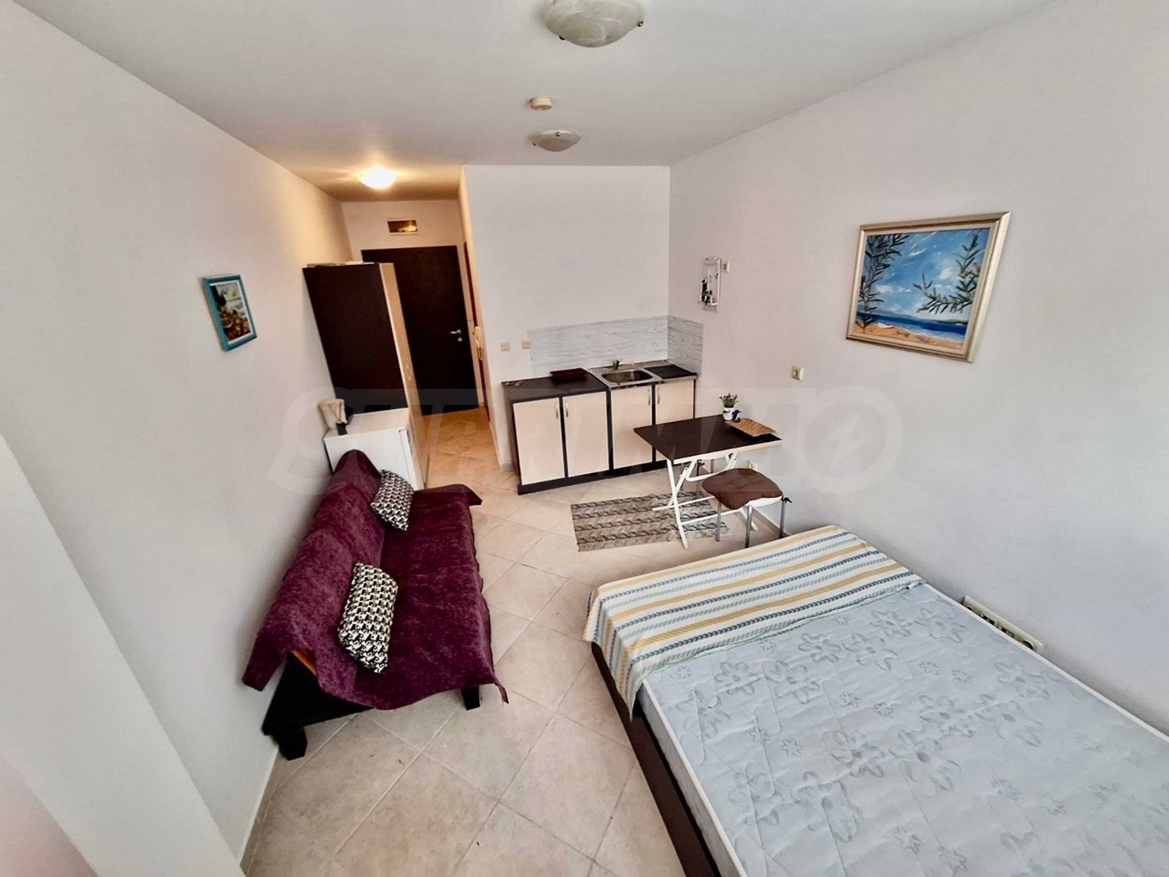 We present a furnished studio for sale, part of the popular mini-resort complex with swimming pools and amenities. The complex is located among the greenery of an ecologically clean area, next to the hills of Stara Planina, near Sunny Beach, in the village of Kosharitsa.