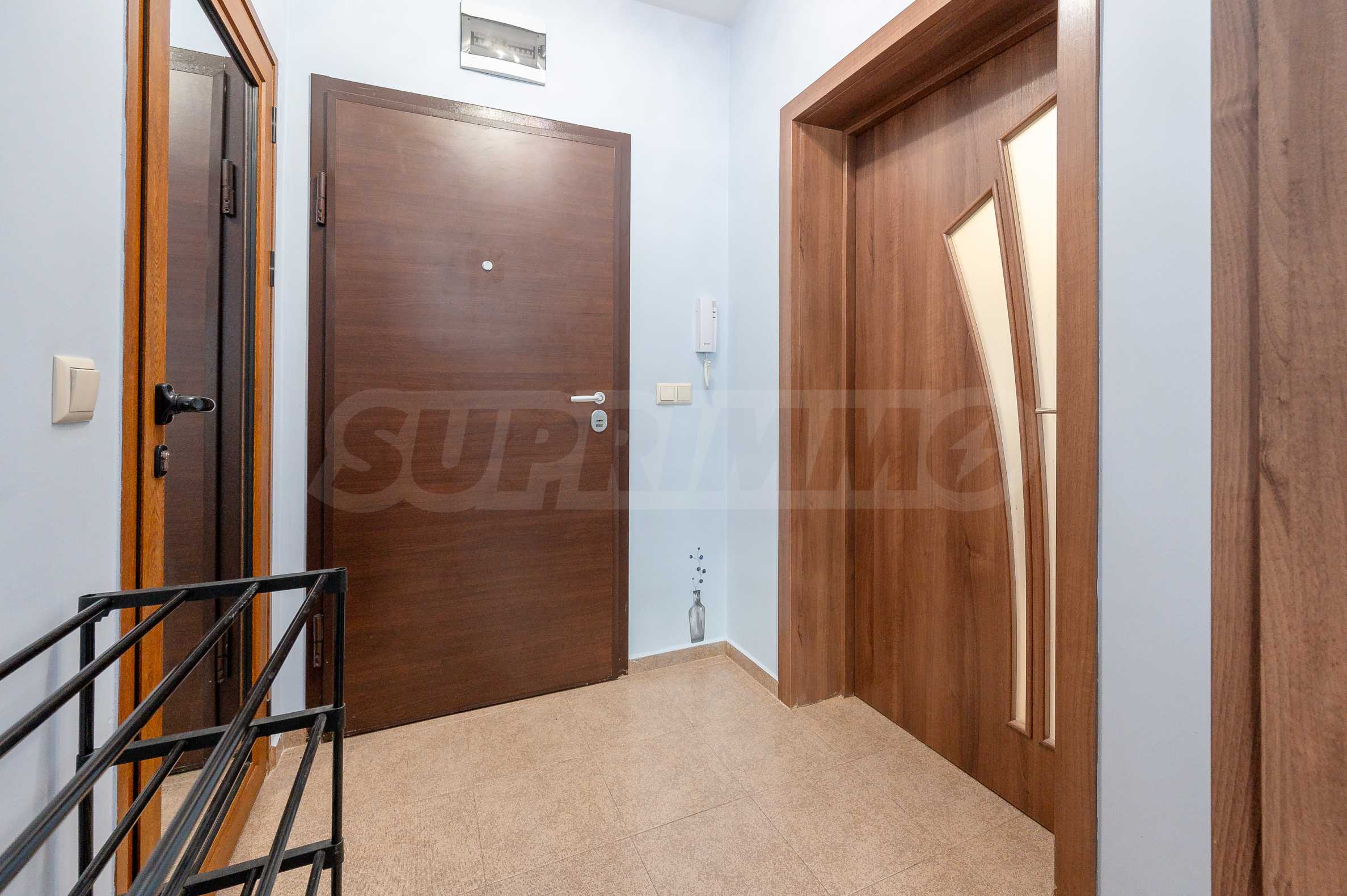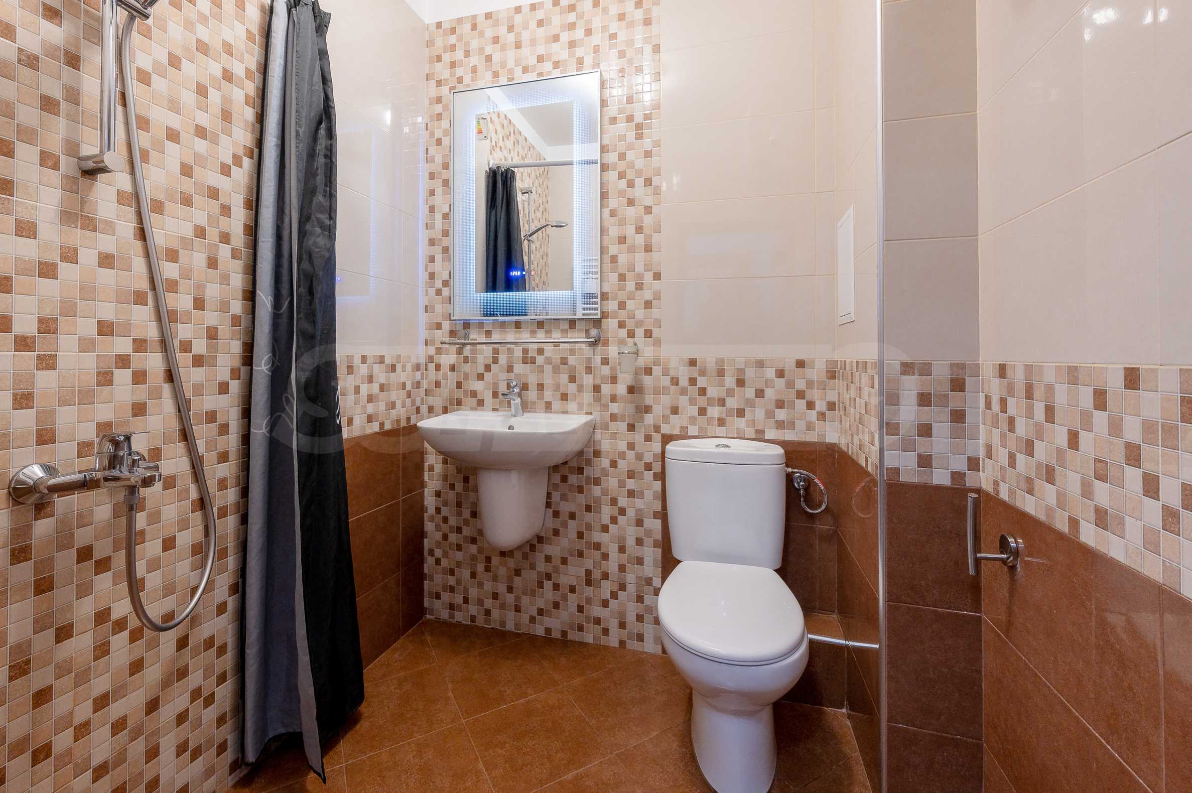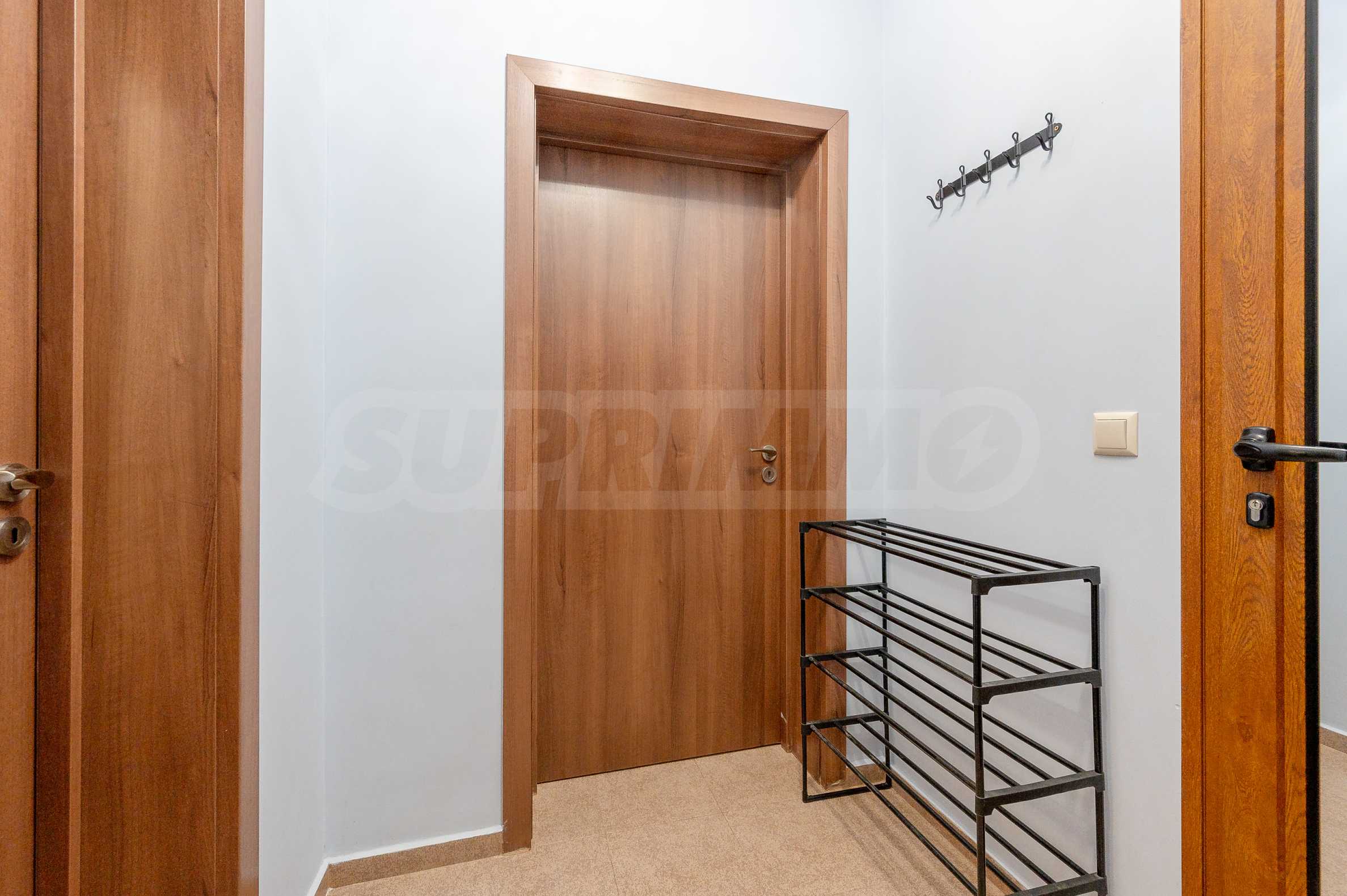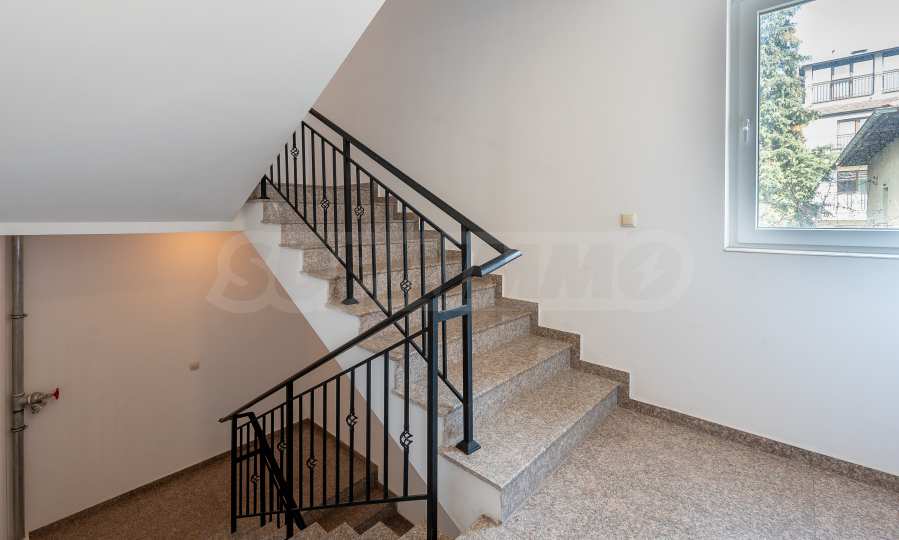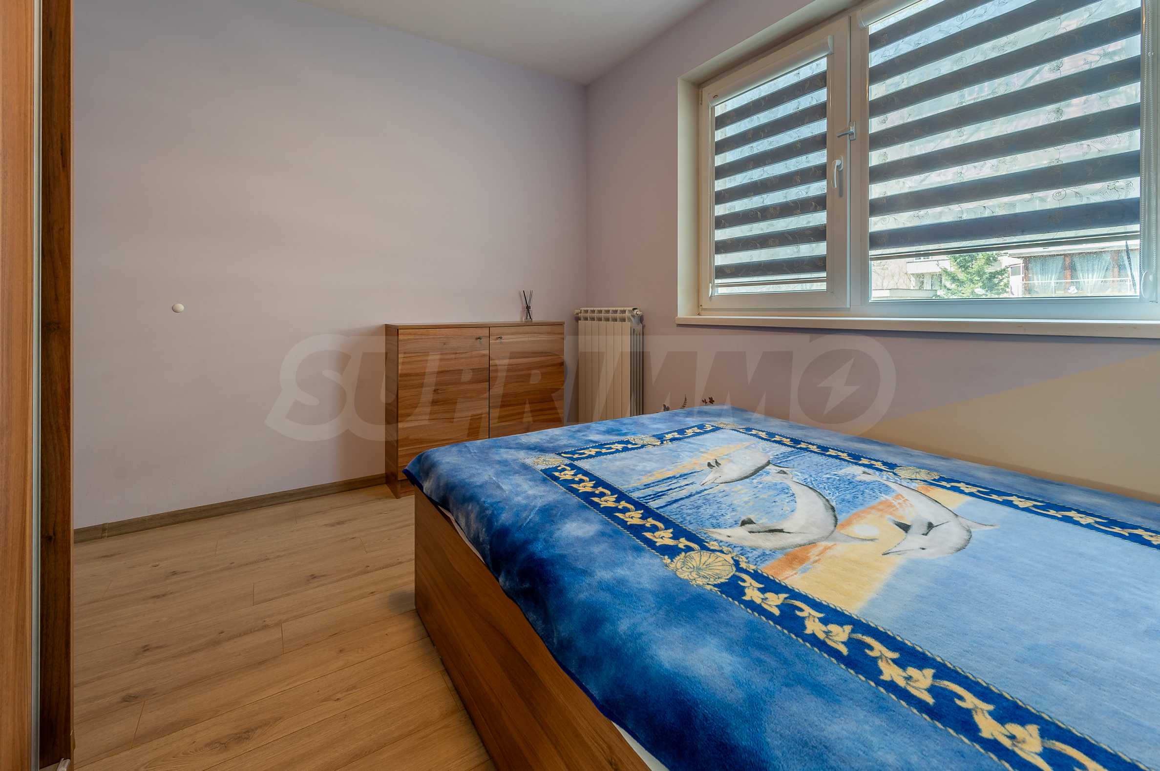 The apartment is fully furnished and equipped, with a functional layout: entrance hall, living room with kitchenette, bedroom and bathroom with toilet. The heating is electric - through an inverter air conditioner in the bedroom and an electric stove in the living room, and hot water is provided by a boiler.