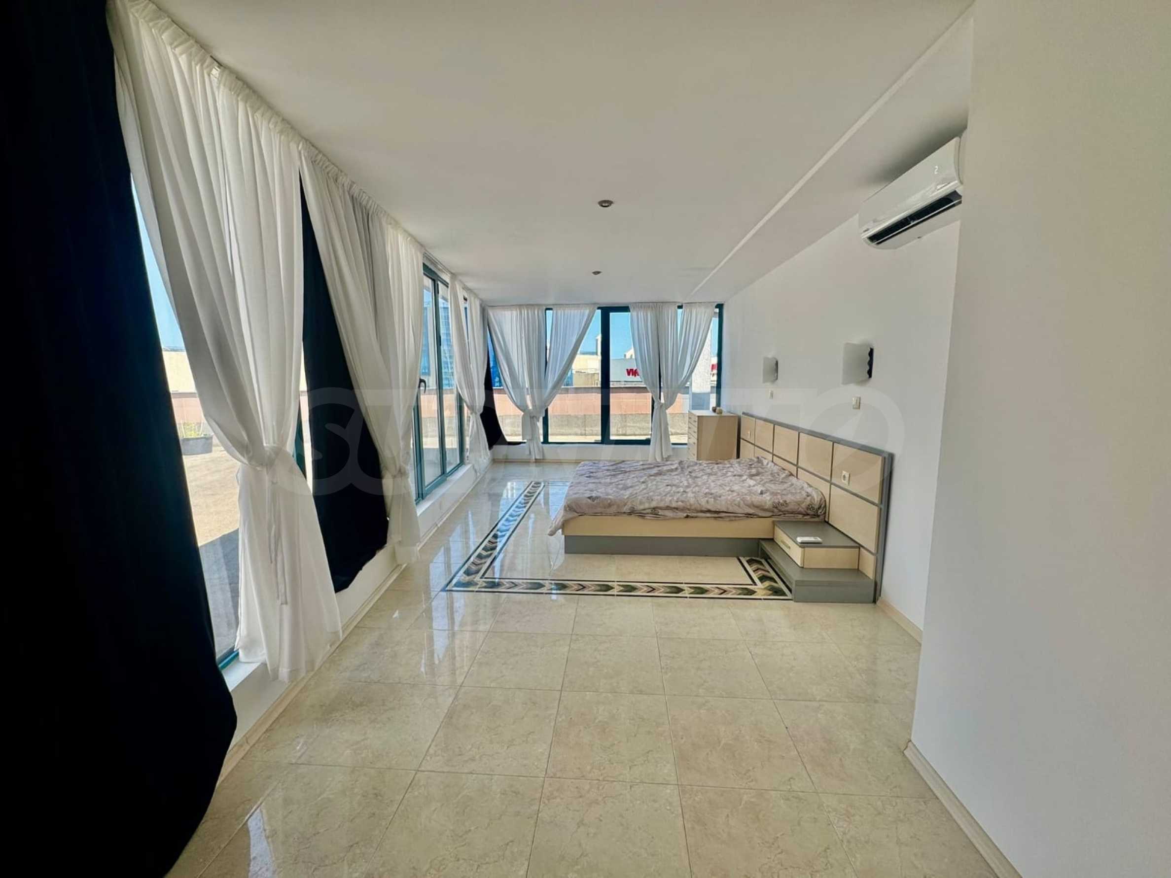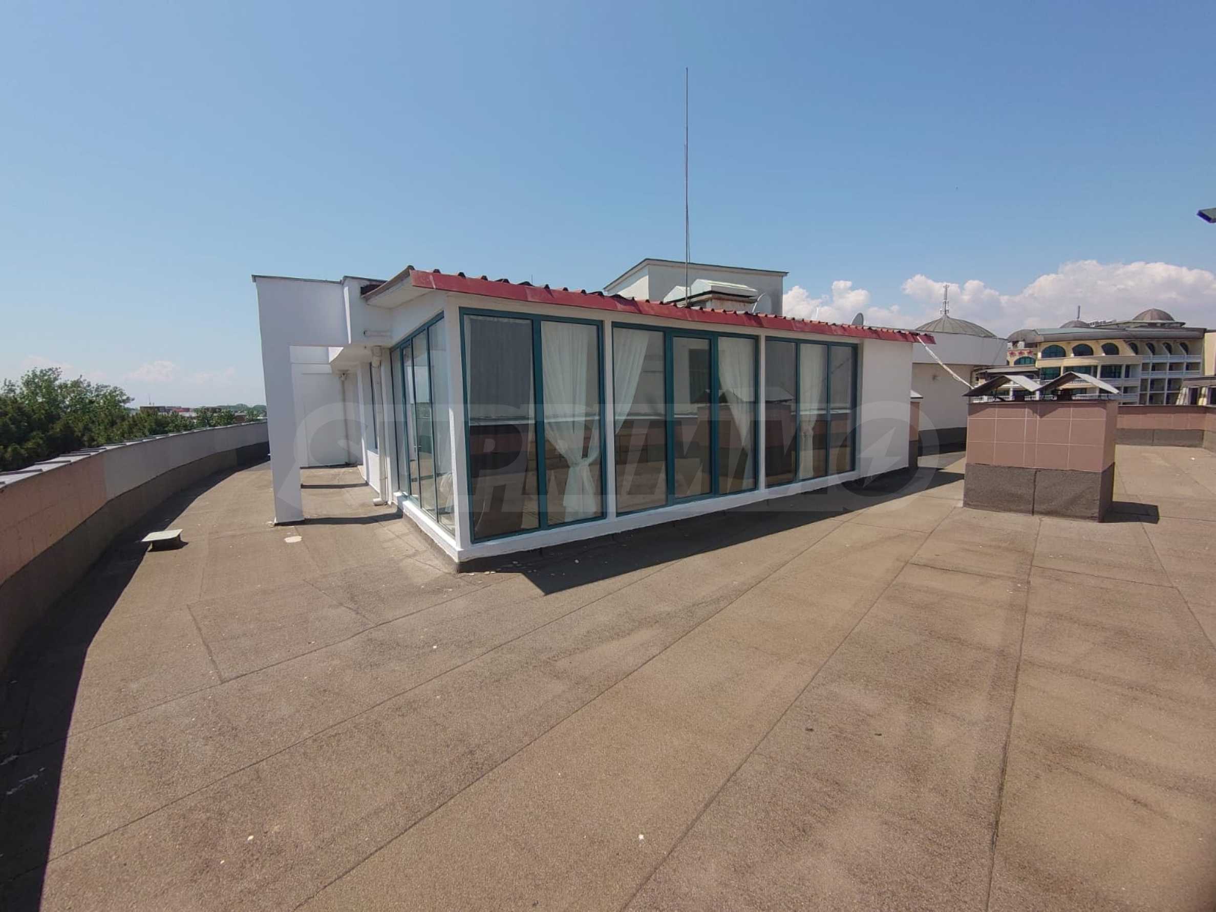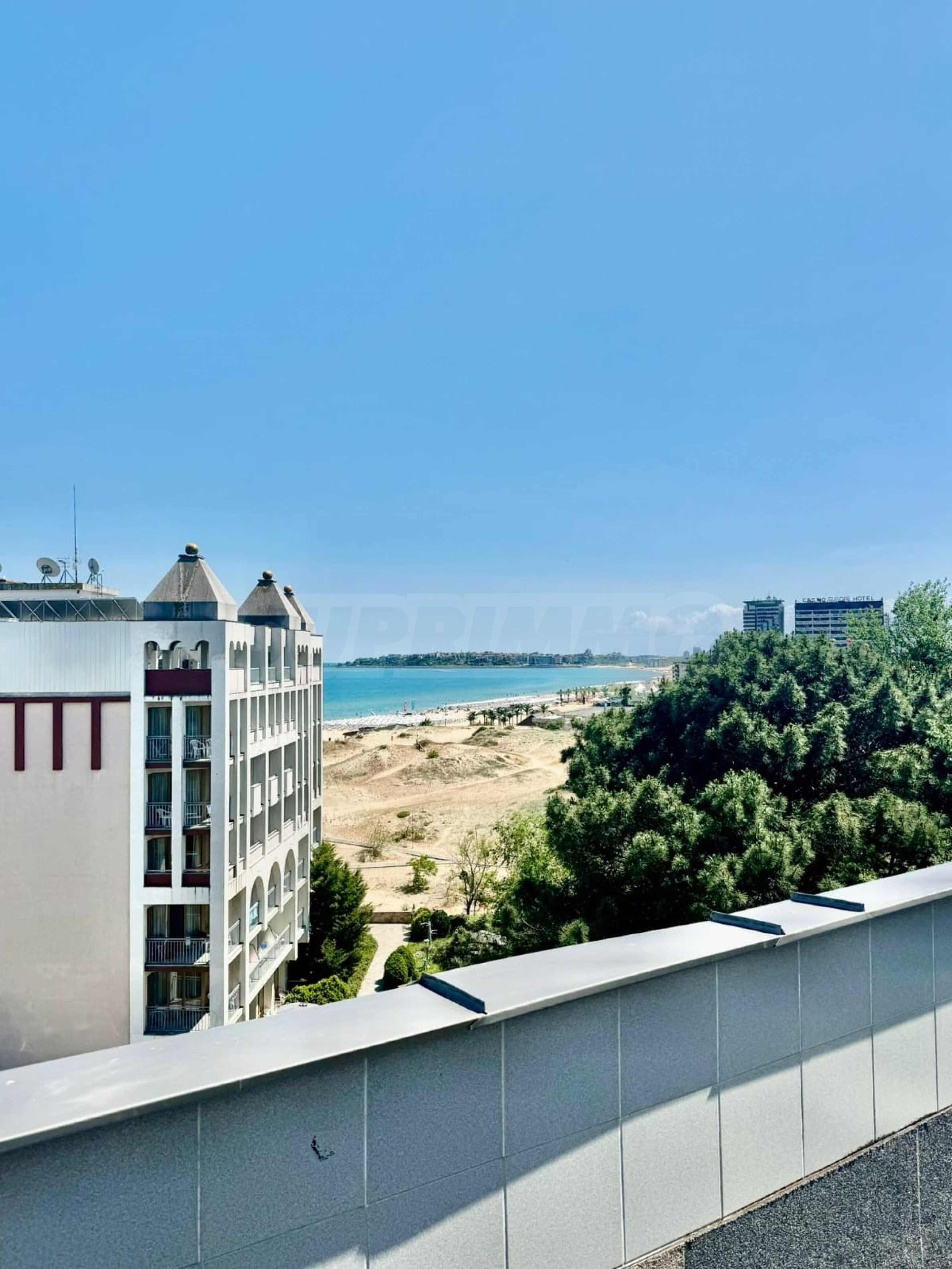 We present for sale a magnificent panoramic penthouse in a popular hotel in the center of Sunny Beach. A communicative area offering all amenities, shops, restaurants, bank branches, pharmacies, cafeterias, bars and entertainment areas.