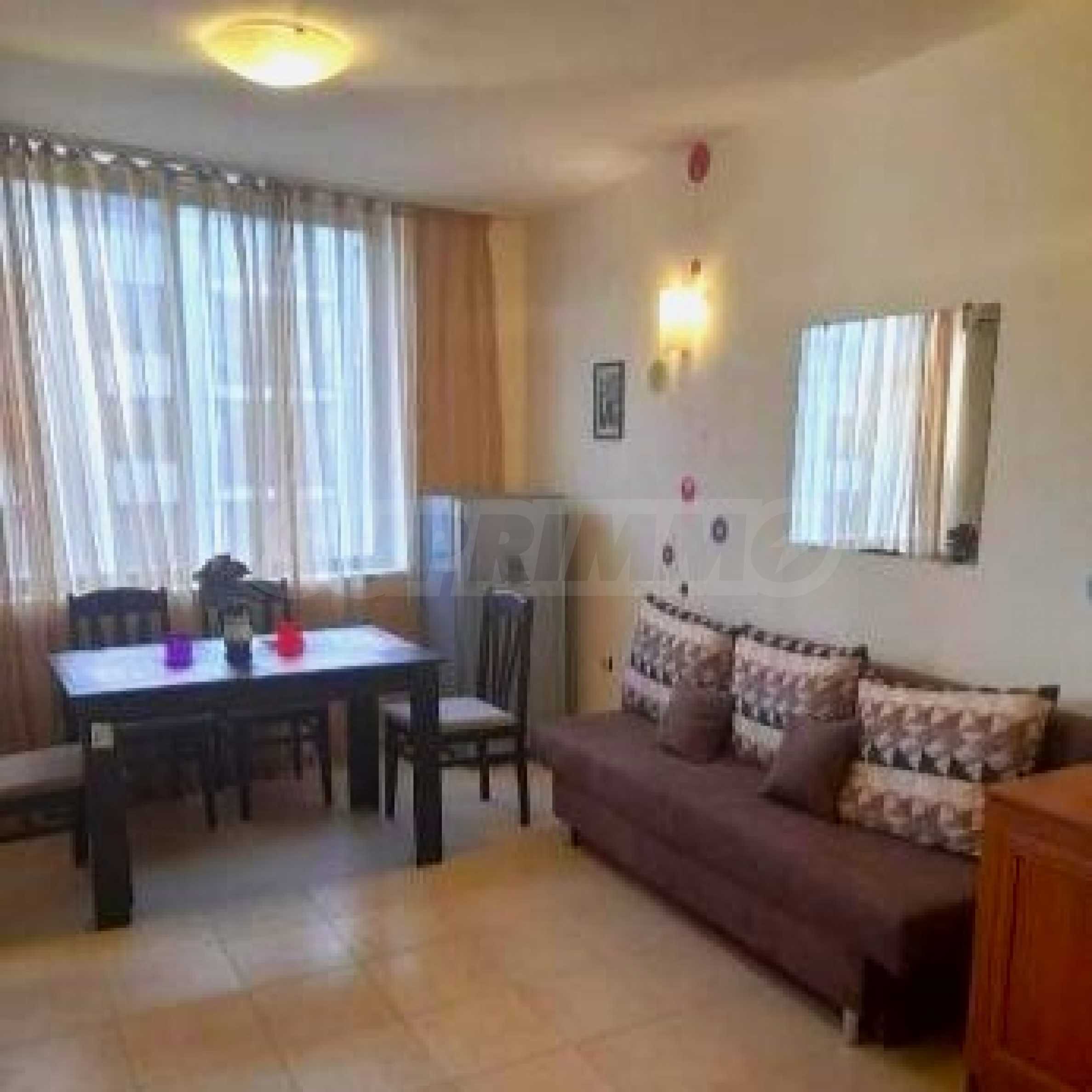 We present a furnished two-bedroom apartment for sale in an excellent seaside complex with a swimming pool and amenities, just 300 m from the beach in Sunny Beach.