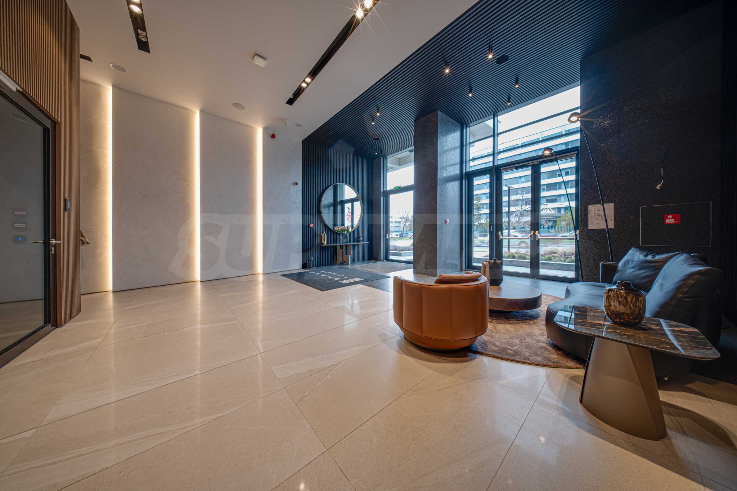 From the first step into the spacious lobby of Smart Tower, you will feel like you are in a five-star hotel. The modern interior design impresses with clean lines, elegant proportions and carefully selected details that emphasize the feeling of prestige and discreet luxury. Natural materials, ceilings up to 6 meters high and an abundance of natural light contribute to an atmosphere of spaciousness and refined coziness. The common areas are furnished with luxurious Italian furniture from Minotti and Cattelan, which complement the overall concept of a high standard of living.
