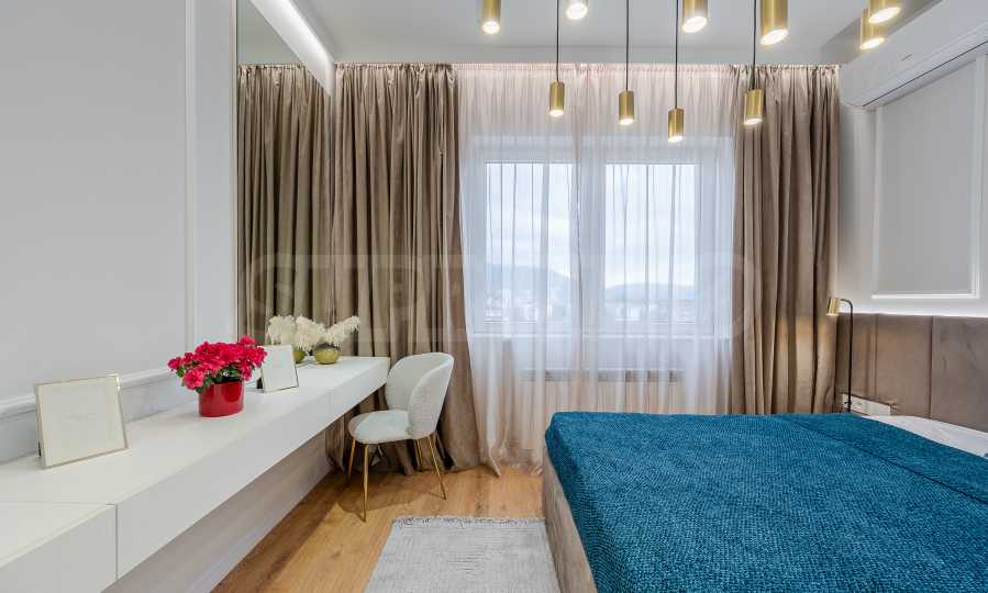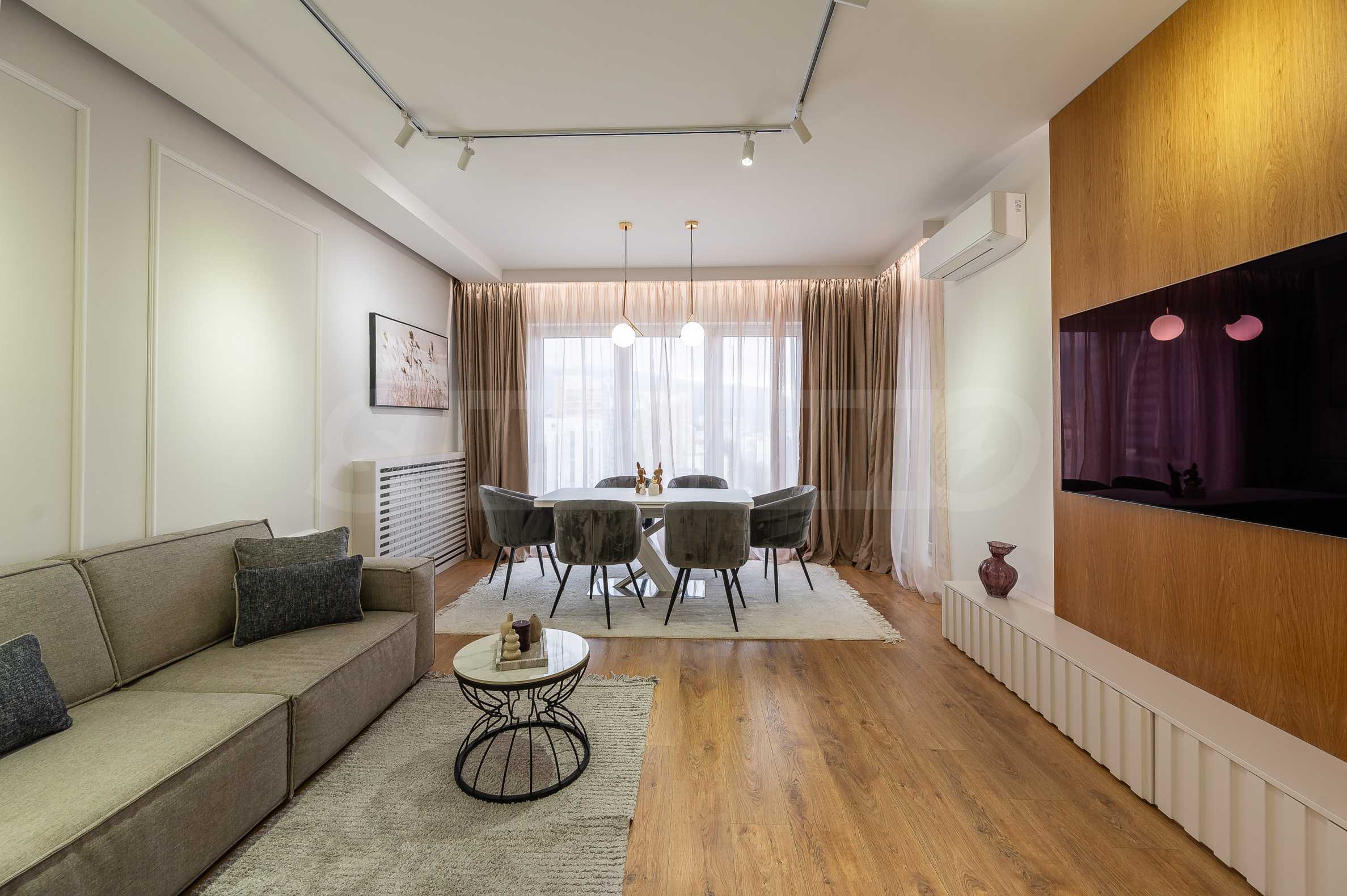 The warm earthy colors, combined with soft and natural fabrics, contribute to an extremely pleasant and harmonious environment. The property offers a wonderful view of Vitosha Mountain. The apartment has everything you need to meet your requirements and needs.