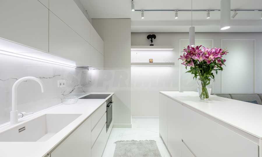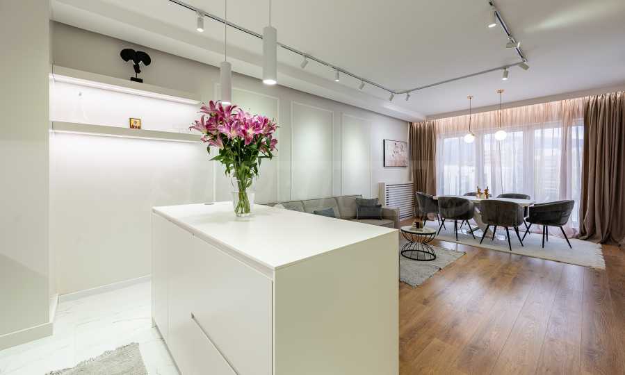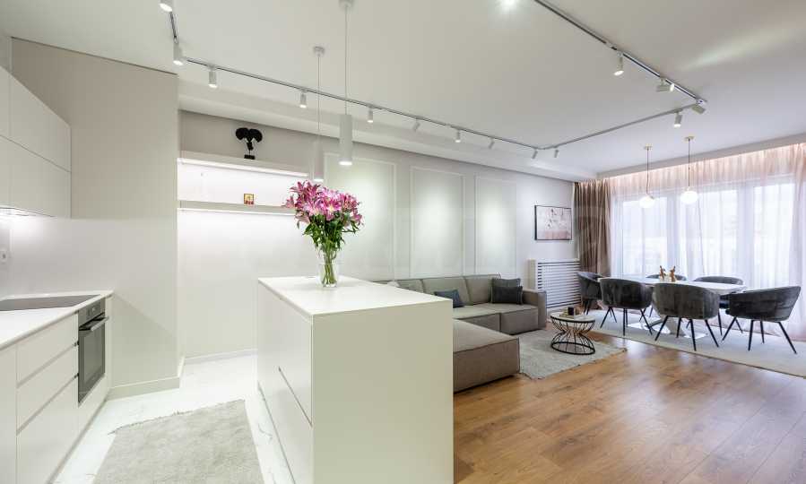 The apartment is fully furnished with high-end Miele appliances and custom-designed furniture. It offers modern interior solutions with attention to every detail, creating a cozy atmosphere and a feeling of high standard of living. Light, warmth and comfort will welcome you in all rooms.
