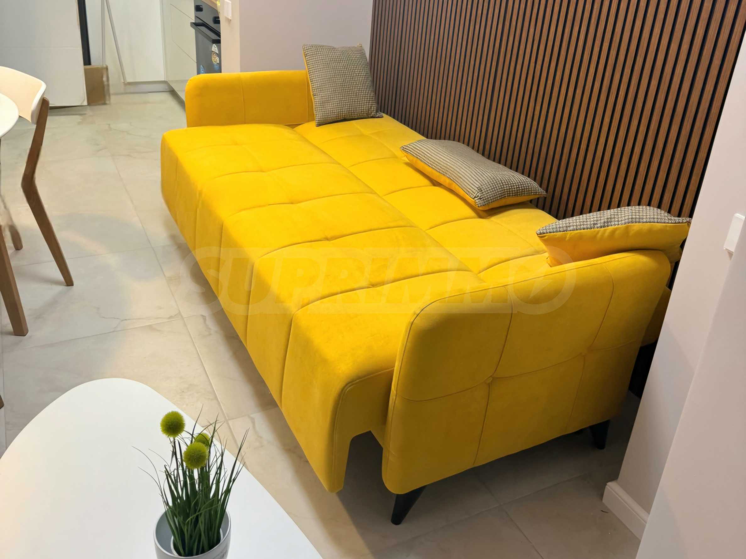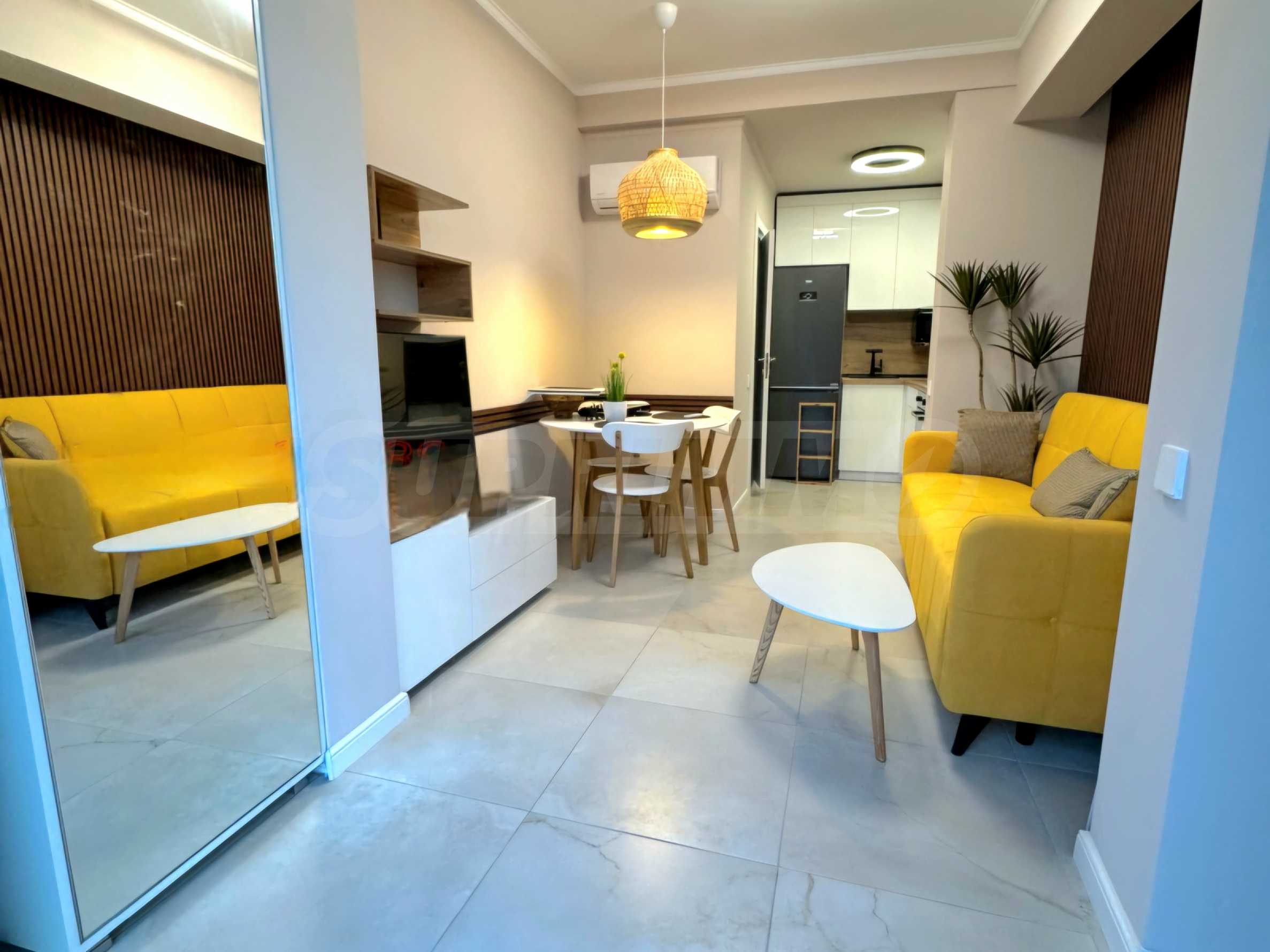 The building offers 24-hour video surveillance and security, and the rental price includes a maintenance fee. Tenants also have access to a modern SPA center, a fitness center, as well as unlimited use of a heated outdoor pool and an electric bicycle. On the ground floor you will find shops and a restaurant, and the beach is just 100 meters away.