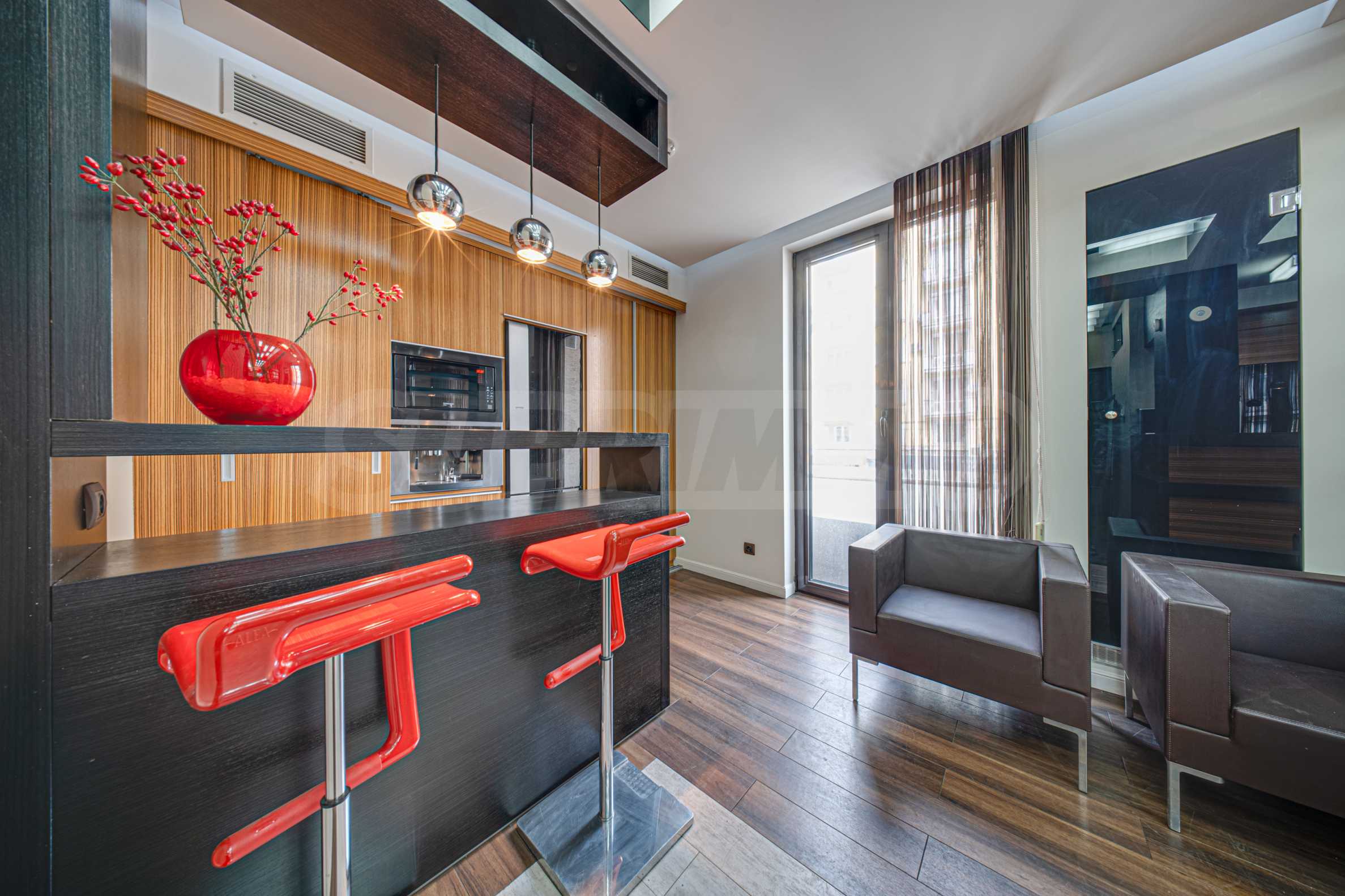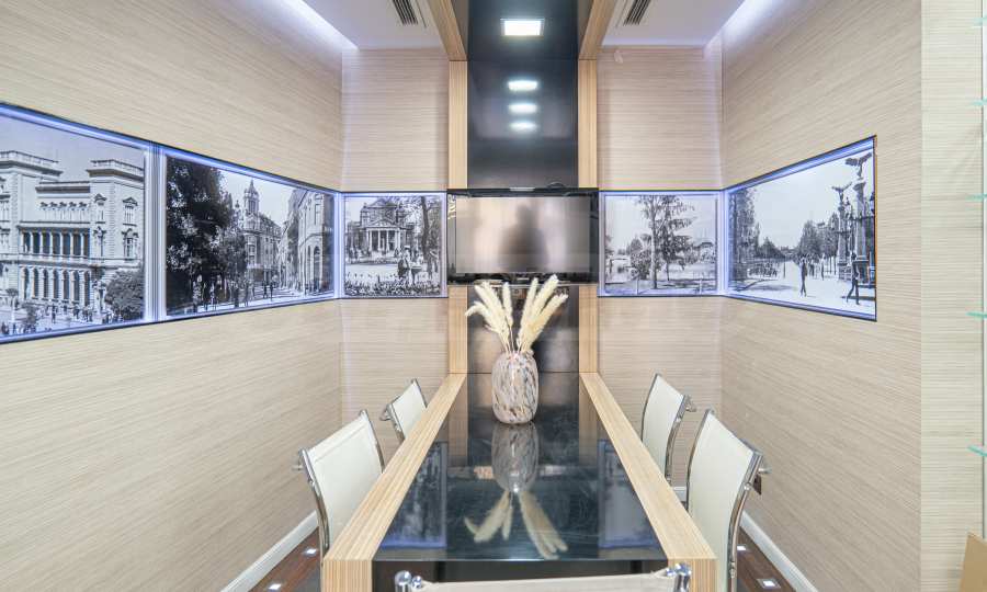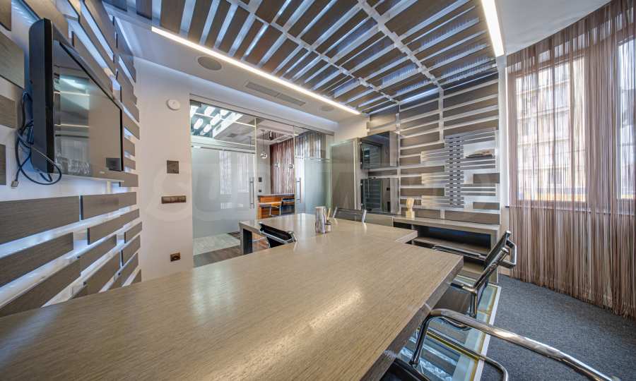 We present a luxuriously furnished office opposite the garden of the National Palace of Culture. The location of the property is in the heart of Sofia, next to the pedestrian zone of Vitosha Blvd. and the National Palace of Culture metro station, which is only 100 m away. The area offers schools, kindergartens, banks, pharmacies, restaurants, shops and many other amenities of the central part of the capital.