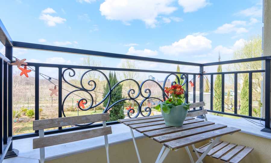 The apartment facilities a functional layout, where every space is optimally used. The living area is bright and welcoming, creating a natural center of the home, while the bedrooms offer the necessary privacy and comfort. The terrace is oriented towards the inner courtyard, which provides peace and quiet, away from the city noise.