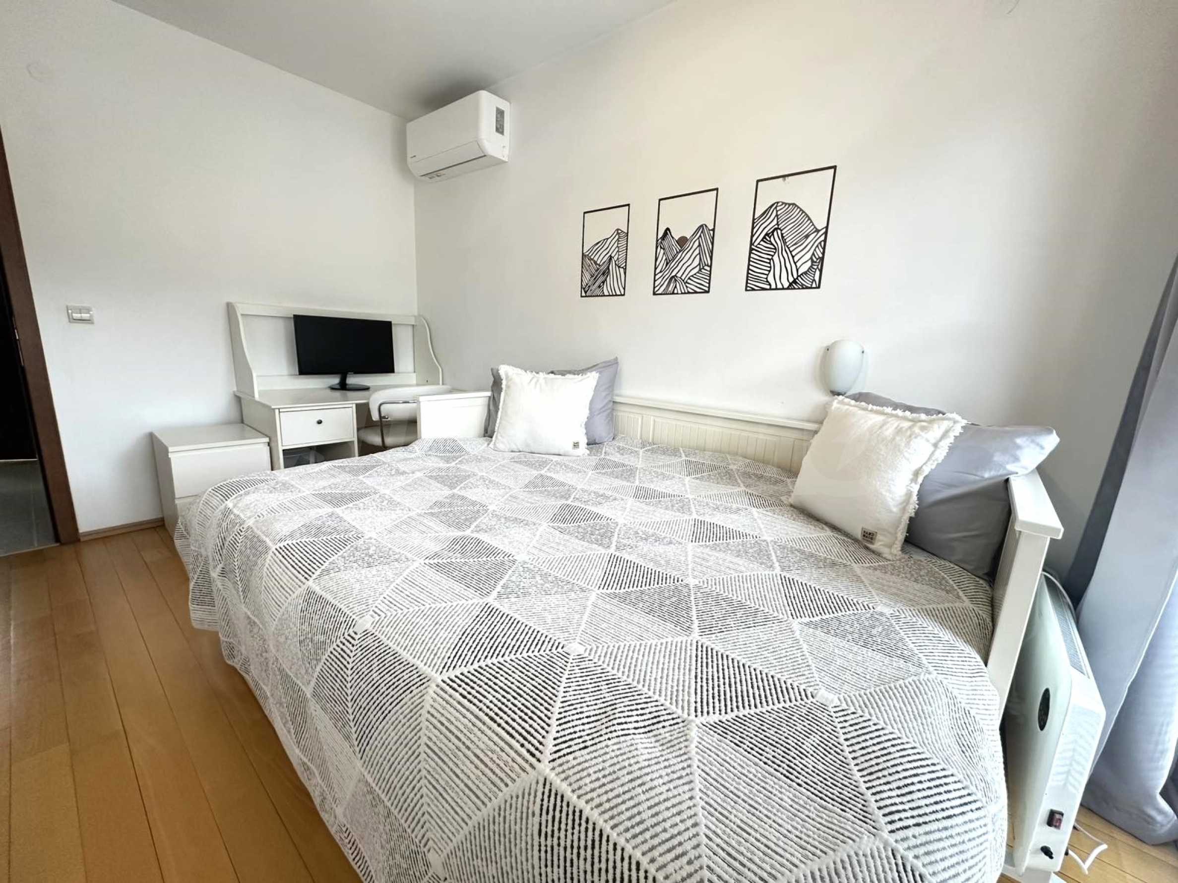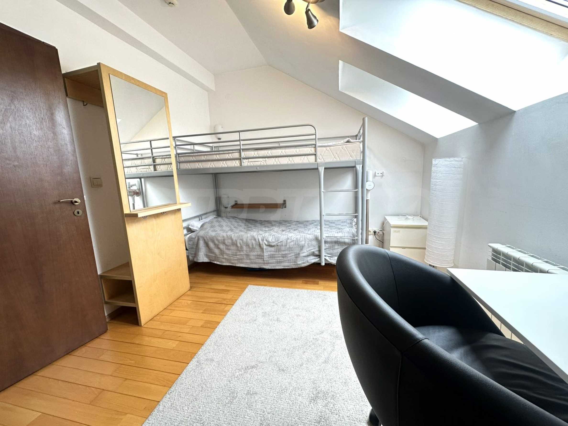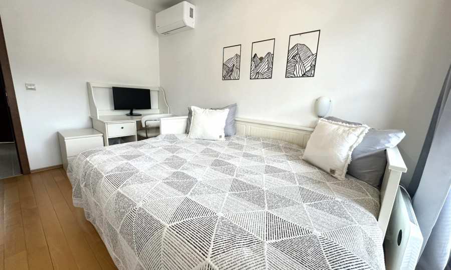 Two separate bedrooms, the main one with a wardrobe and direct access to a balcony, the second one with a practical bunk bed, suitable for children or a guest.