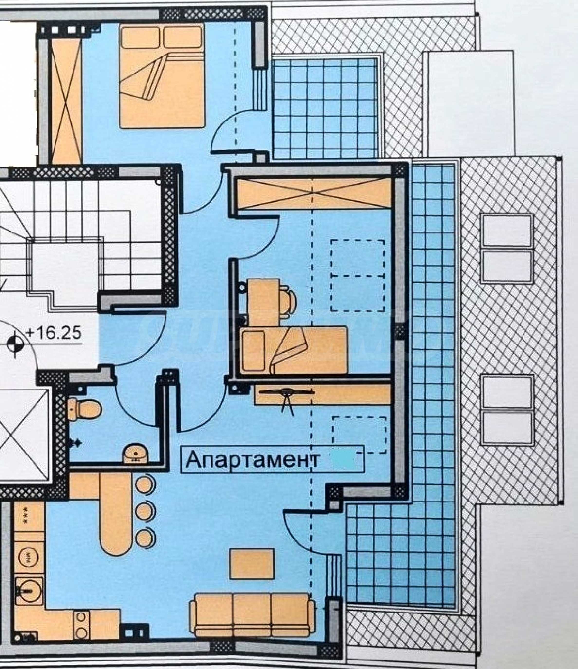 The apartment is being sold in a state of completion according to Bulgarian Construction Standards, with plaster and screed.