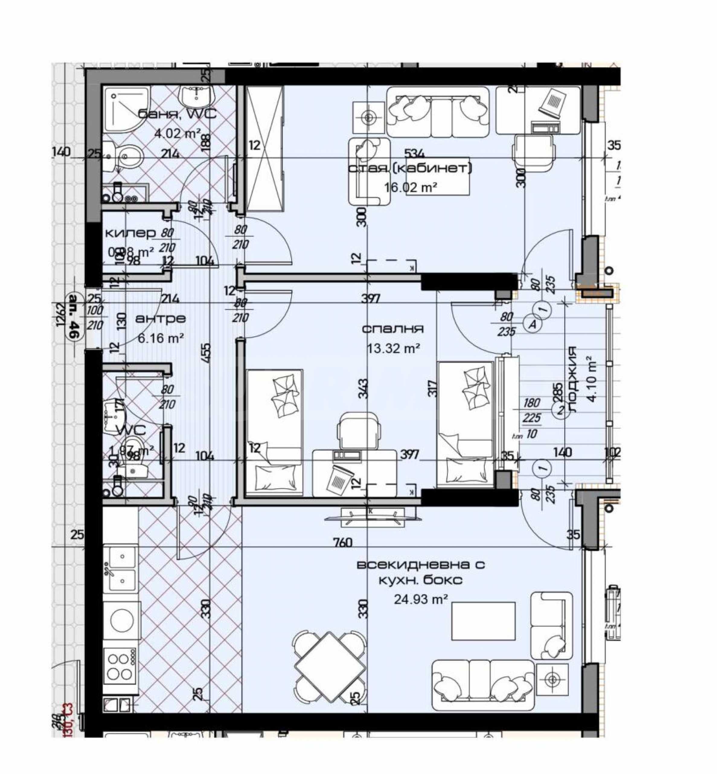 We present a comfortable two-bedroom apartment in a new residential complex with modern architecture and a large-scale concept, located in the "Mladost 1" district.