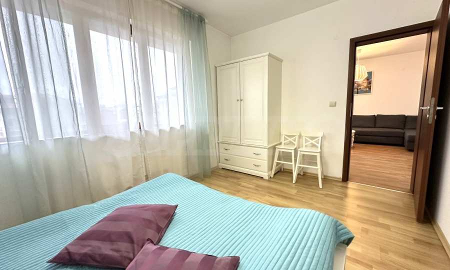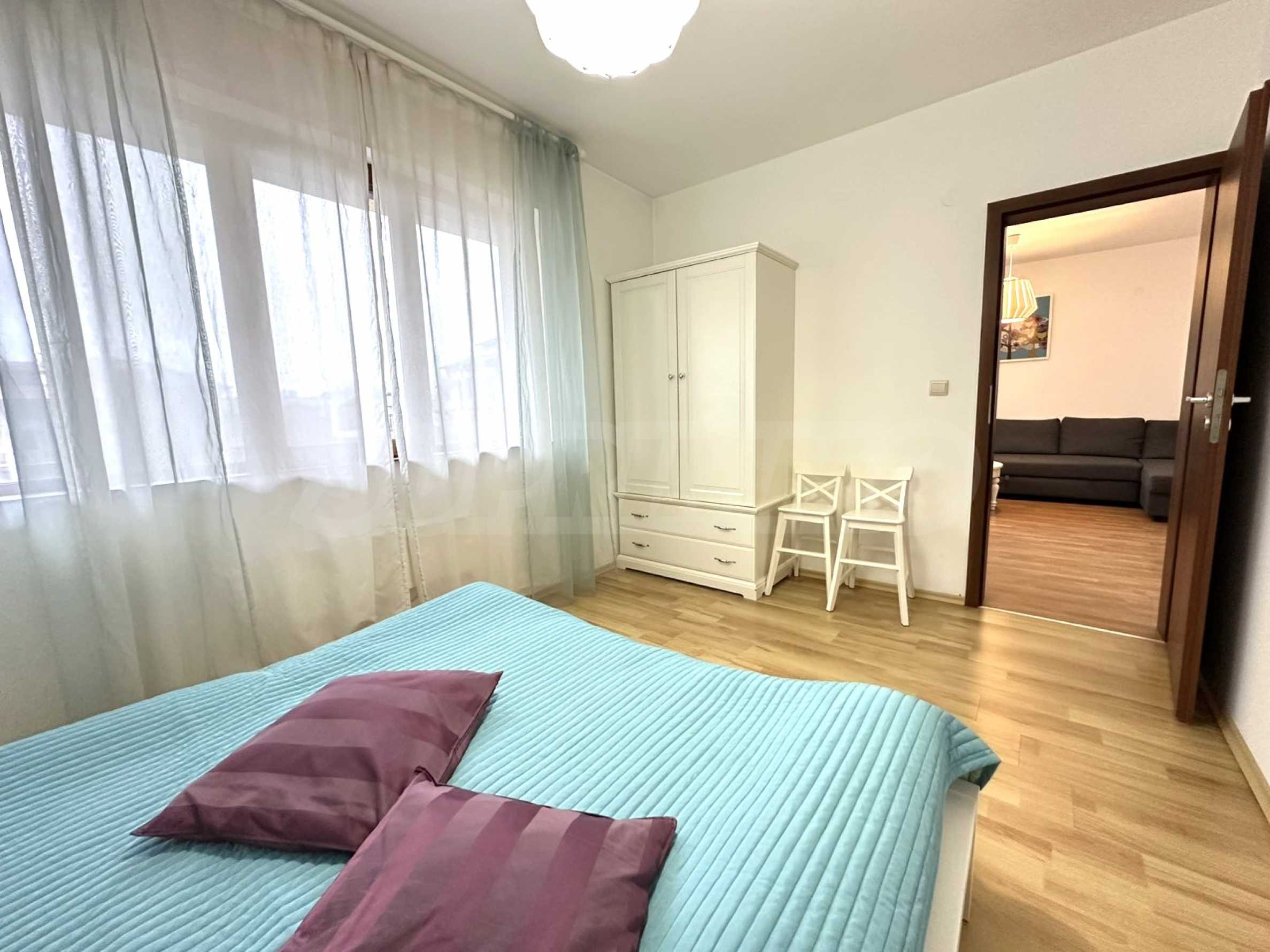 • First bedroom – accessible directly from the living room, also furnished in white, creating a sense of style and spaciousness;