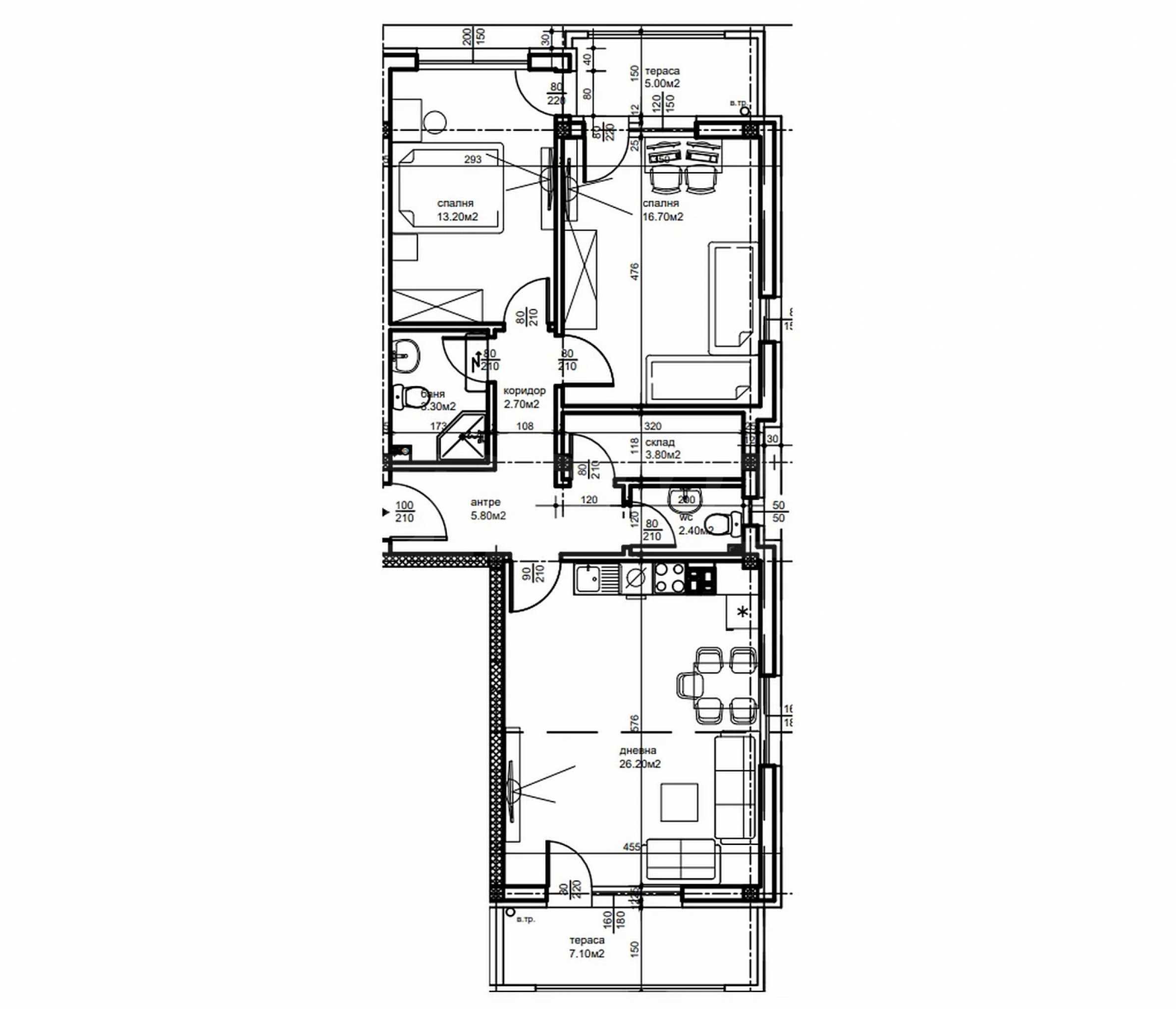 We present a two-bedroom apartment in a new phase - Section D of the complex, in the "Belomorski" district. Convenient location near a public transport bus stop.