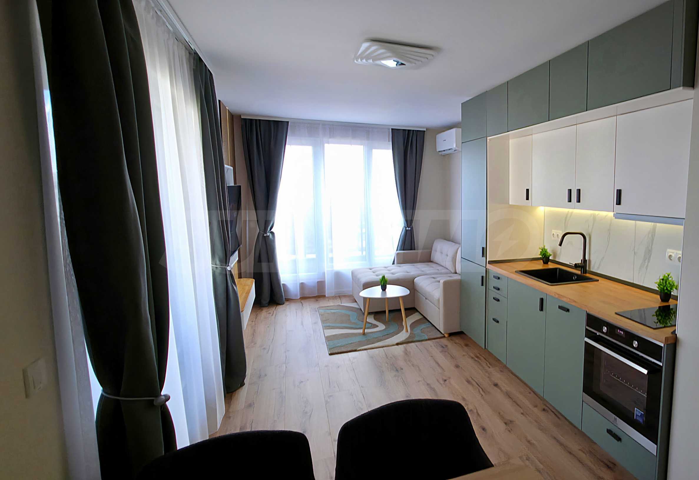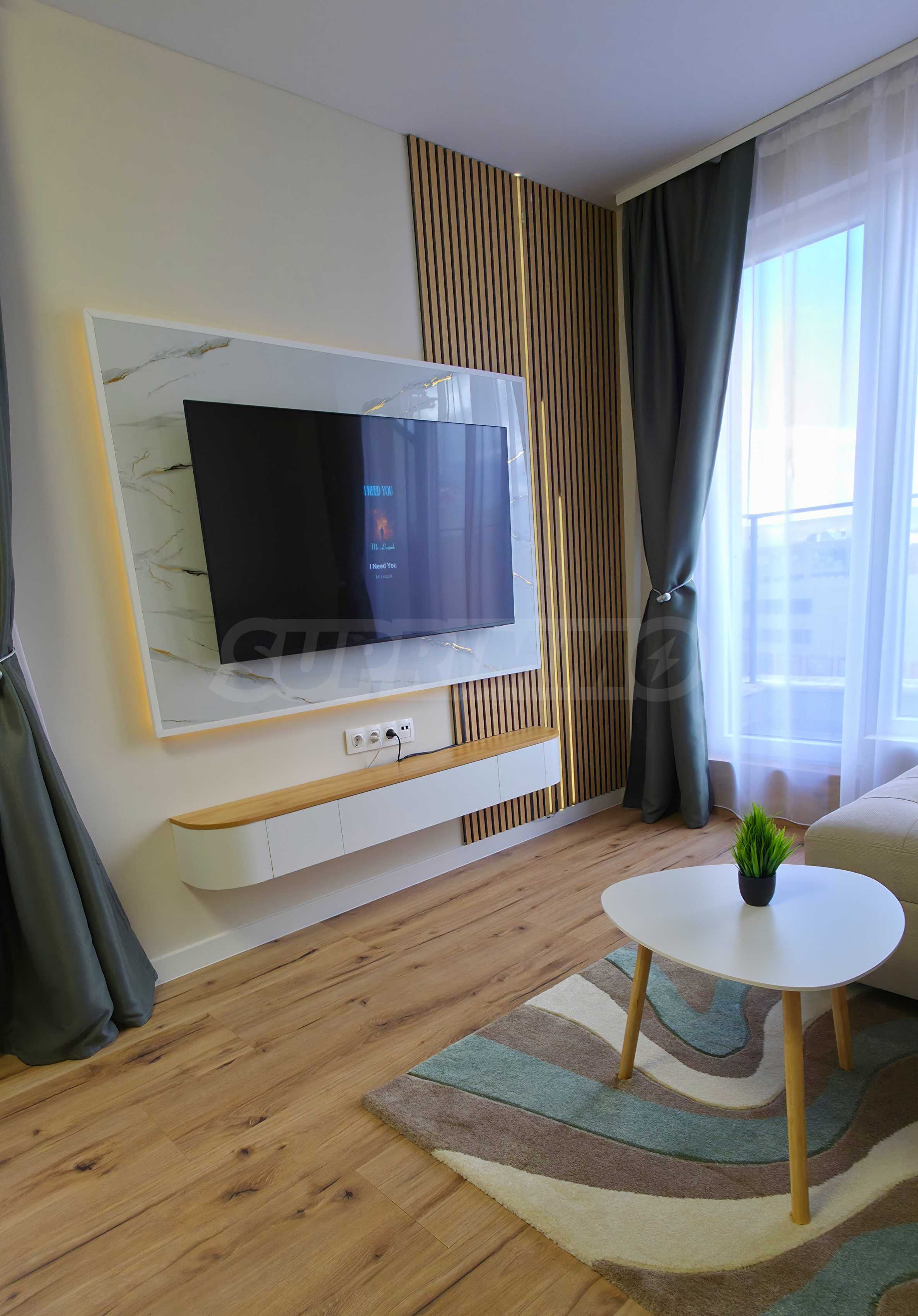 The apartment is located in an extremely communicative location on Tsaritsa Yoanna Blvd., at the exit of the Zapaden Park metro station opposite West Mall. The area is easily accessible and has flexible transport lines.