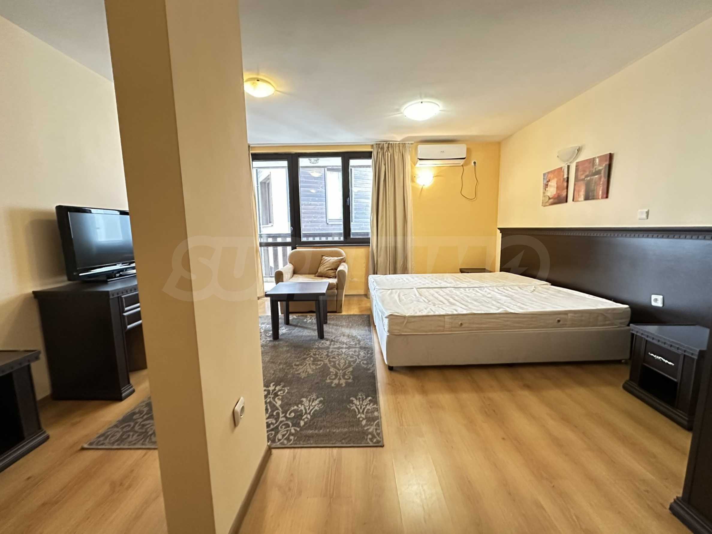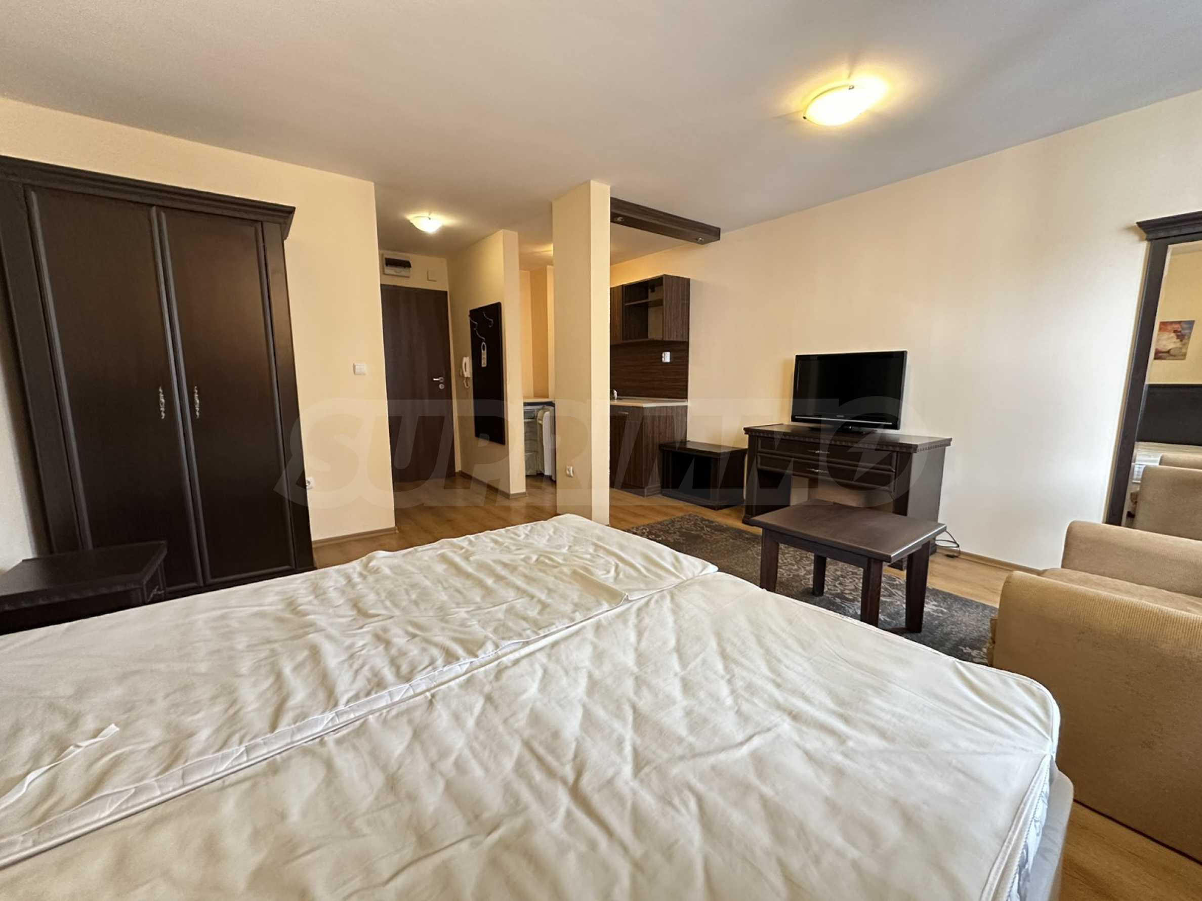 • Spacious main room, combining: equipped kitchen, large bedroom, wardrobe, cabinet with plasma TV;