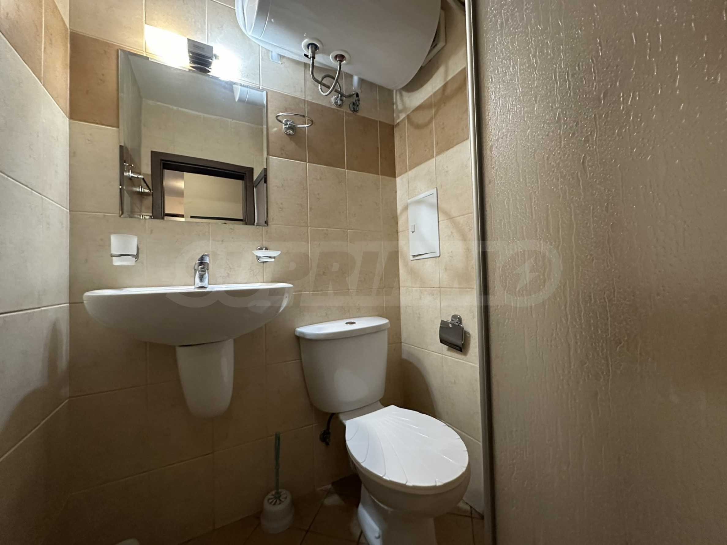 • Bathroom with shower and toilet.