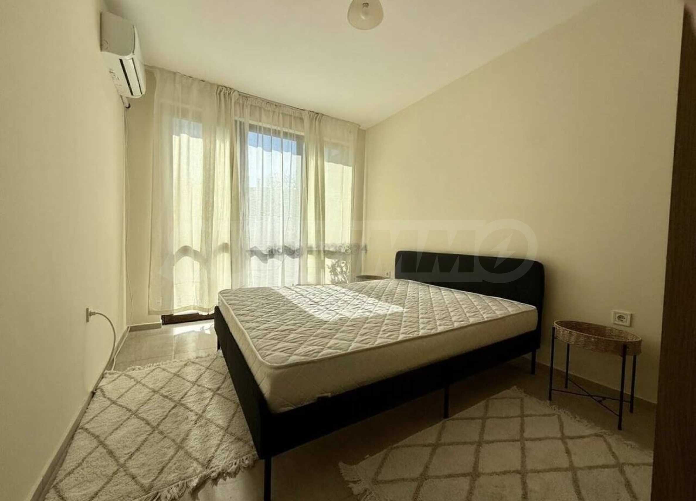 The apartment is offered fully furnished with new furniture, the kitchen is equipped with a built-in oven and ceramic hobs with extractor hood, refrigerator, washing machine, 55 inch TV. Heating is via two air conditioners. There is a possibility of placing outdoor garden furniture.