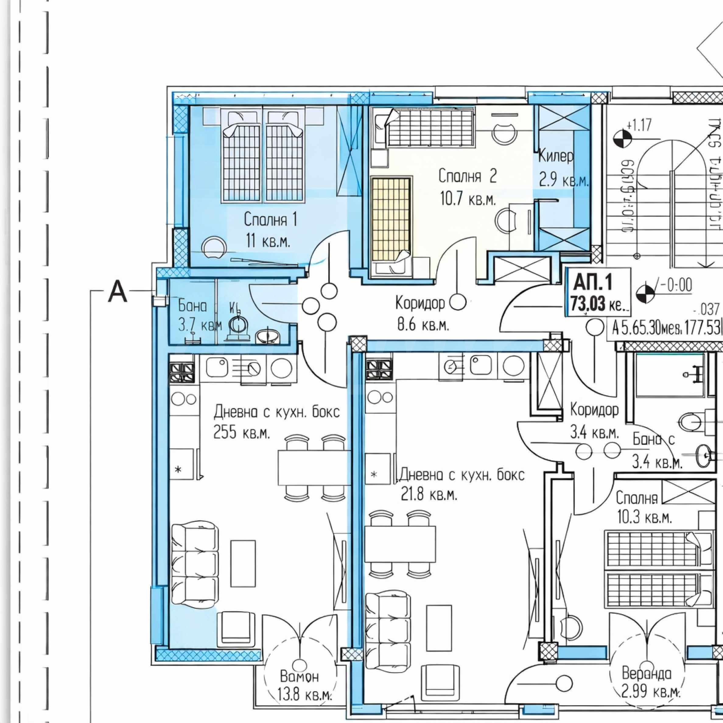 The apartment is being let in a state of completion according to Bulgarian Construction Standards, with plaster and screed. It is suitable for both personal use and for an investment with long-term value.