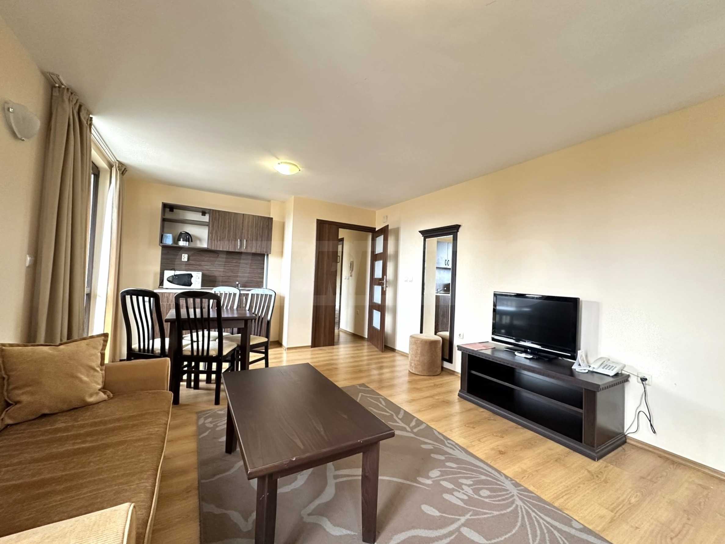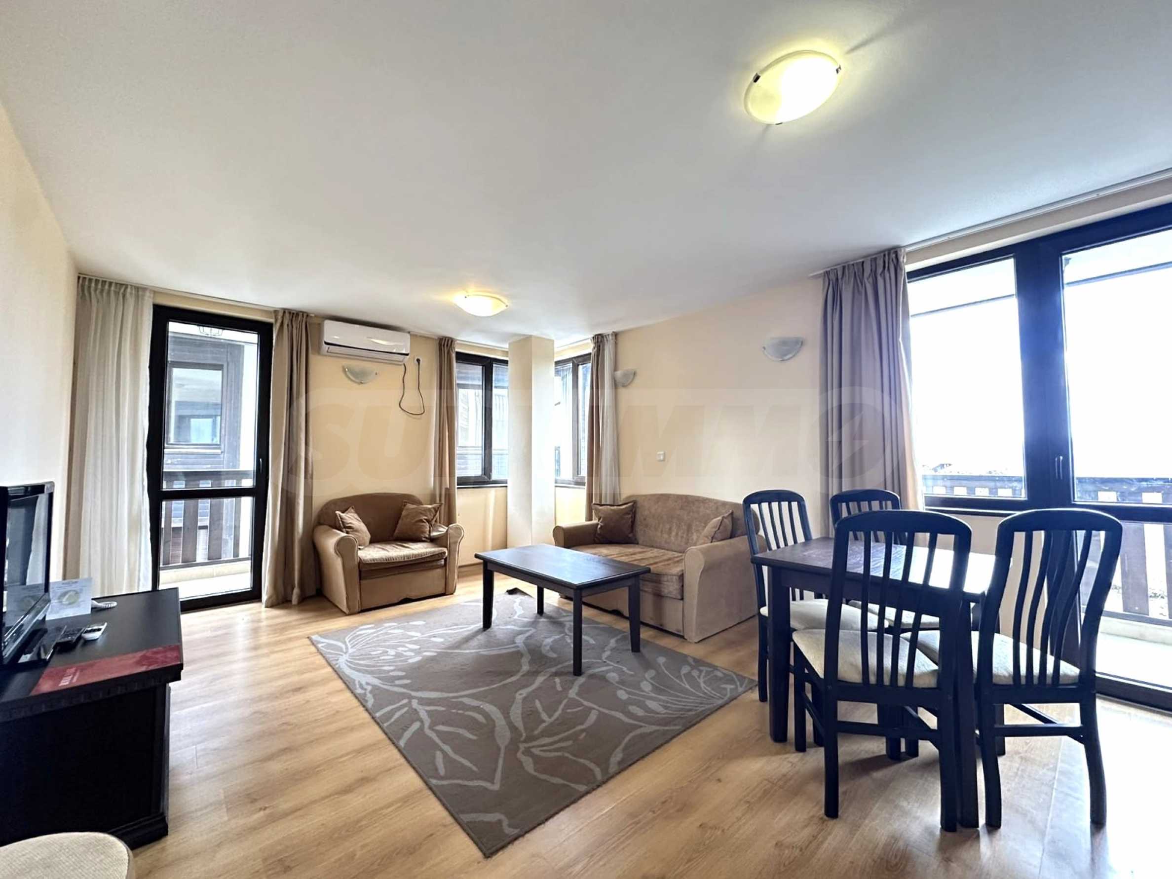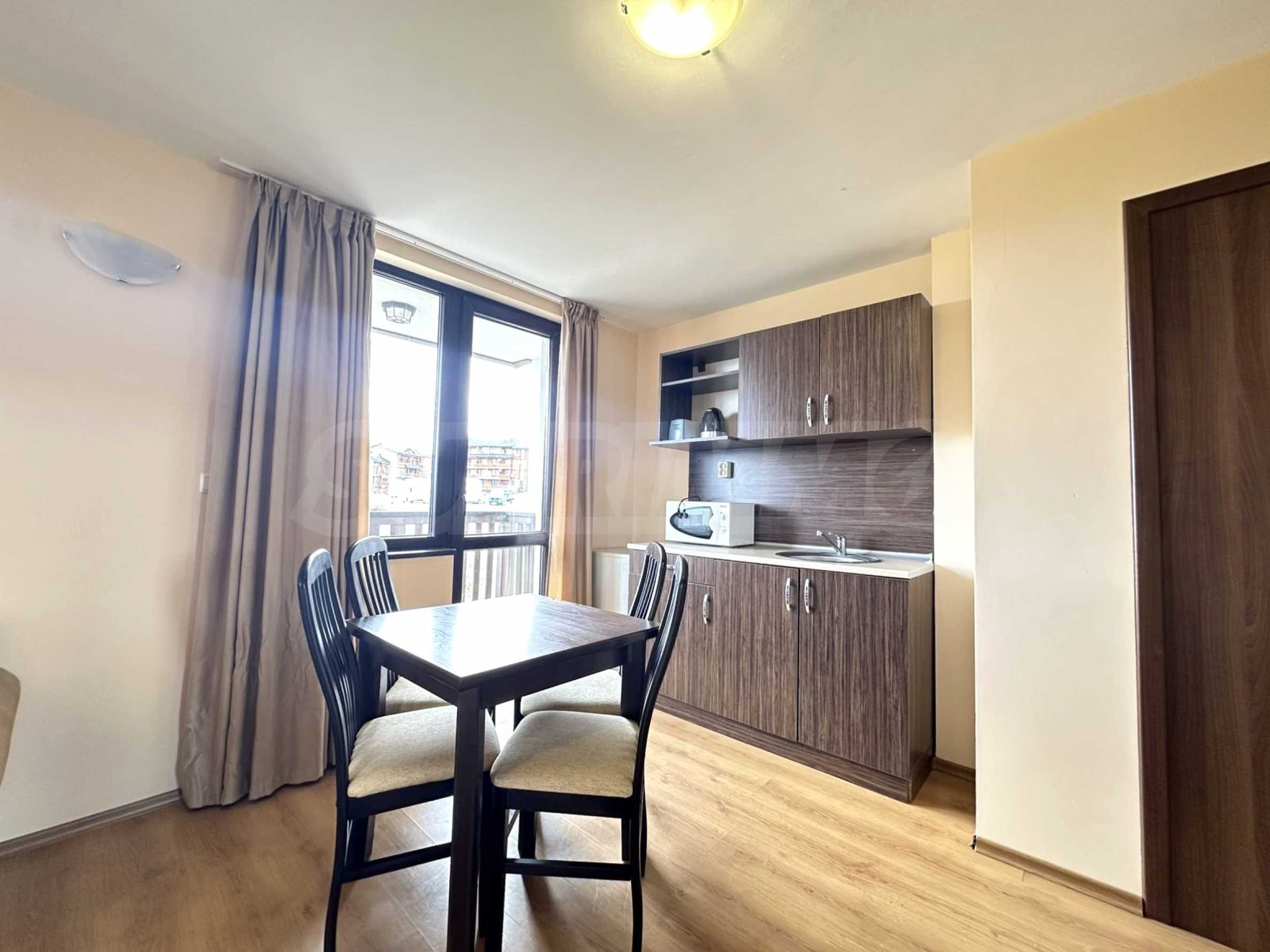 We present a bright and functional one-bedroom apartment in a gated complex with frontal views of the Pirin Mountains and the town of Bansko.