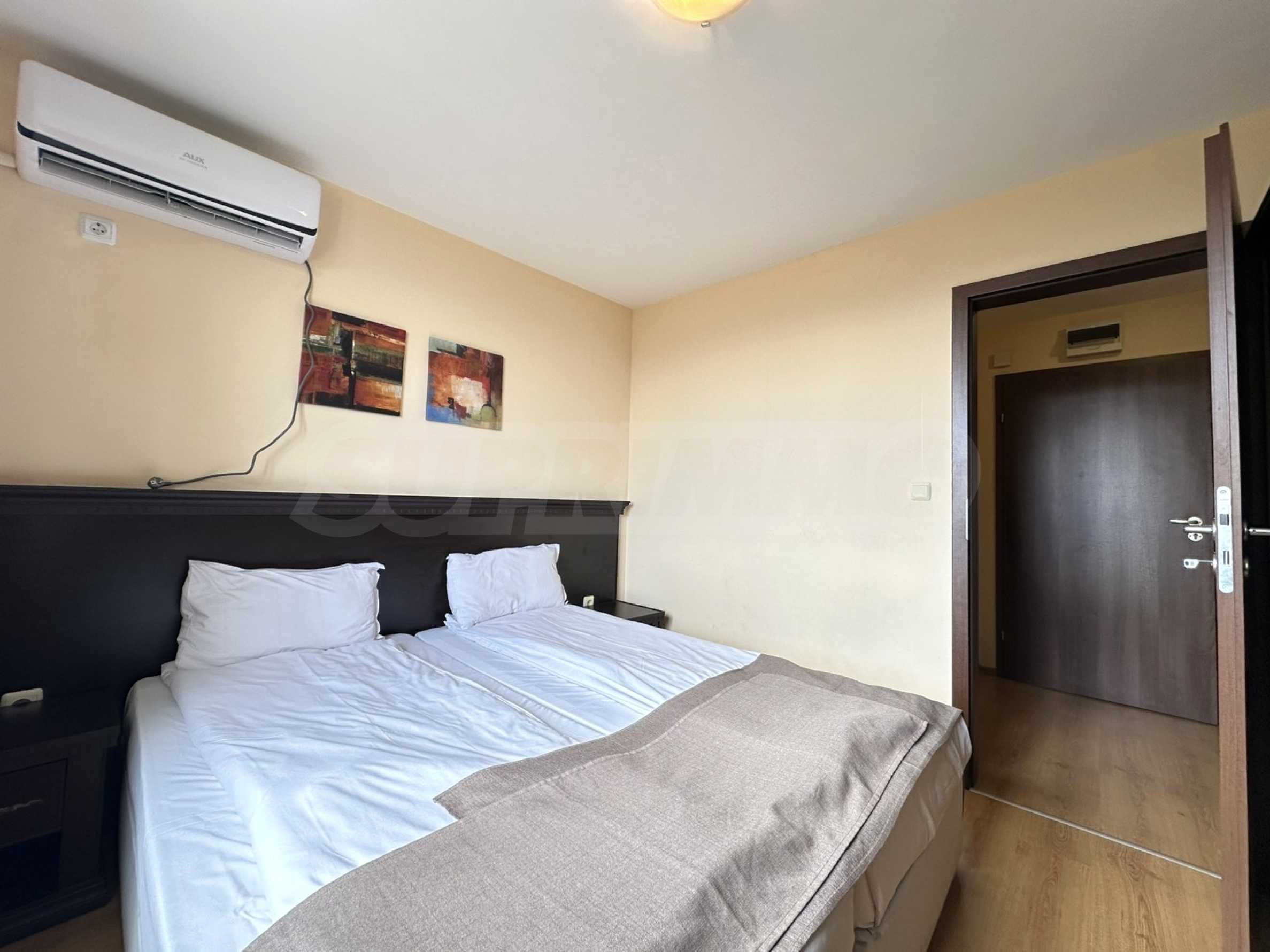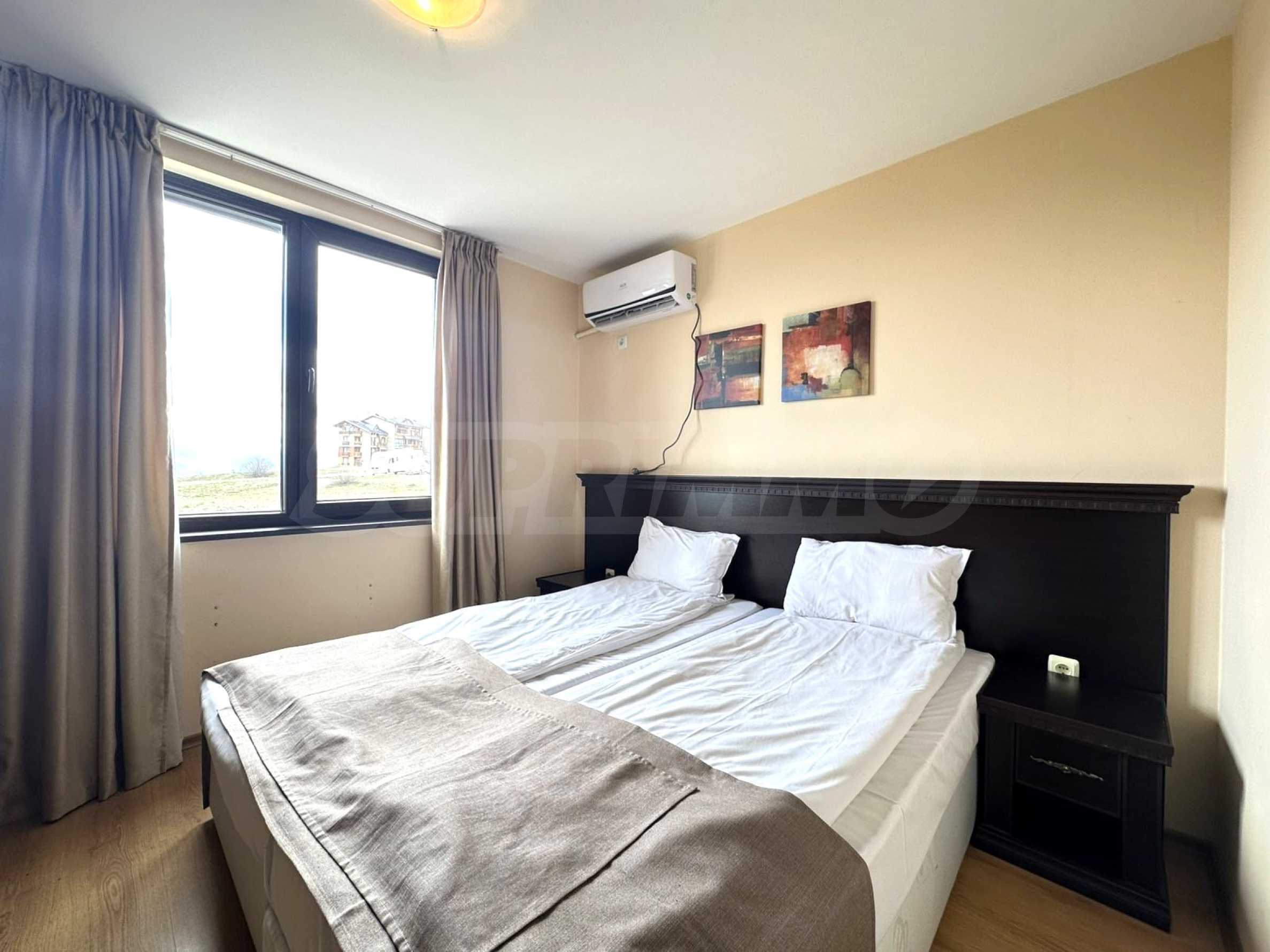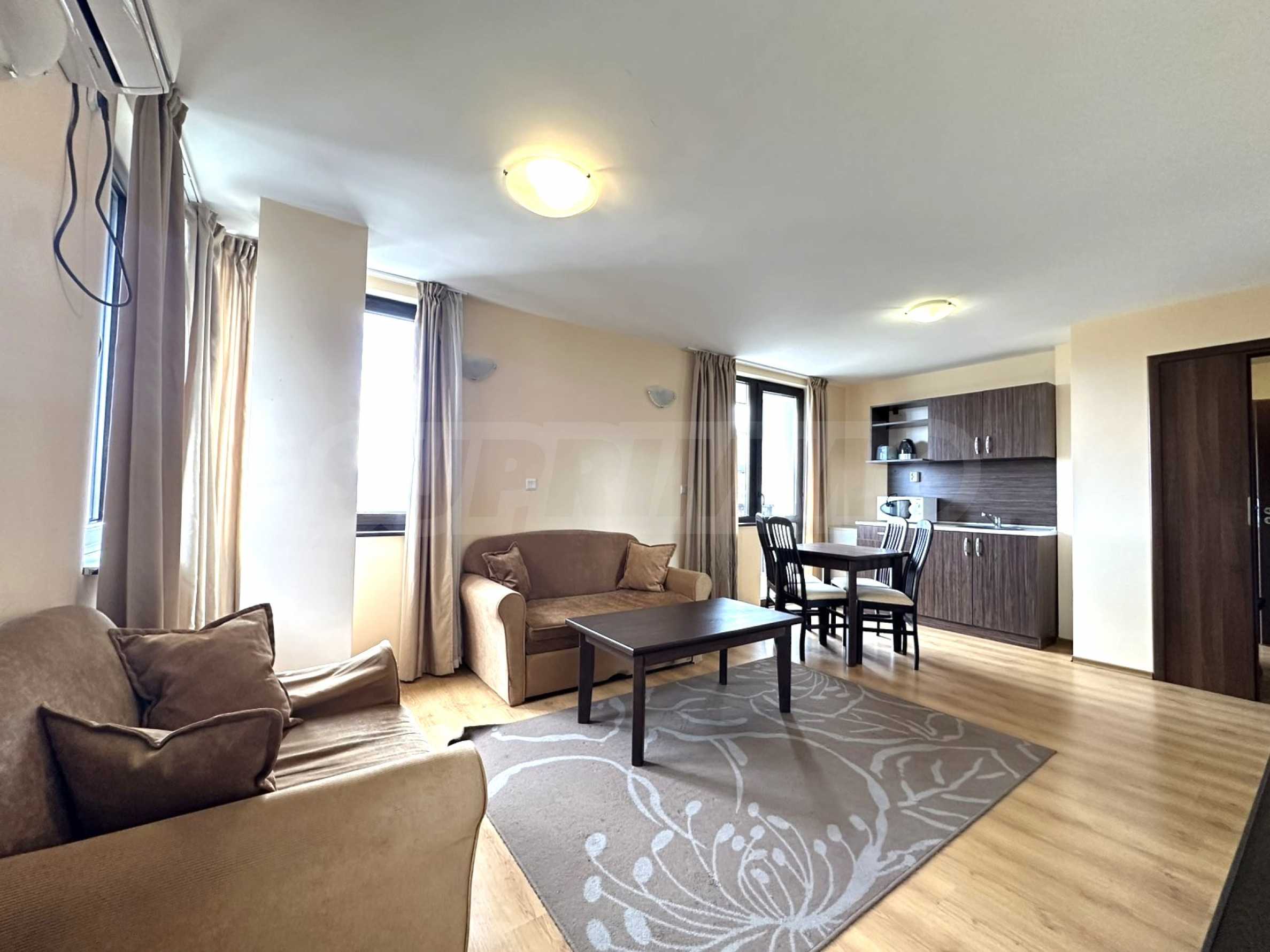 We present a bright and functional one-bedroom apartment in a gated complex with frontal views of the Pirin Mountains and the town of Bansko.
