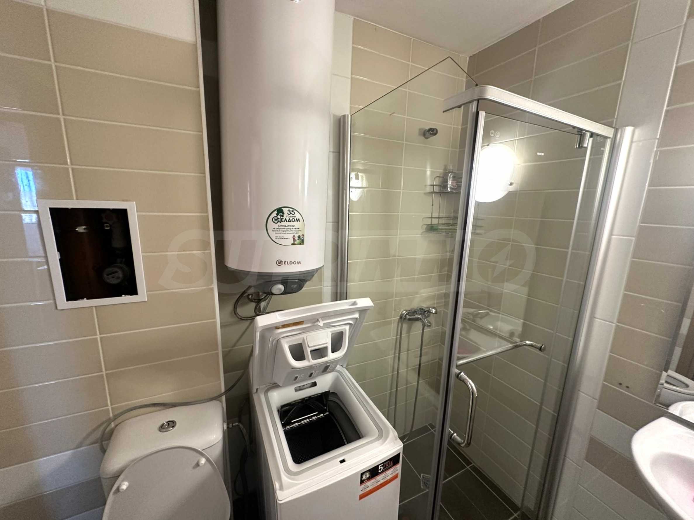 • Bathroom with shower/toilet, smart water heater and washing machine.