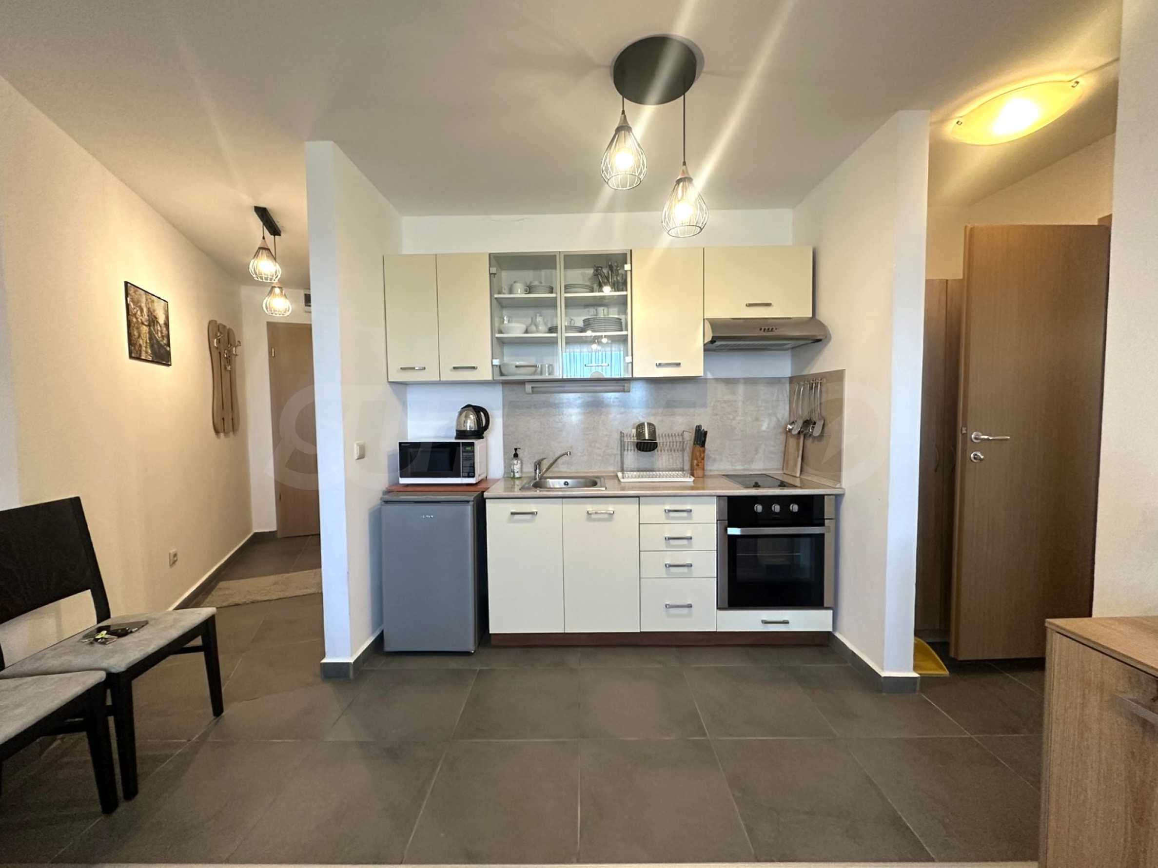 We present a functionally furnished one-bedroom apartment located in a year-round complex, located in the Betolovoto area, 10 km from the center of Bansko, 6 km from the town of Razlog and right next to Pirin Golf.