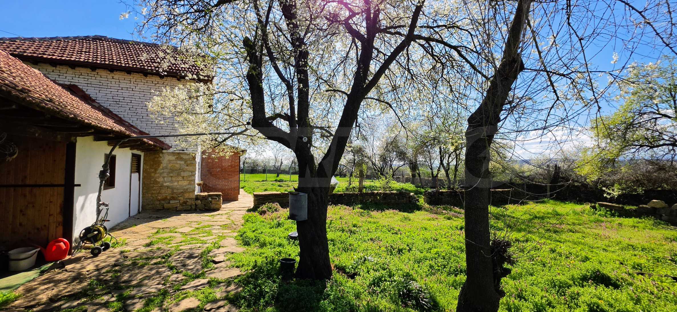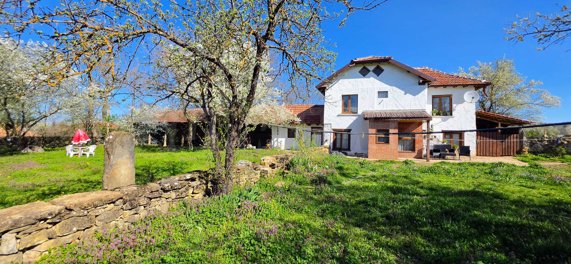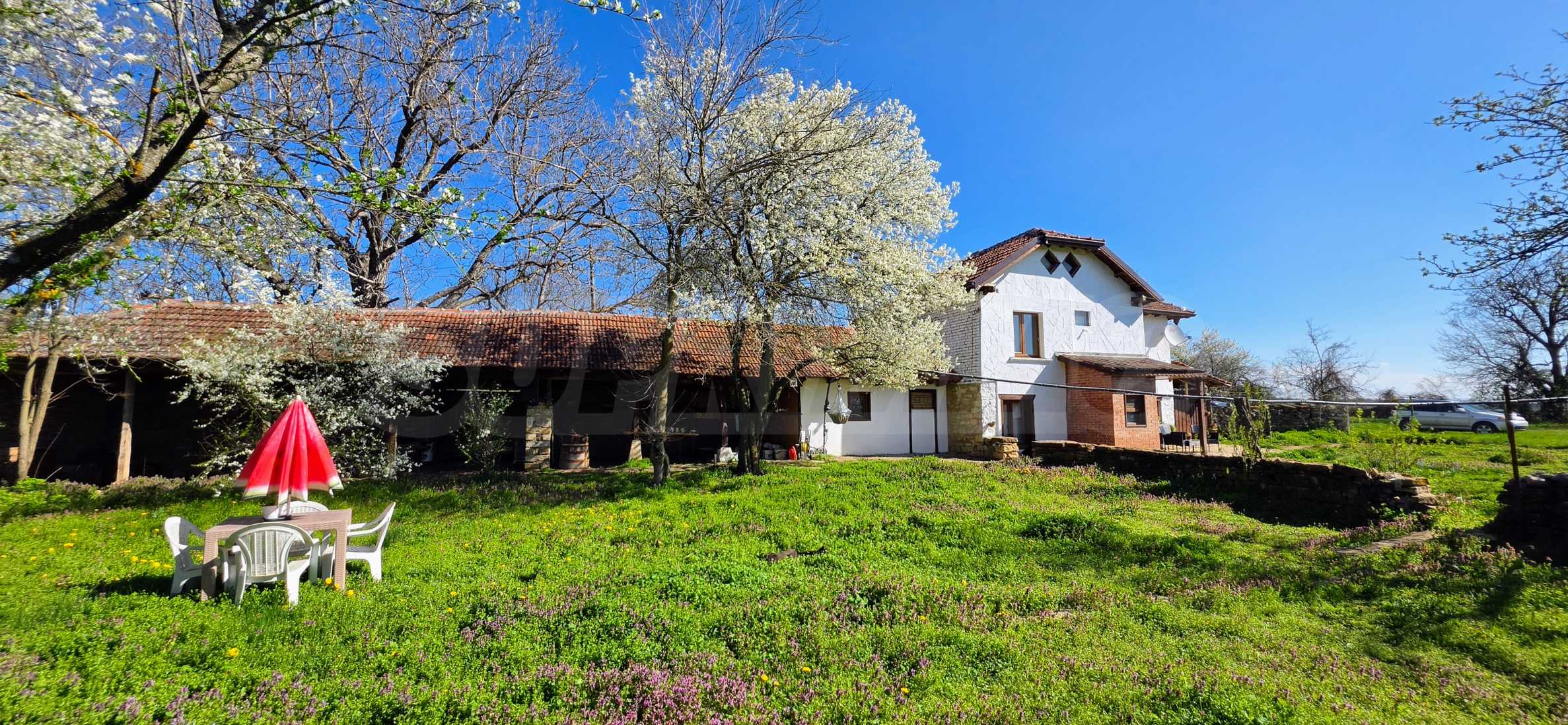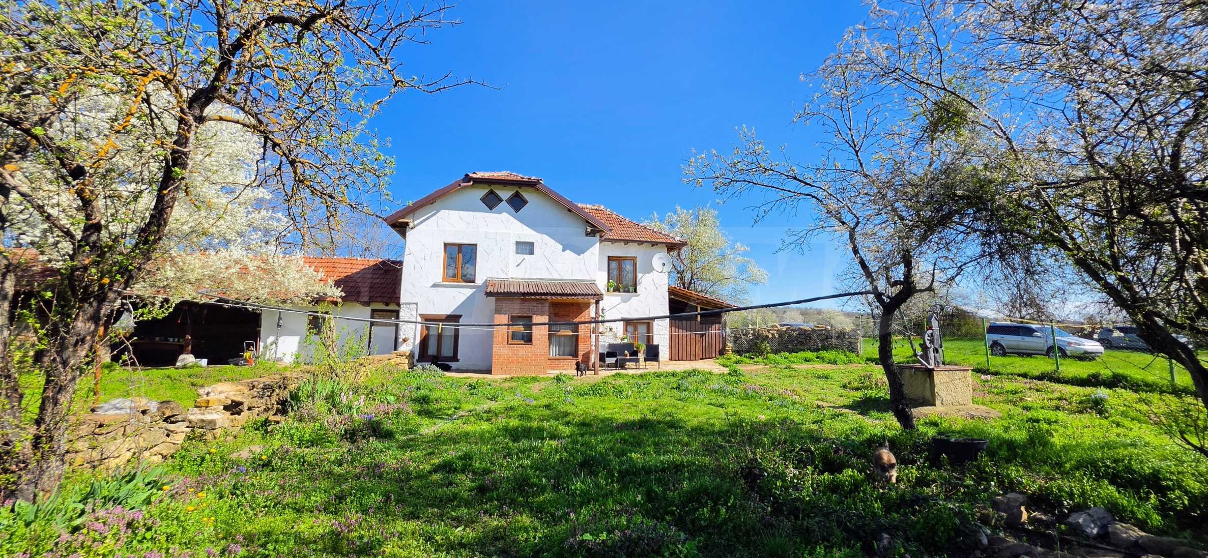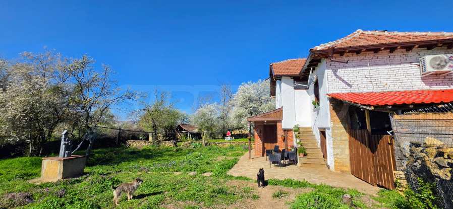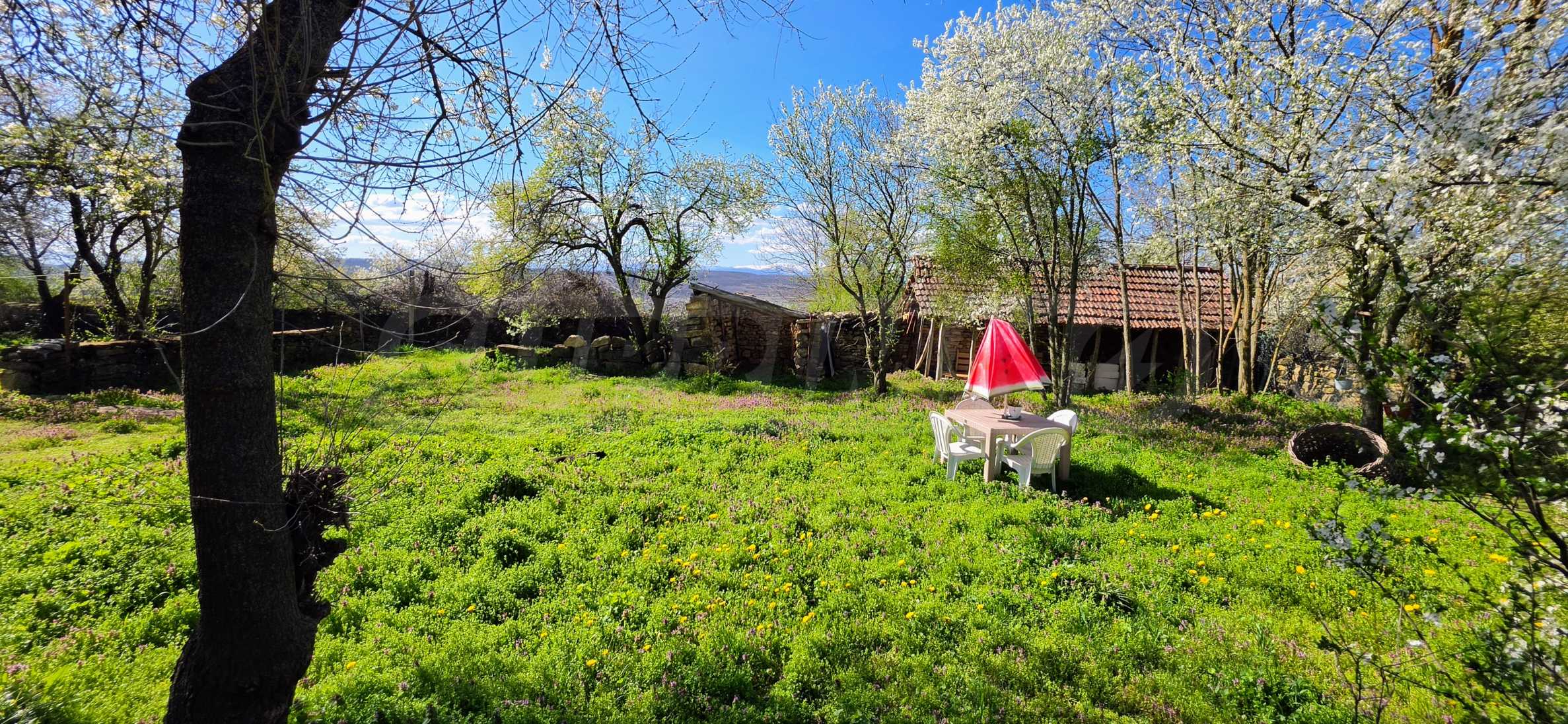 We present to you this charming rural property on the edge of a village, with a beautiful panoramic view of the green hills and the tranquility of nature. The yard is a spacious oasis of tranquility with an area of 1600 m2., regular and sunny, surrounded by stone walls. A pavement in front of the house and the outbuildings provides convenience, and the rest of the yard is suitable for a garden or relaxation, away from prying eyes. An internal fence has been built in the yard, ideal for pets or for separating part of the garden, while the entire plot remains free and spacious. The exposure is southern, which provides a sunny and bright yard throughout the day.