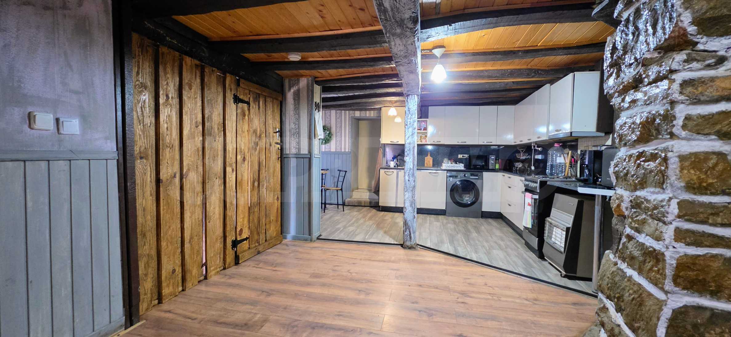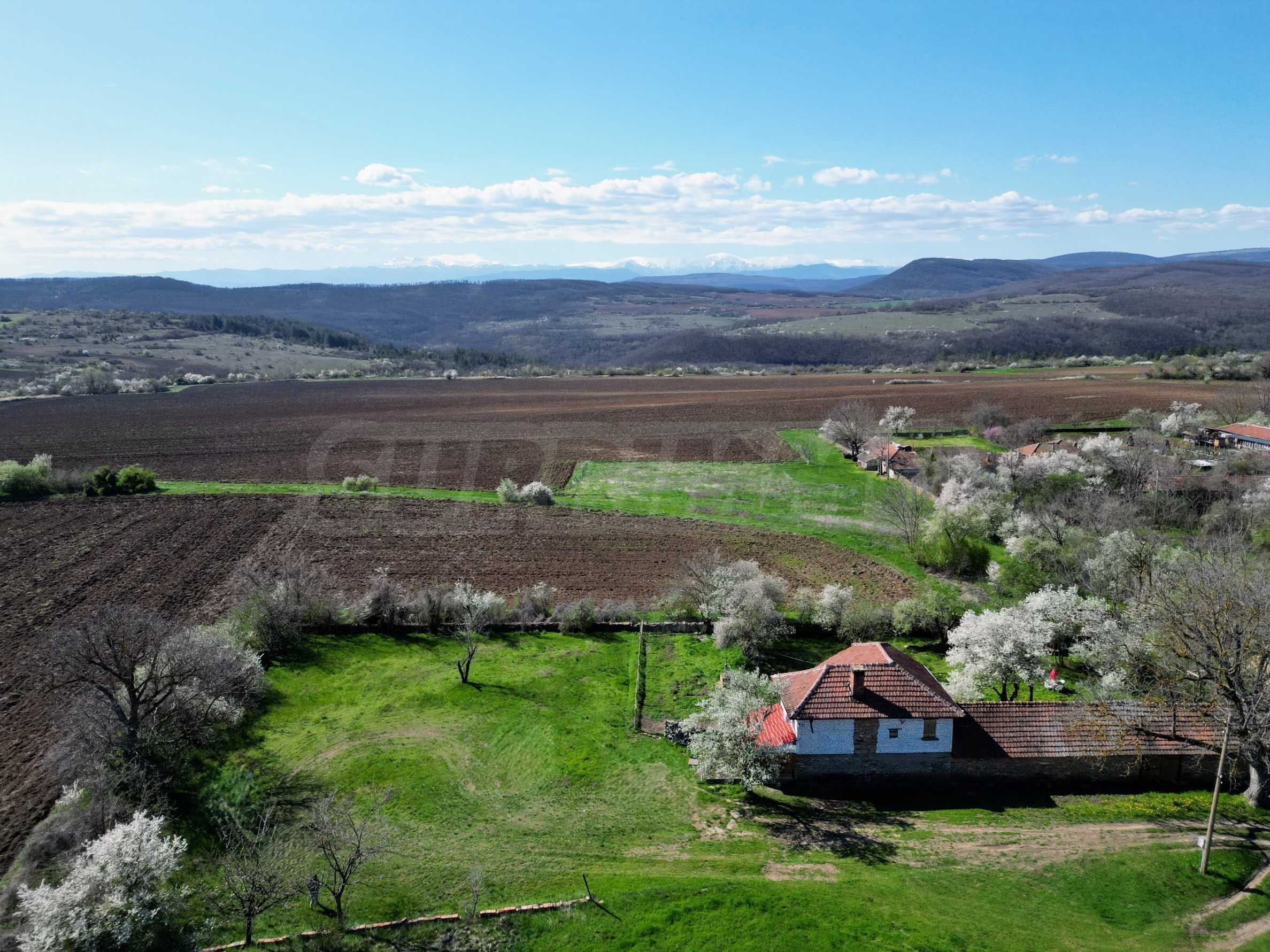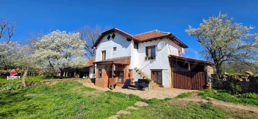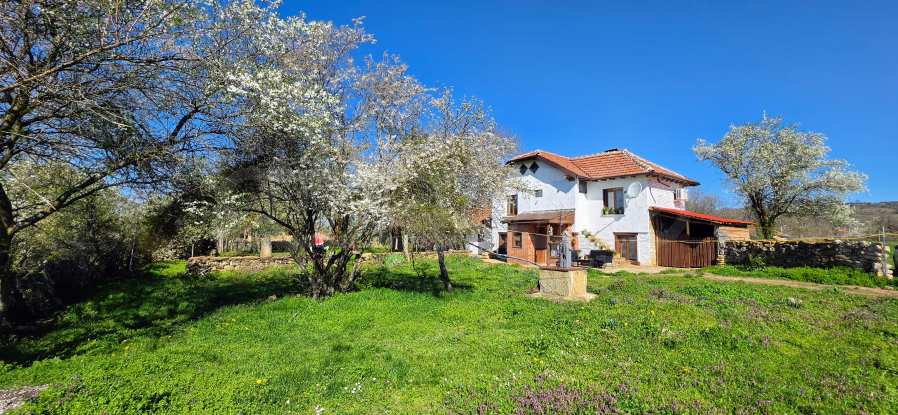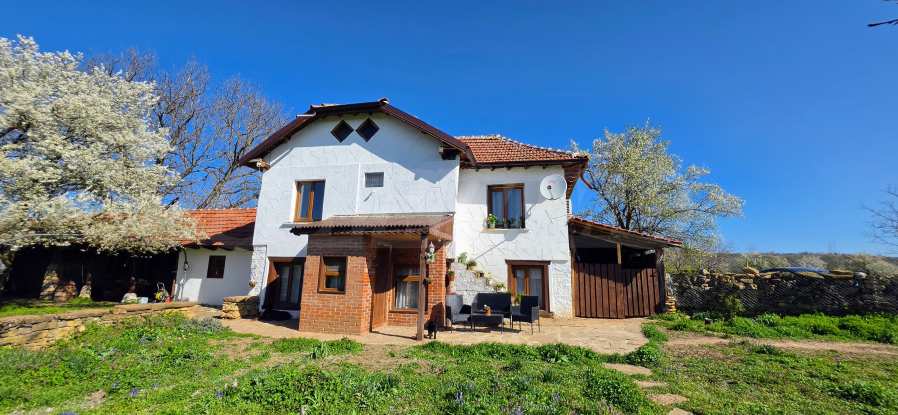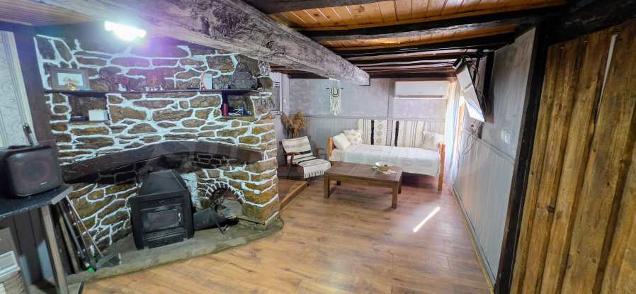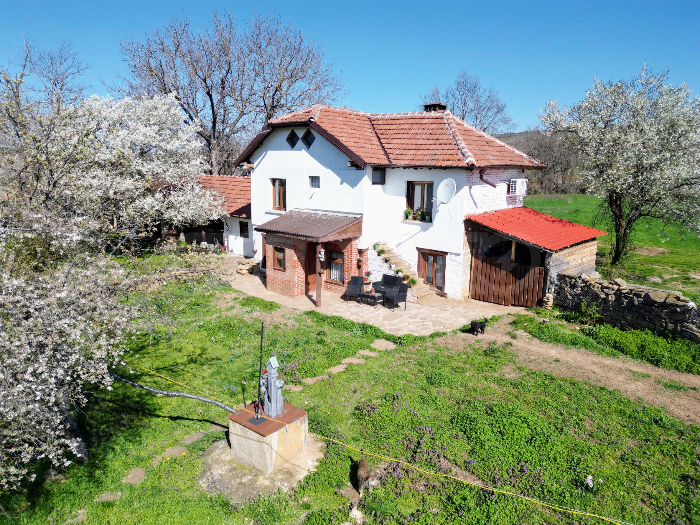 We present to you this charming rural property on the edge of a village, with a beautiful panoramic view of the green hills and the tranquility of nature. The yard is a spacious oasis of tranquility with an area of 1600 m2., regular and sunny, surrounded by stone walls. A pavement in front of the house and the outbuildings provides convenience, and the rest of the yard is suitable for a garden or relaxation, away from prying eyes. An internal fence has been built in the yard, ideal for pets or for separating part of the garden, while the entire plot remains free and spacious. The exposure is southern, which provides a sunny and bright yard throughout the day.