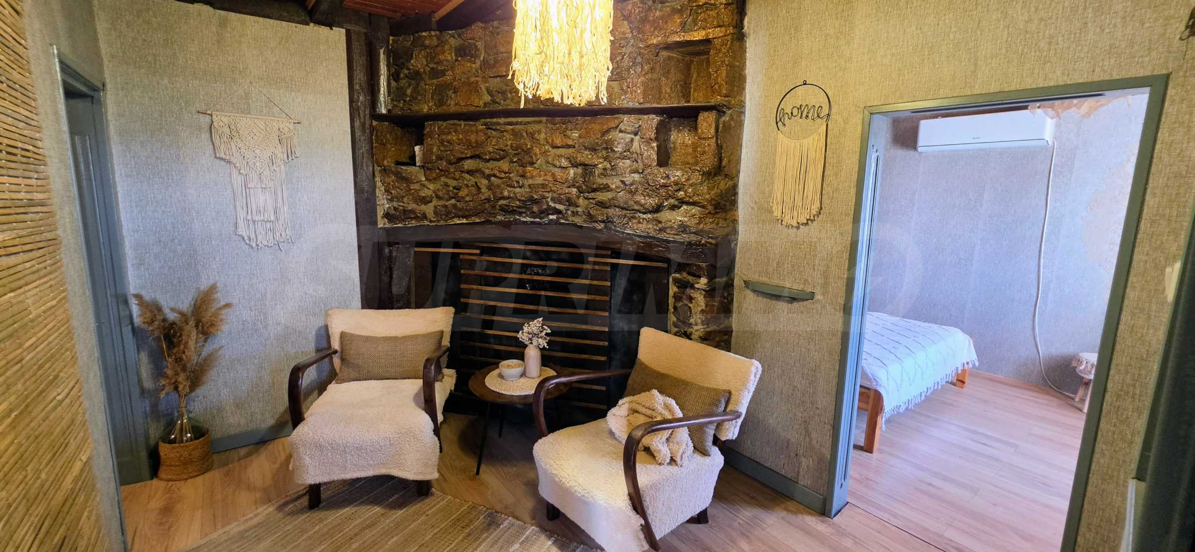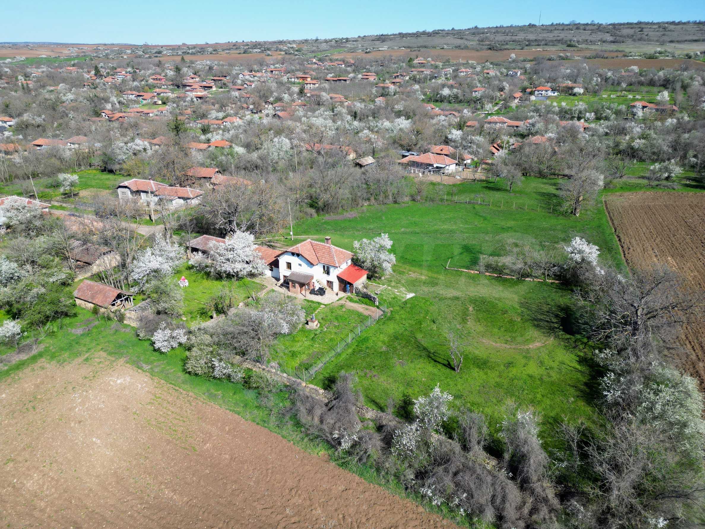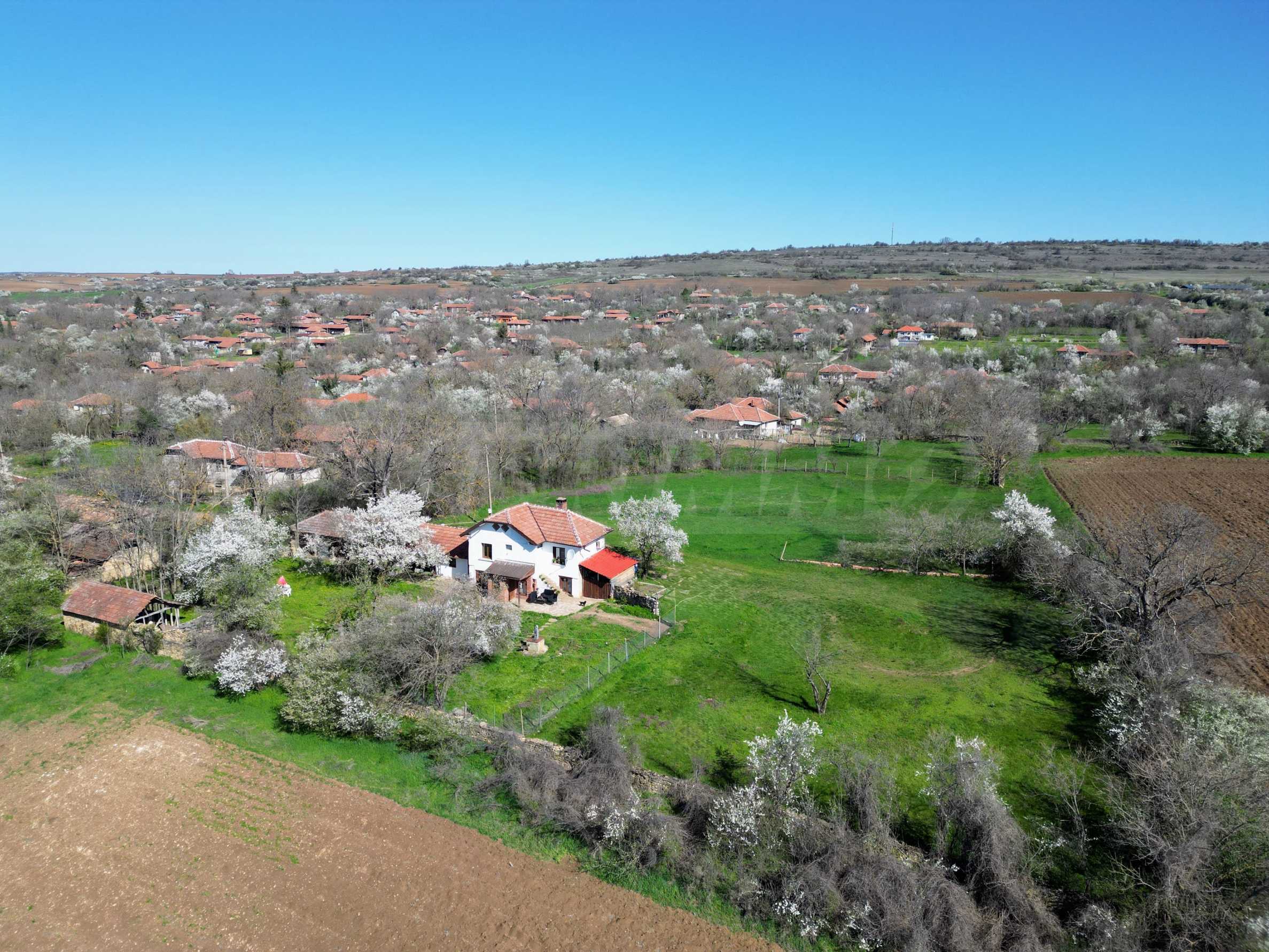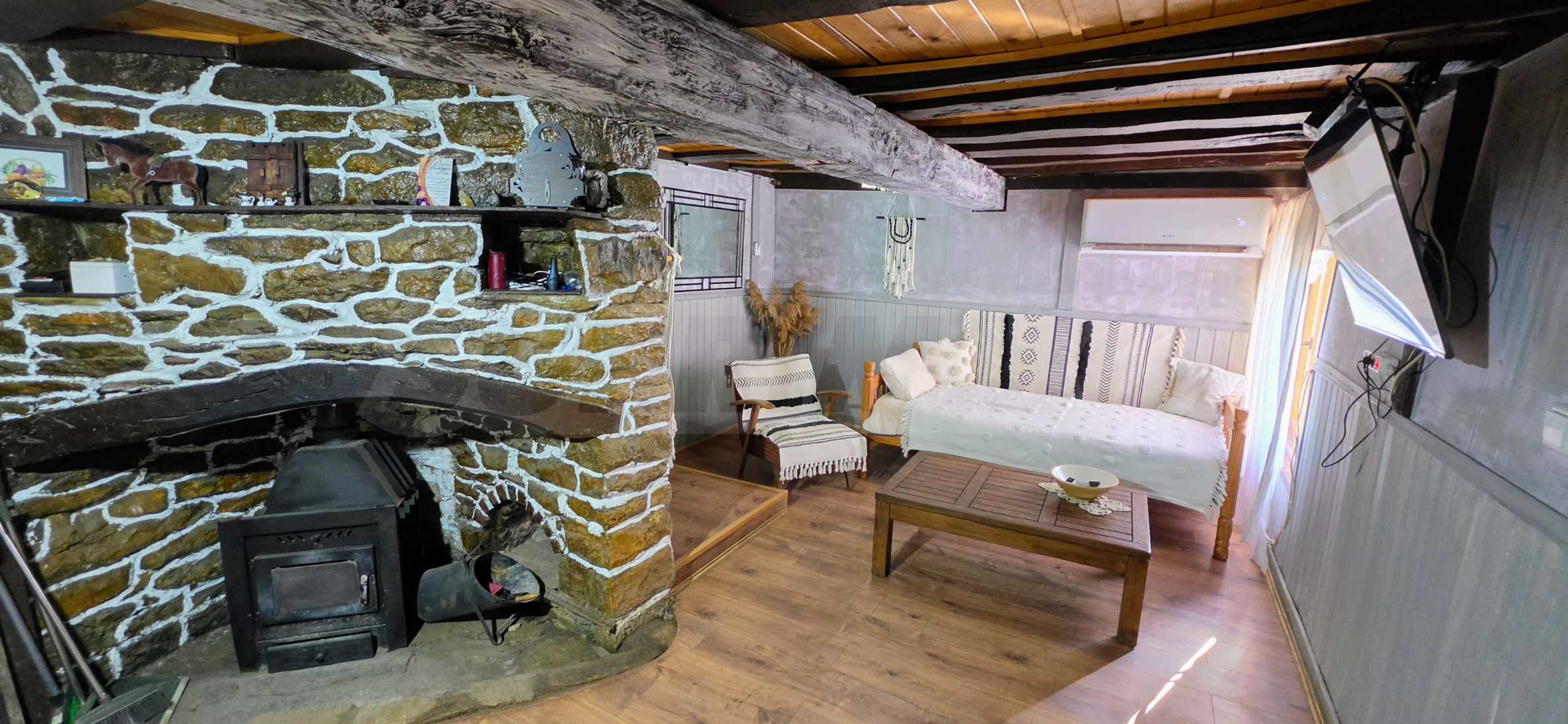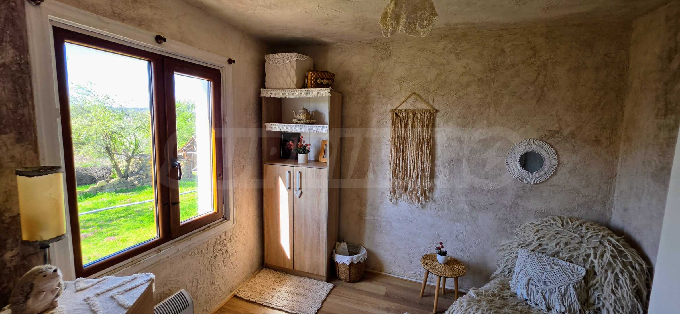 We present to you this charming rural property on the edge of a village, with a beautiful panoramic view of the green hills and the tranquility of nature. The yard is a spacious oasis of tranquility with an area of 1600 m2., regular and sunny, surrounded by stone walls. A pavement in front of the house and the outbuildings provides convenience, and the rest of the yard is suitable for a garden or relaxation, away from prying eyes. An internal fence has been built in the yard, ideal for pets or for separating part of the garden, while the entire plot remains free and spacious. The exposure is southern, which provides a sunny and bright yard throughout the day.