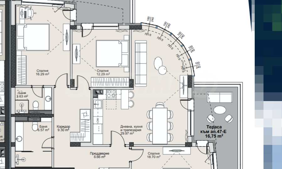 We present a four-bedroom apartment for sale in a new phase of a large-scale residential complex in a top location, meters from a future metro station in the Vitosha district. The property is located in one of the most ambitious urban development projects in Sofia - a completely new neighborhood, created from scratch with a concept for a modern lifestyle, harmony and functionality.