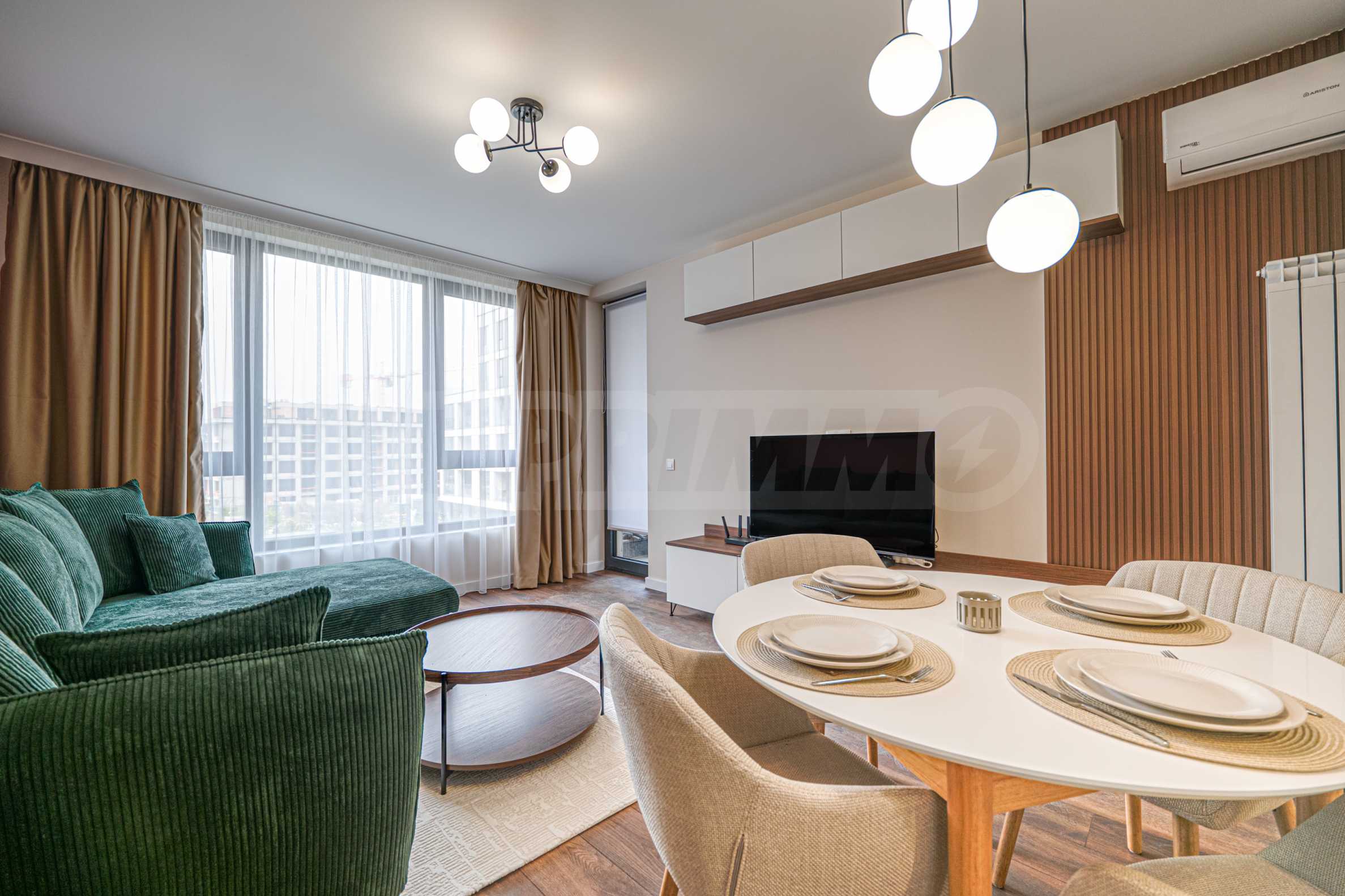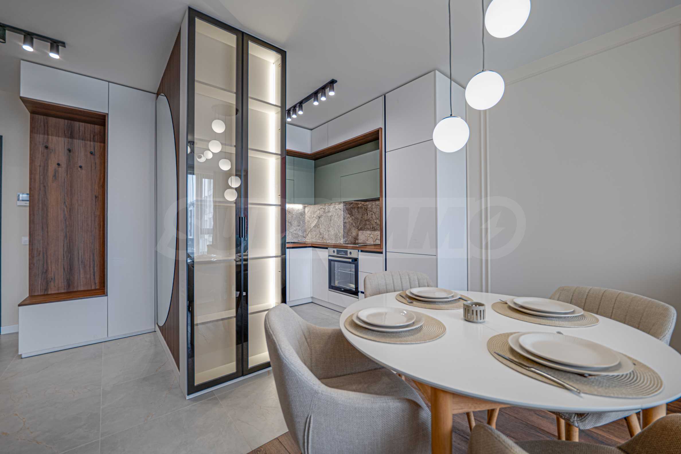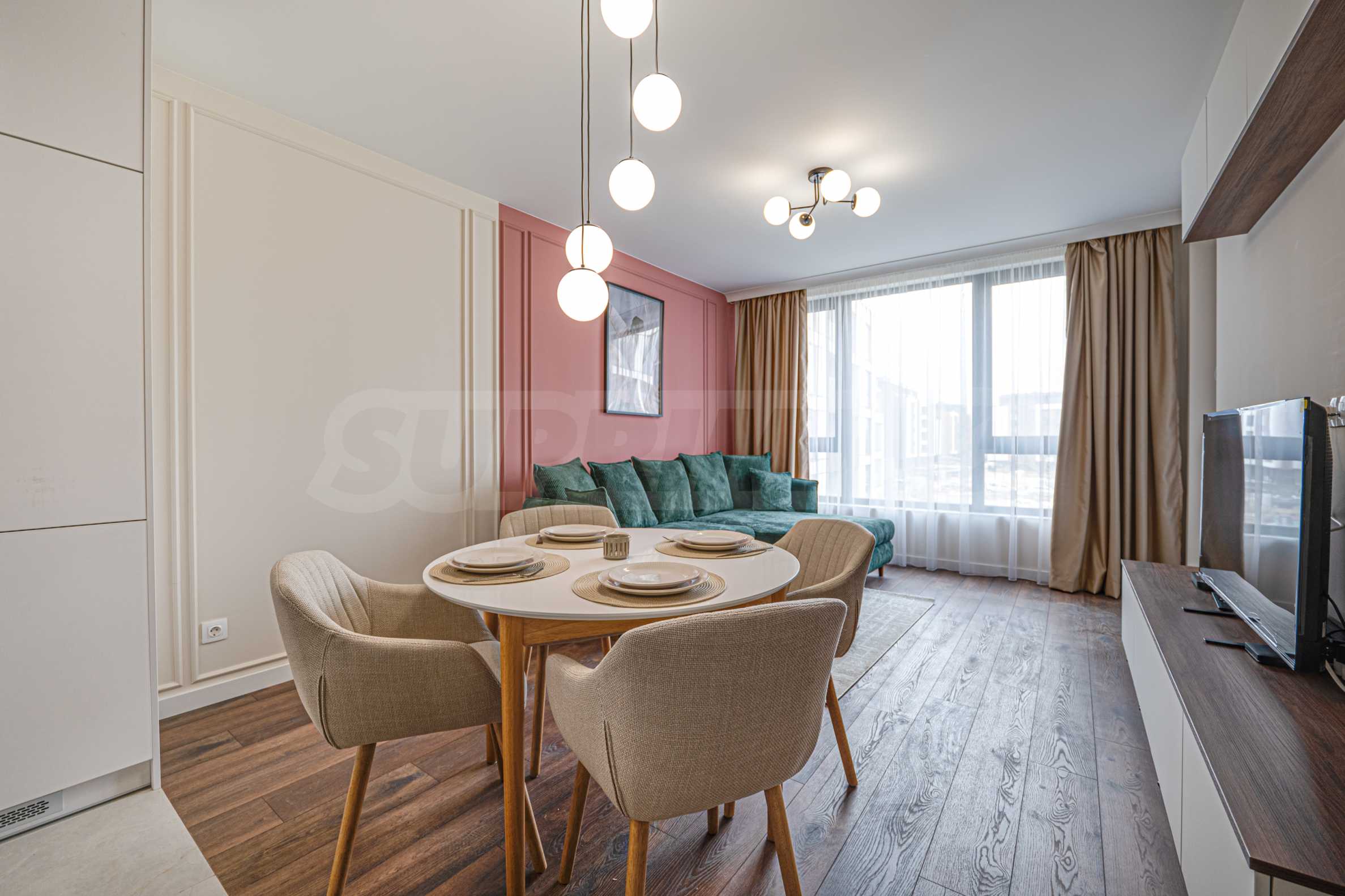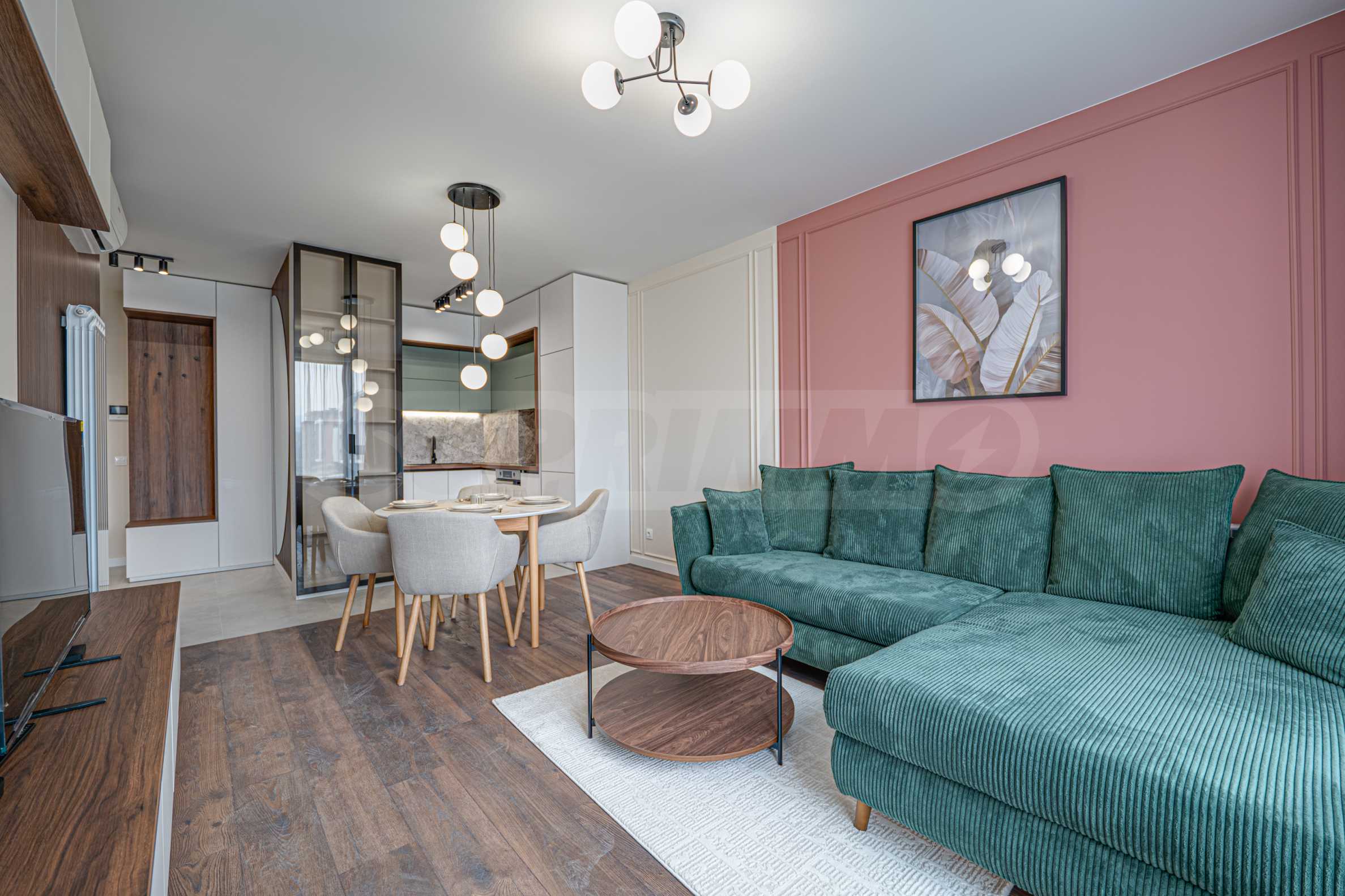 Sunny brand new apartment located in a new luxury complex in the "Krustova Vada" district. The panoramic view of Vitosha Mountain and southwest exposure saturate the apartment with light and space.