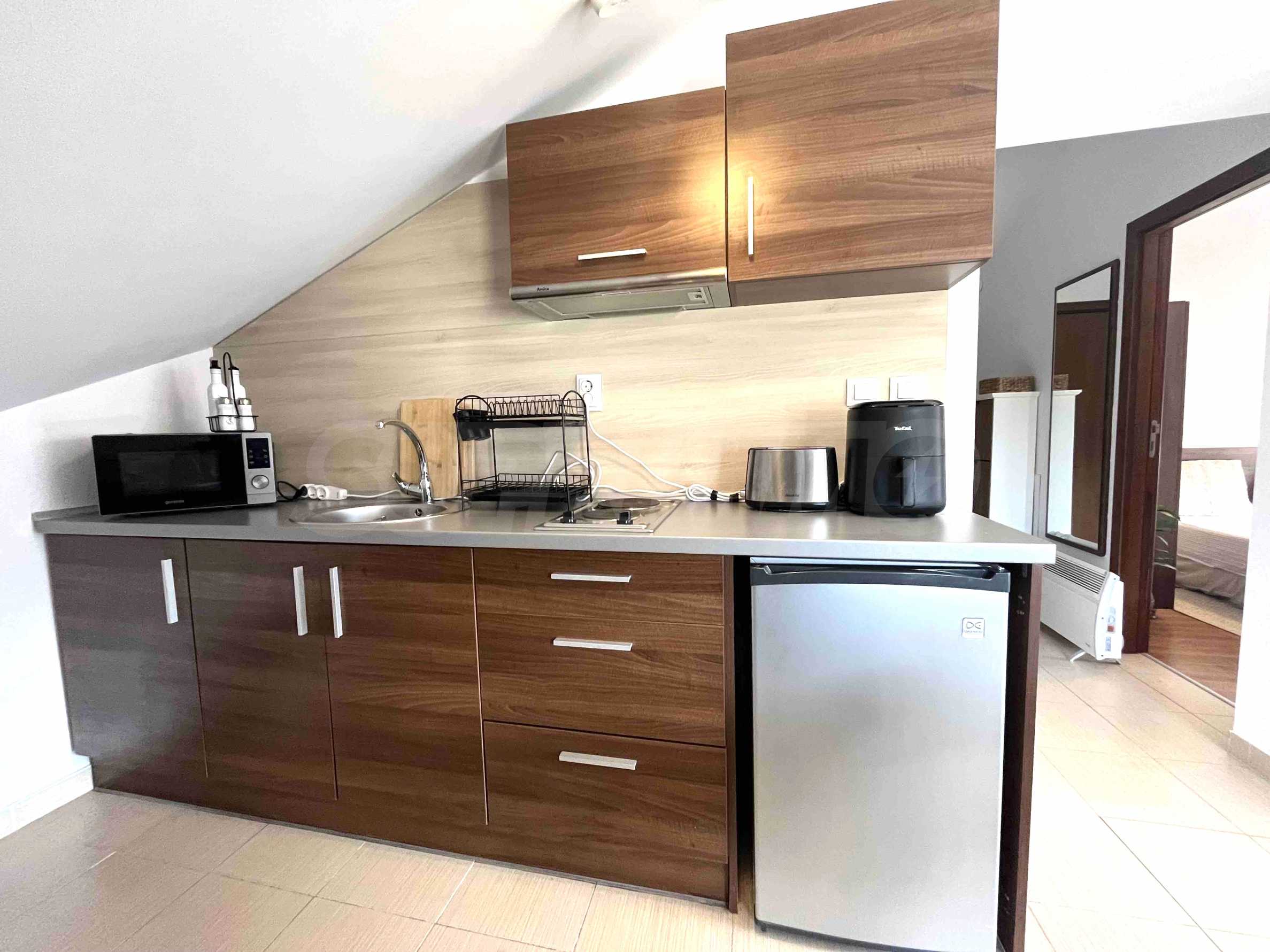 • Kitchenette: equipped with a pair of hotplates, refrigerator, extractor hood;