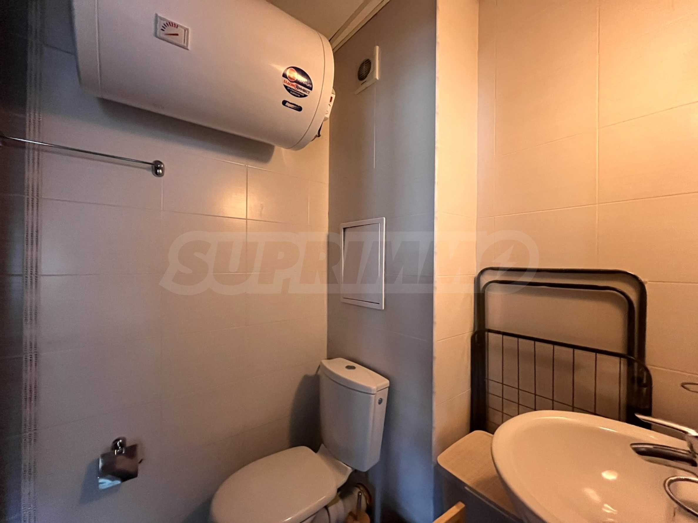 • Bathroom - furnished with a shower cabin, sink with mirror, toilet and water heater.