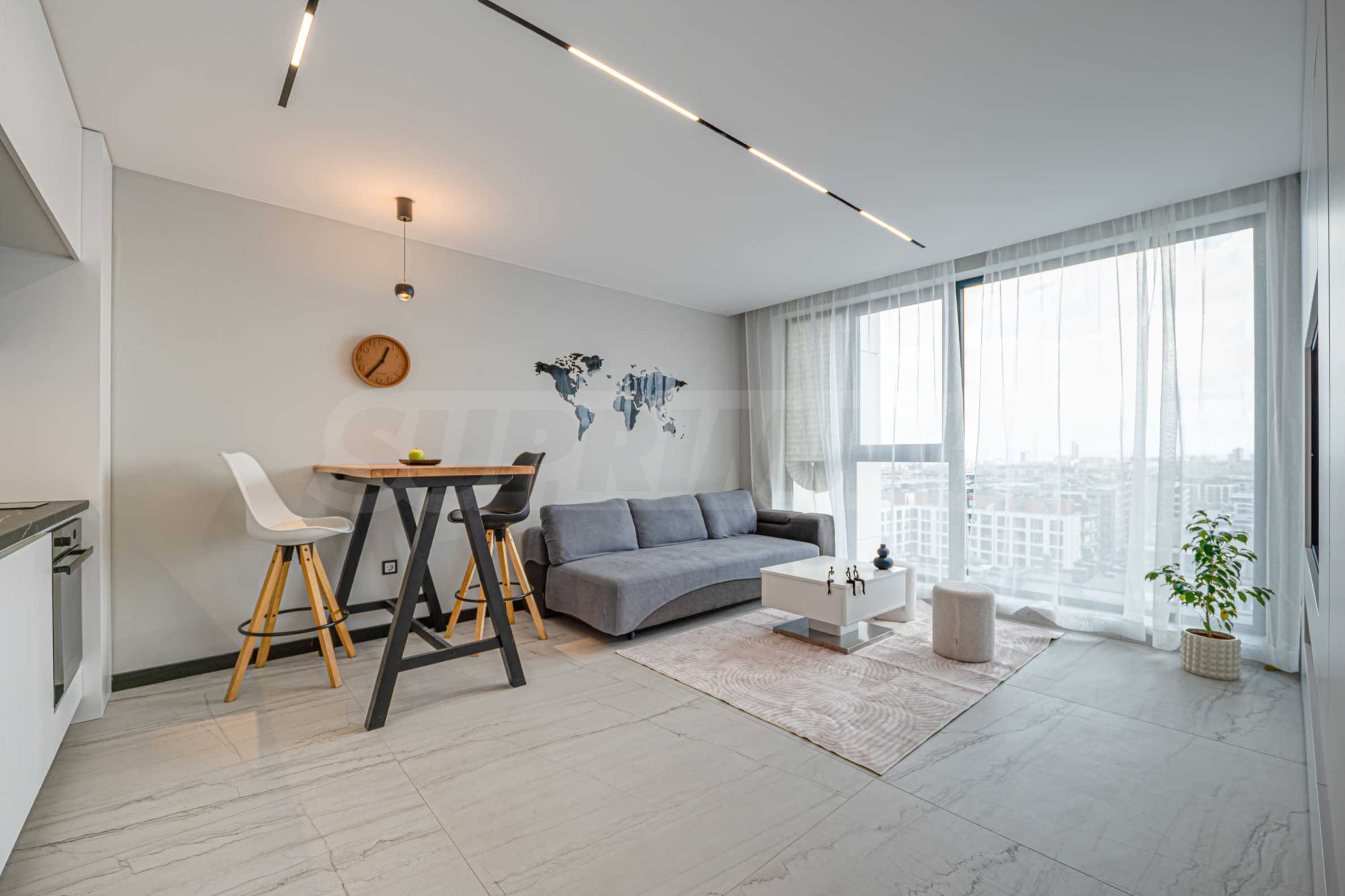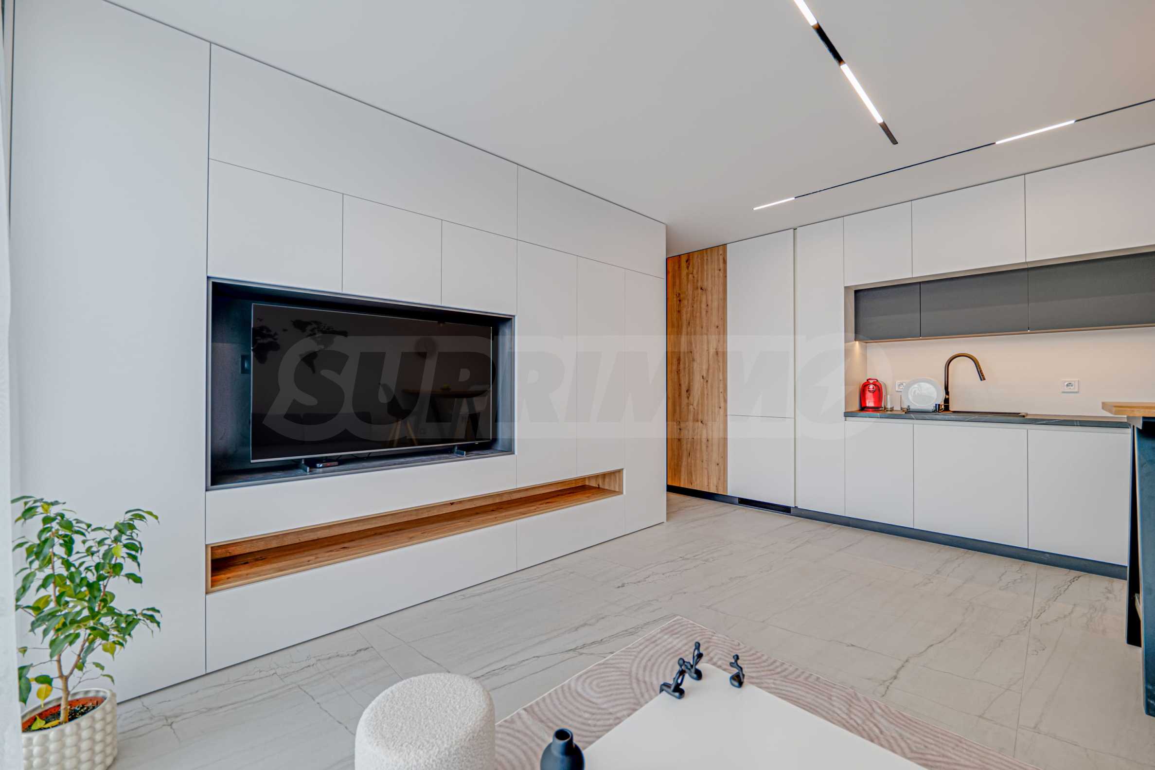 The property is finished and furnished according to a designer project, with functional storage space and maximum attention to detail. All electrical appliances are available, including a dryer.