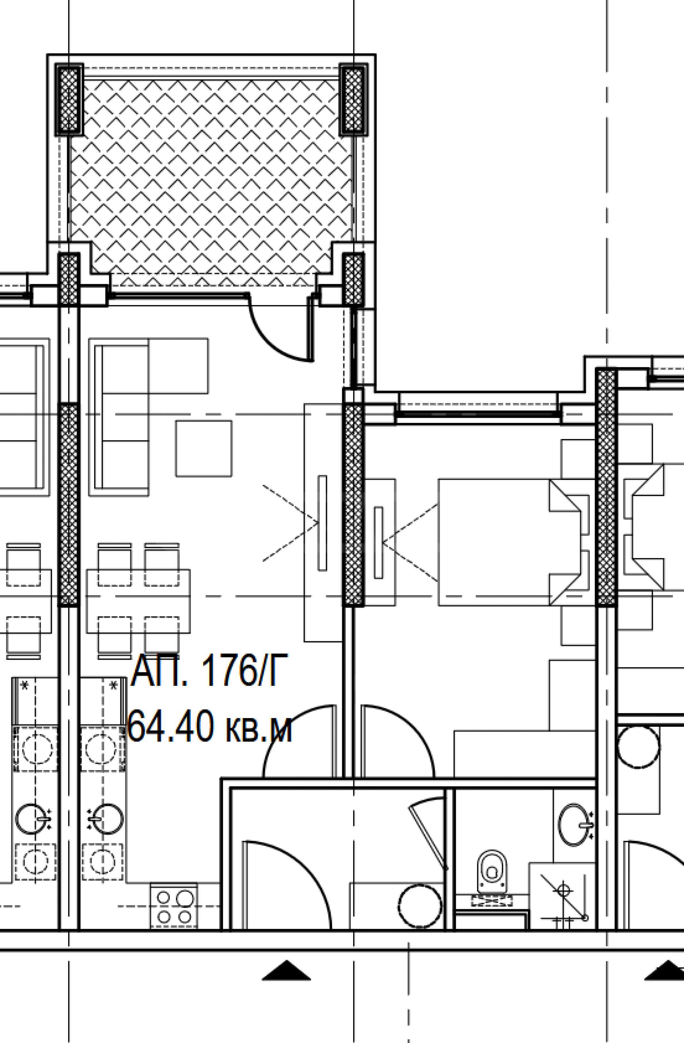 The property is located on the 4th floor and has a total area of 74.41 m2, net area - 64.40 m2, on which are distributed: entrance hall, bathroom with toilet, living room with kitchen, terrace, one bedroom. The property is being let in a degree of completion according to BDS, with five-chamber PVC joinery Rehau, with triple glazing and an armored entrance door.