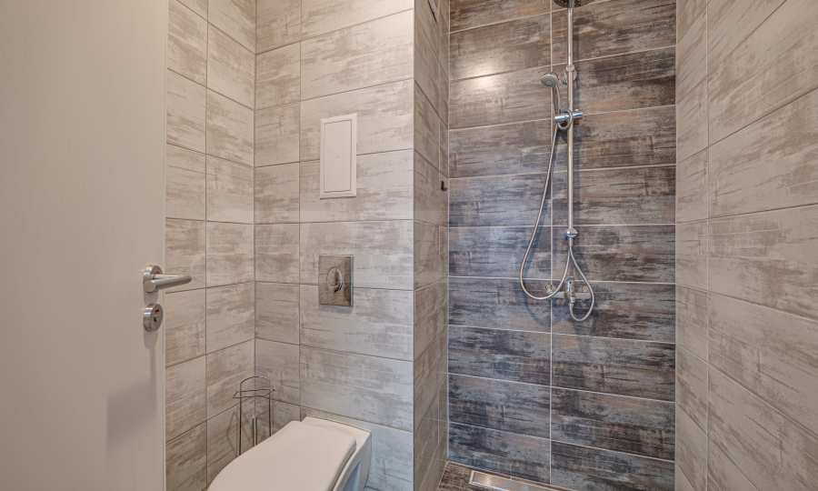The heating is provided by gas underfloor heating, and for additional comfort, a Mitsubishi air conditioner is installed.
