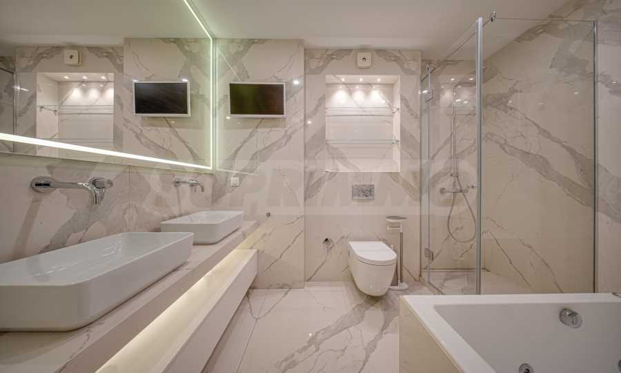 The apartment is spacious, bright and with high ceilings, located on the 7th floor out of 12, with an area of 165 sq m. Completed according to a designer project, this property offers an elegant interior with attention to the smallest detail, furniture and appliances of the highest class.