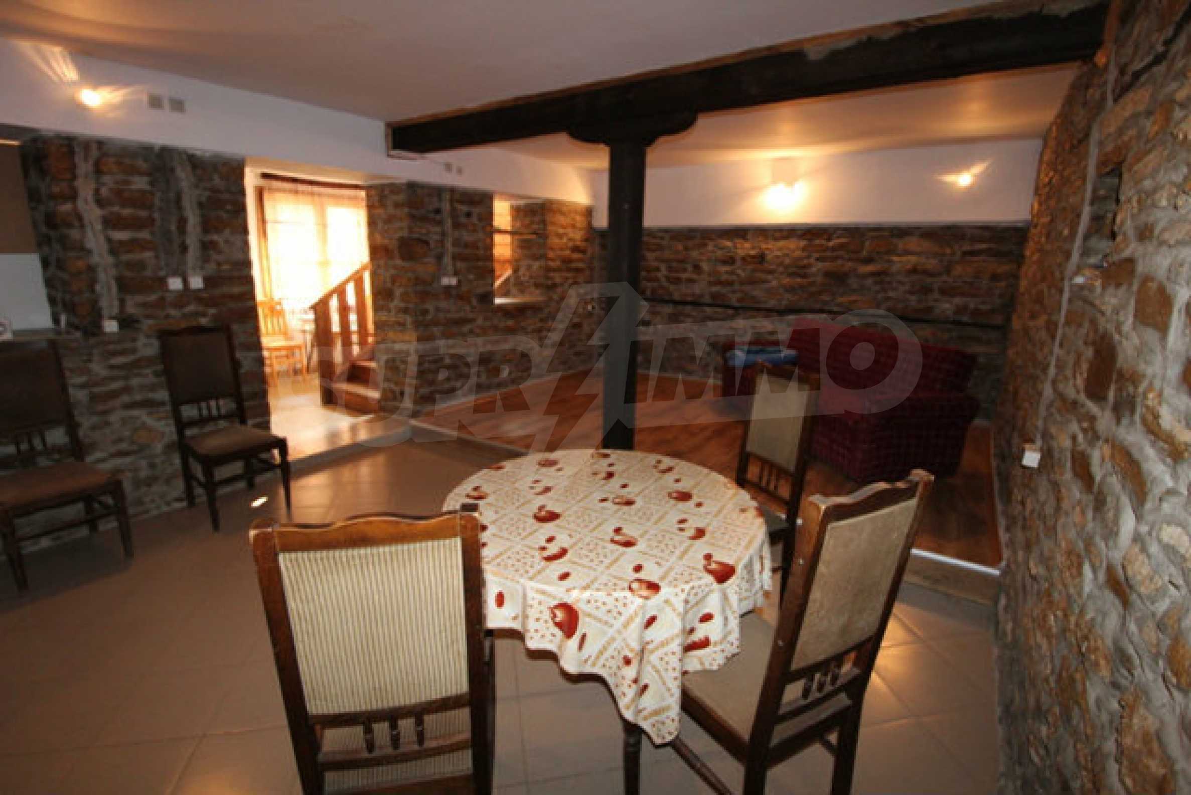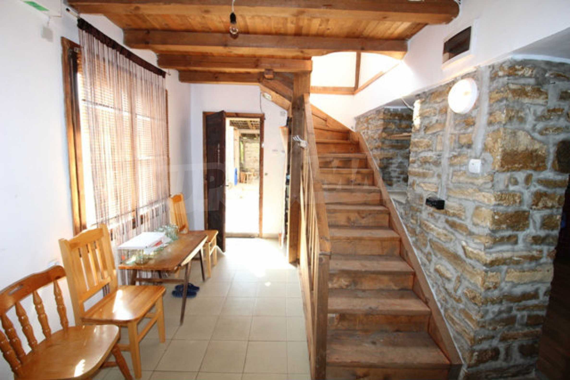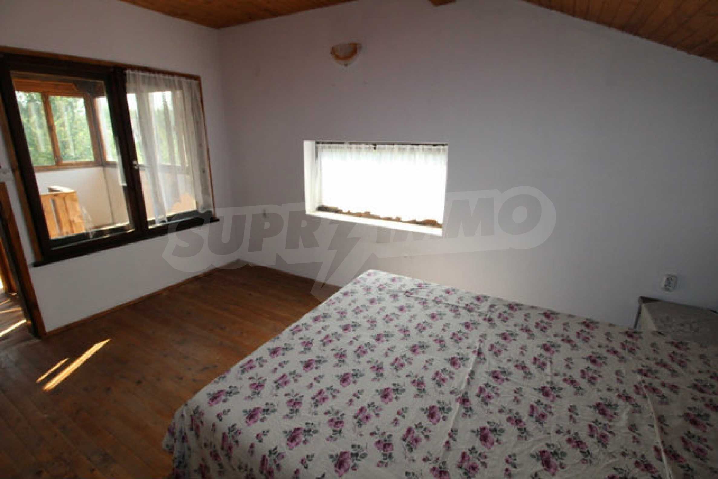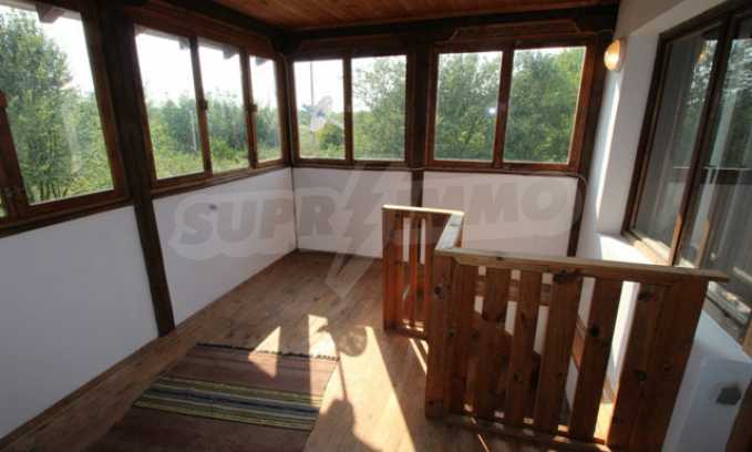 The house is built mainly of wood, stone and bricks and has internal insulation. Located 25 km. from the old capital of Veliko Tarnovo, the house has a total area of 110 sq.m., located on 2 floors with a southwest exposure and views of the forest. First floor - two-level mehana / dining room and place for relaxation / hall, kitchen, bathroom, staircase. Second floor - 2 bedrooms with a size of 16 sq.m. each, glassed porch. The house is furnished with everything if you planning to rent it out / capacity of 10-12 /. The yard is with a size of 600 sq.m. There are functioning well, a wood shed, parking space for car / s/. Year-round access to the village and house. In the area there are two dams for fishing, river Rosica and the historic Roman village - "Nicopolis ad Istrum" are 7 km. away. The house has insurance and security system. Unspoiled nature in the region conducive to active recreation and leisure.
