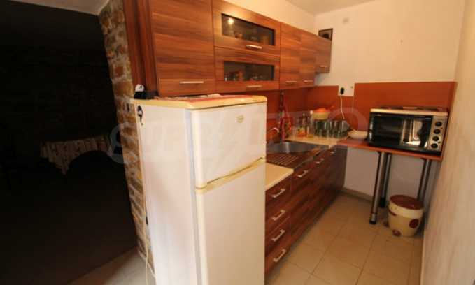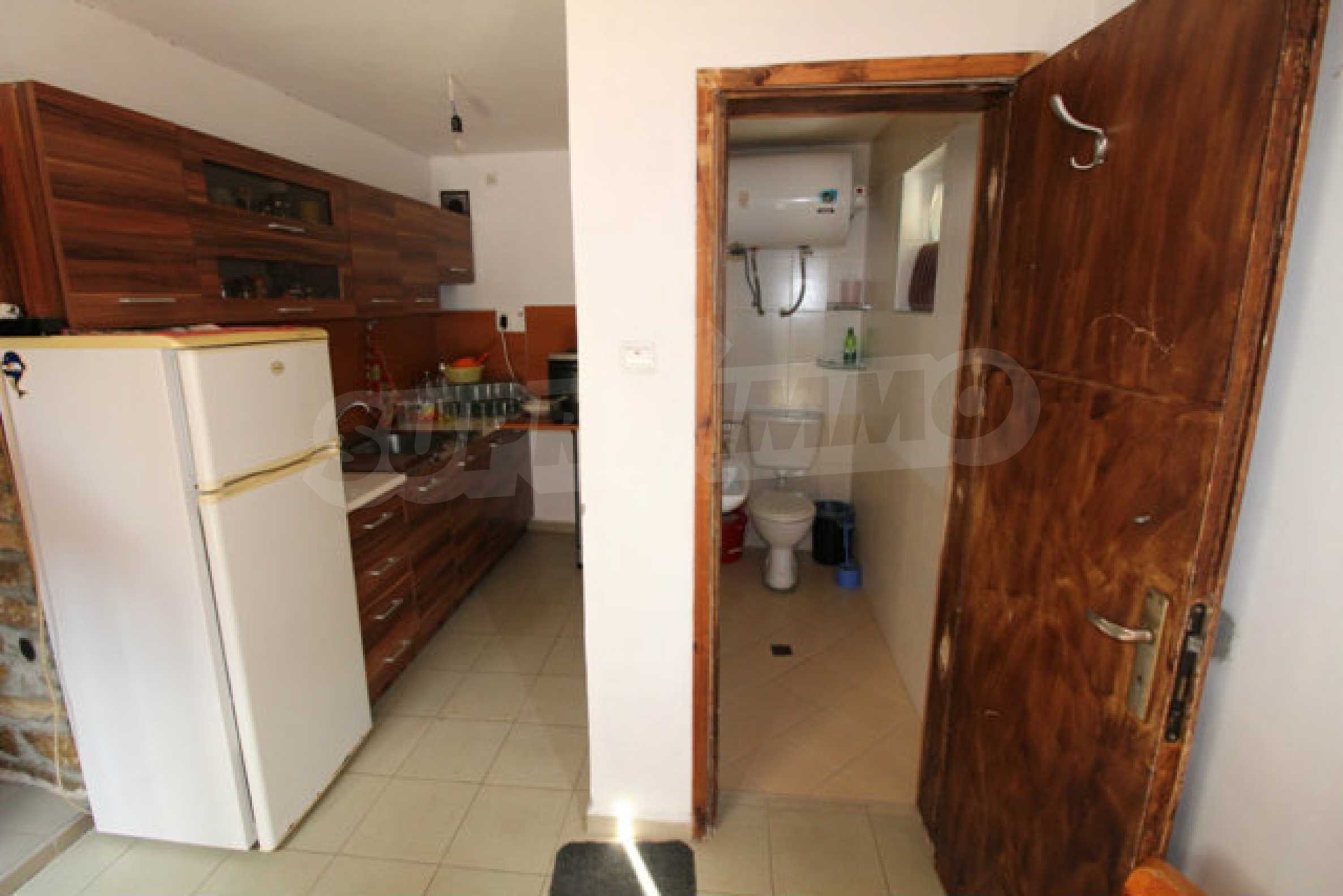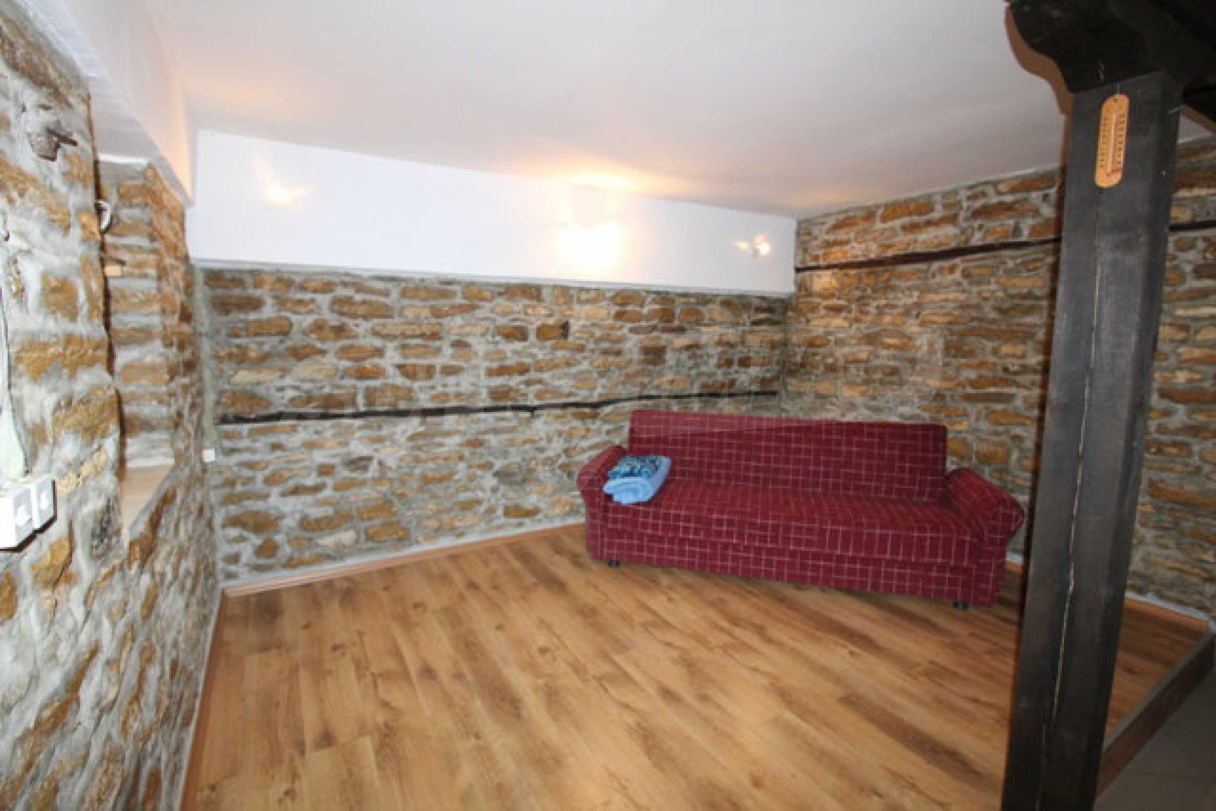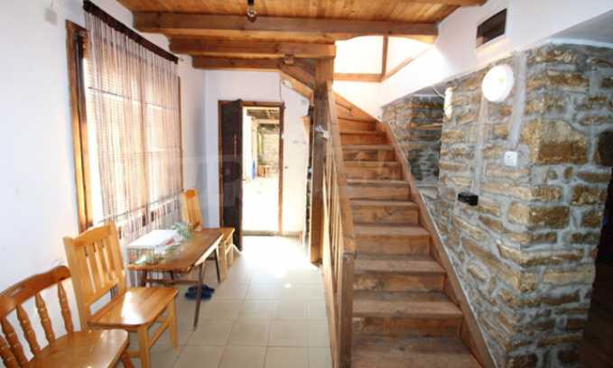 The house is built mainly of wood, stone and bricks and has internal insulation. Located 25 km. from the old capital of Veliko Tarnovo, the house has a total area of 110 sq.m., located on 2 floors with a southwest exposure and views of the forest. First floor - two-level mehana / dining room and place for relaxation / hall, kitchen, bathroom, staircase. Second floor - 2 bedrooms with a size of 16 sq.m. each, glassed porch. The house is furnished with everything if you planning to rent it out / capacity of 10-12 /. The yard is with a size of 600 sq.m. There are functioning well, a wood shed, parking space for car / s/. Year-round access to the village and house. In the area there are two dams for fishing, river Rosica and the historic Roman village - "Nicopolis ad Istrum" are 7 km. away. The house has insurance and security system. Unspoiled nature in the region conducive to active recreation and leisure.