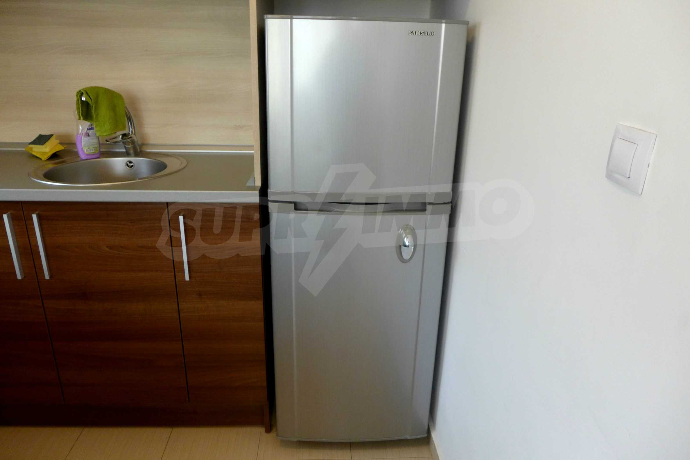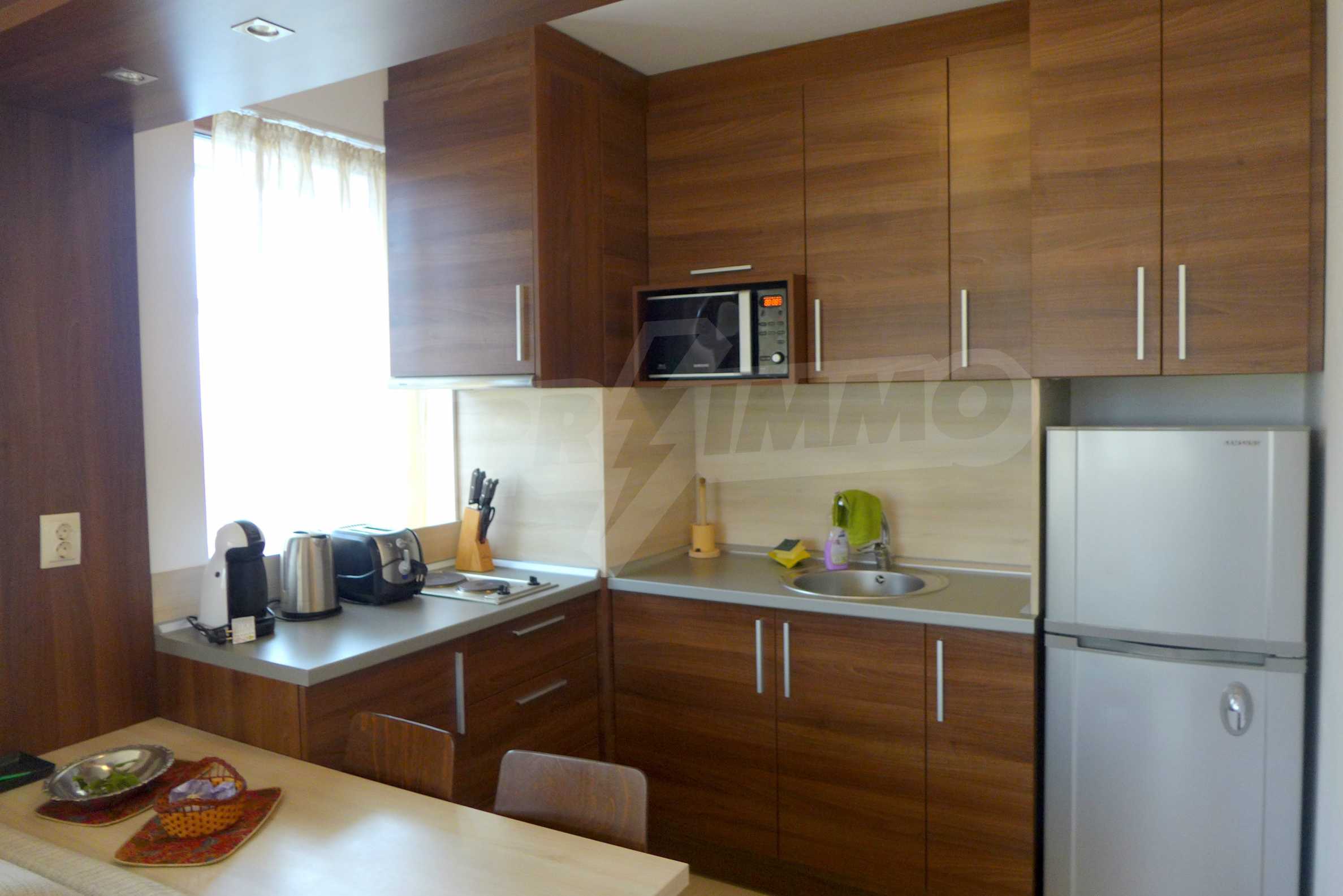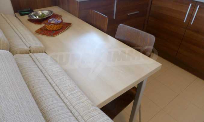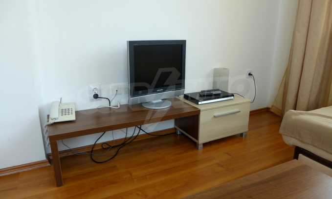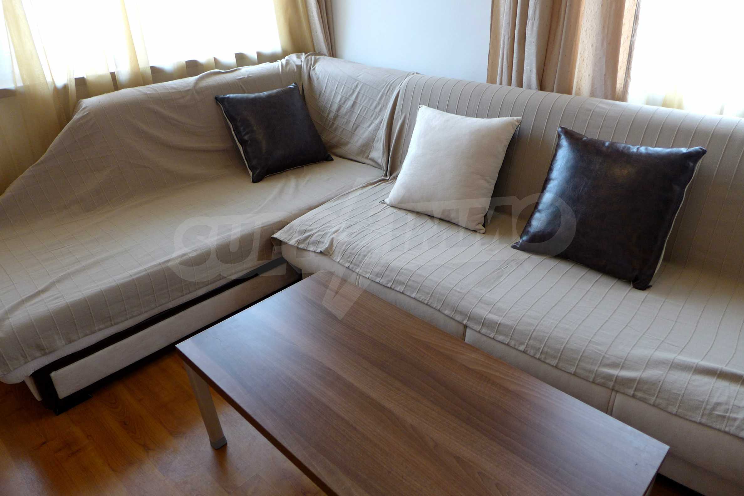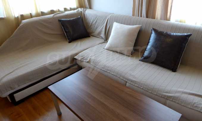 The one bedroom apartment has total area of 60.90 sq.m. It consists of entrance hall, living room with kitchen area, bedroom, bathroom with toilet and balcony. The property is offered for sale fully furnished and equipped with everything necessary for the comfort of the new owners and their guests. The whole complex has diesel central heating system.