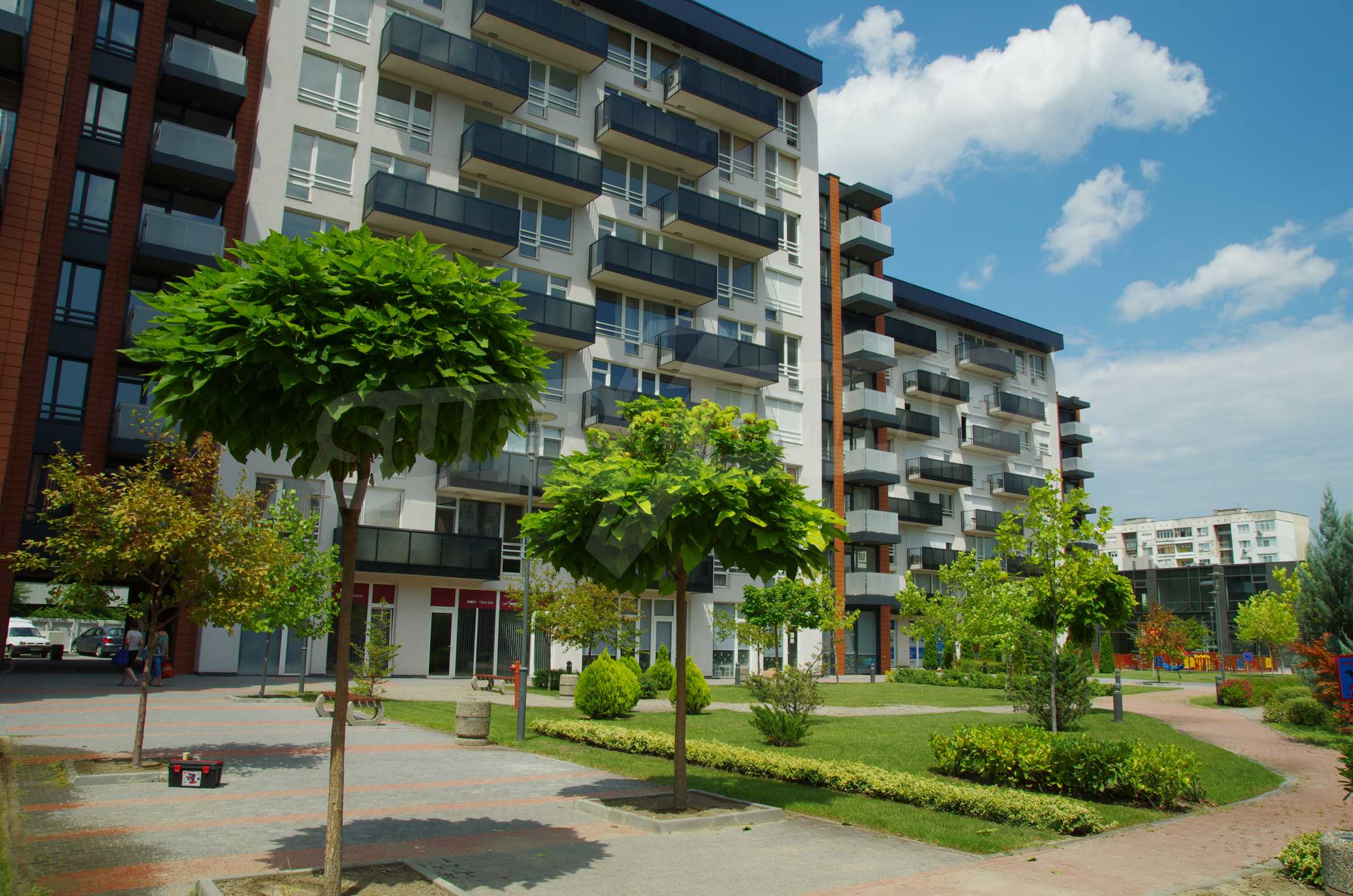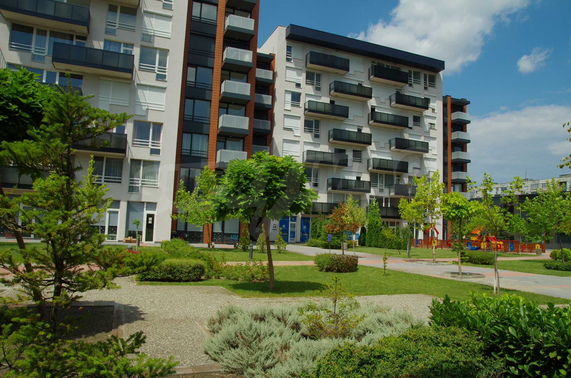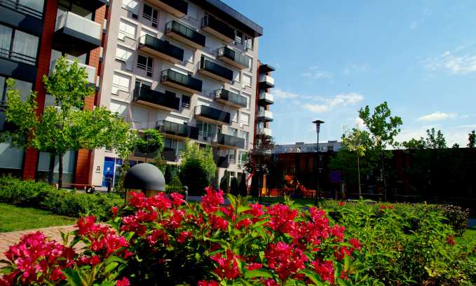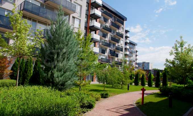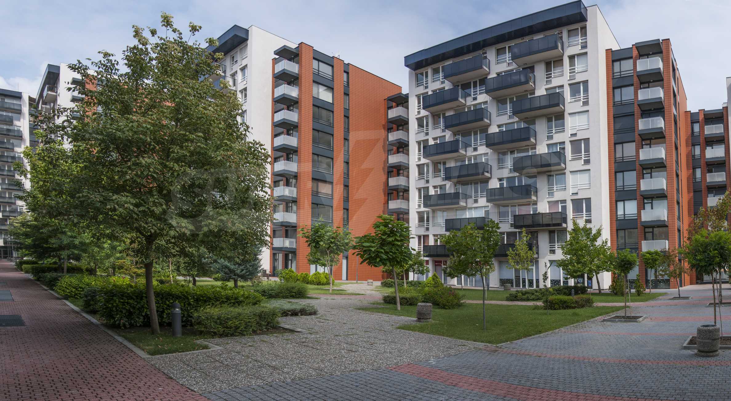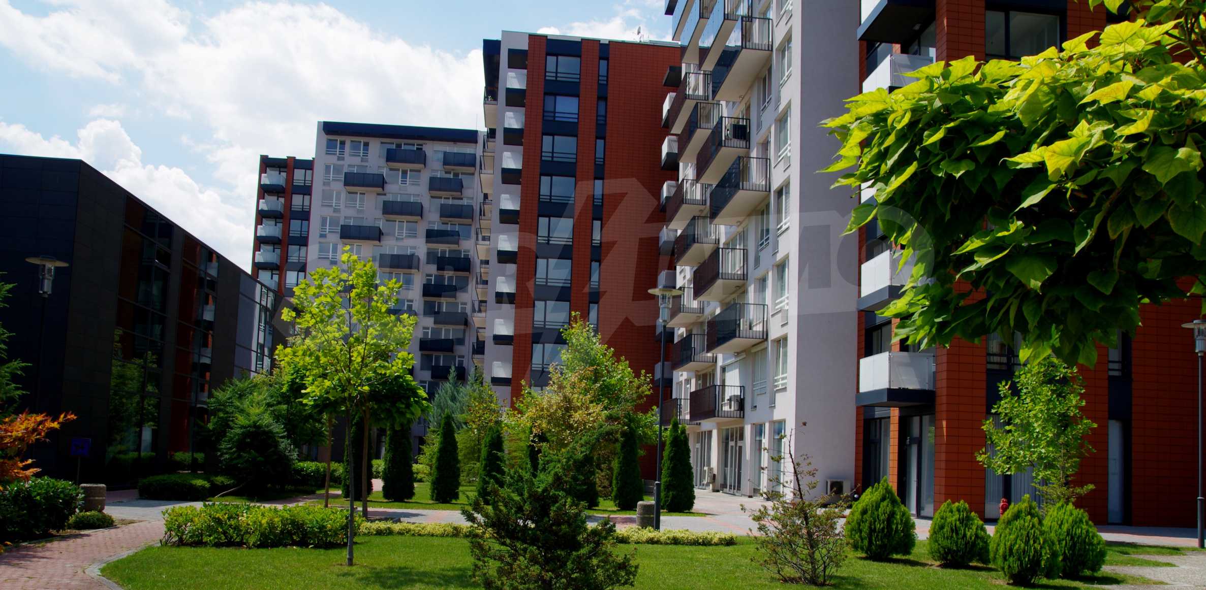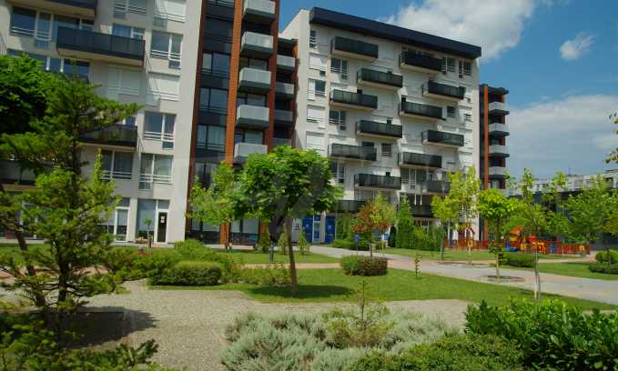 The complex consists of 5 residential sections with 267 apartments. The complex offers a variety of sizes studios, one, two and three bedroom apartments as well as numerous retail and office space for rent. The complex offers many additional amenities and services available to residents in it: kid's playground, cocktail bar, restaurant and coffee shop. In the central area of the complex is a separate parking area with over 2 acres of garden and a spacious playground, recreation and entertainment.