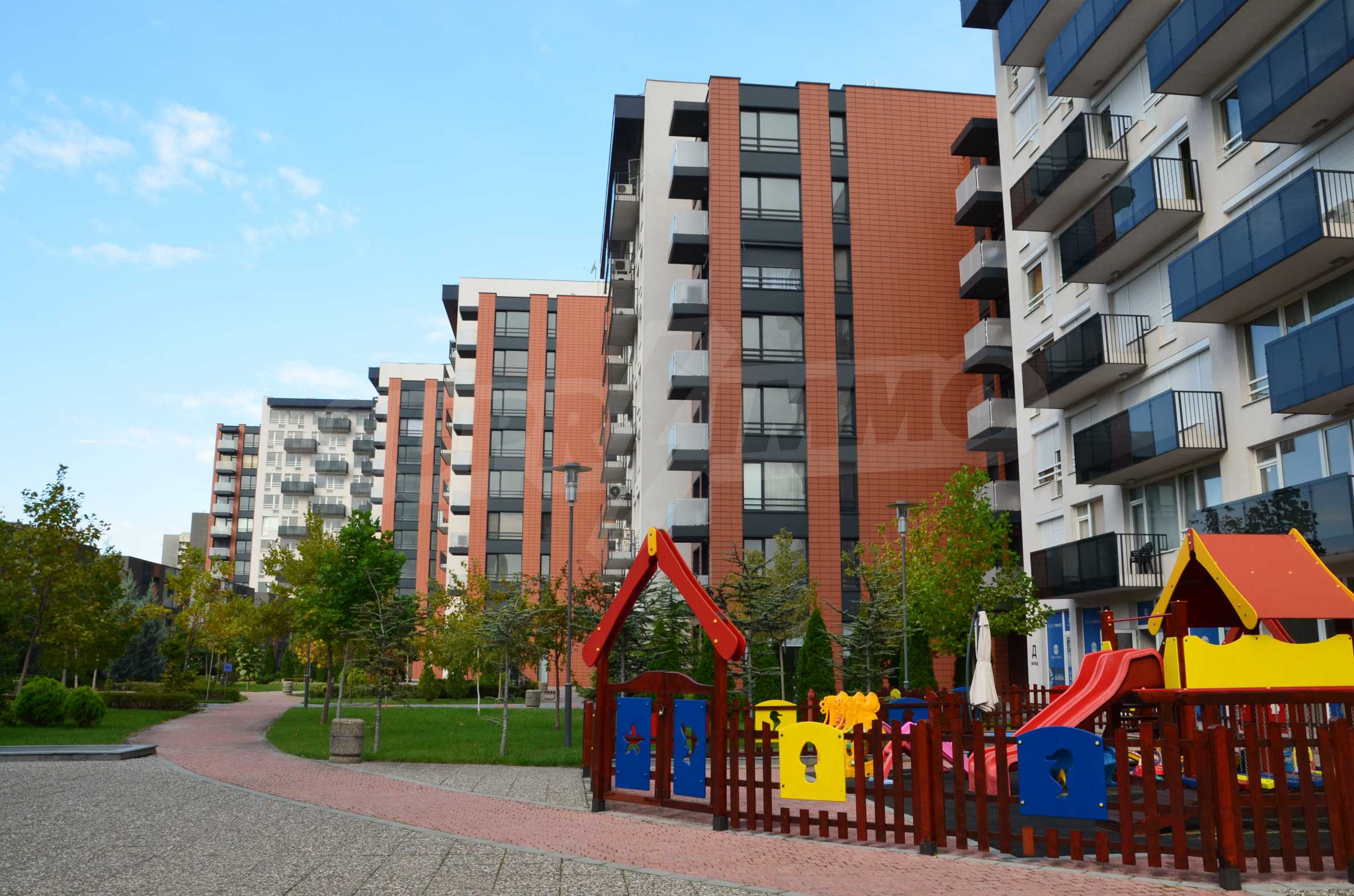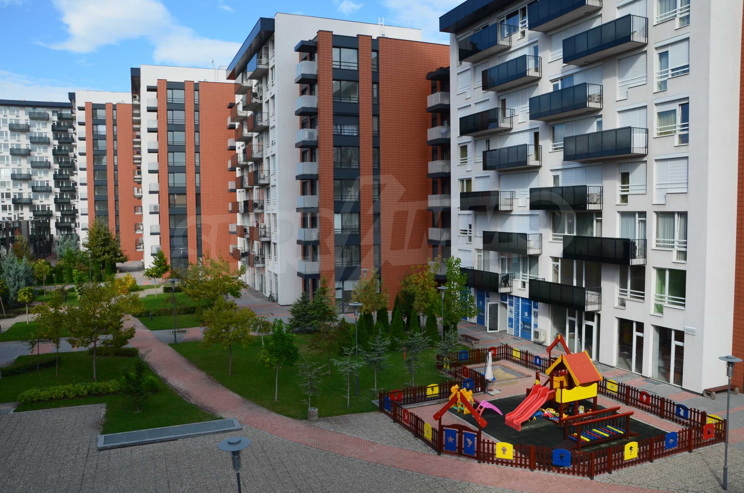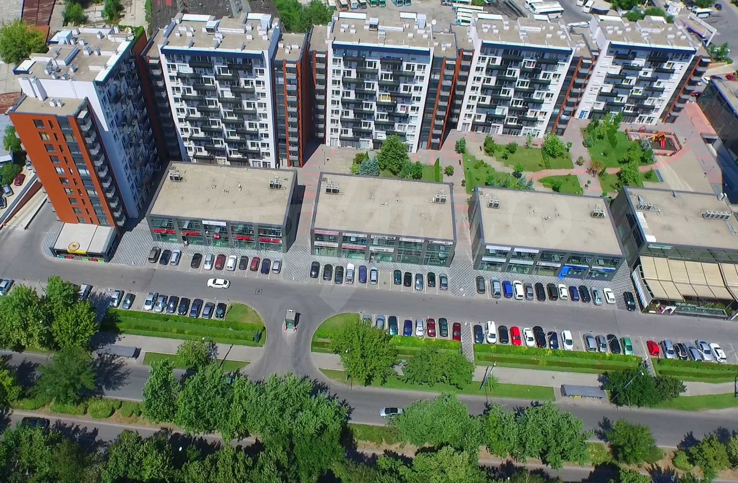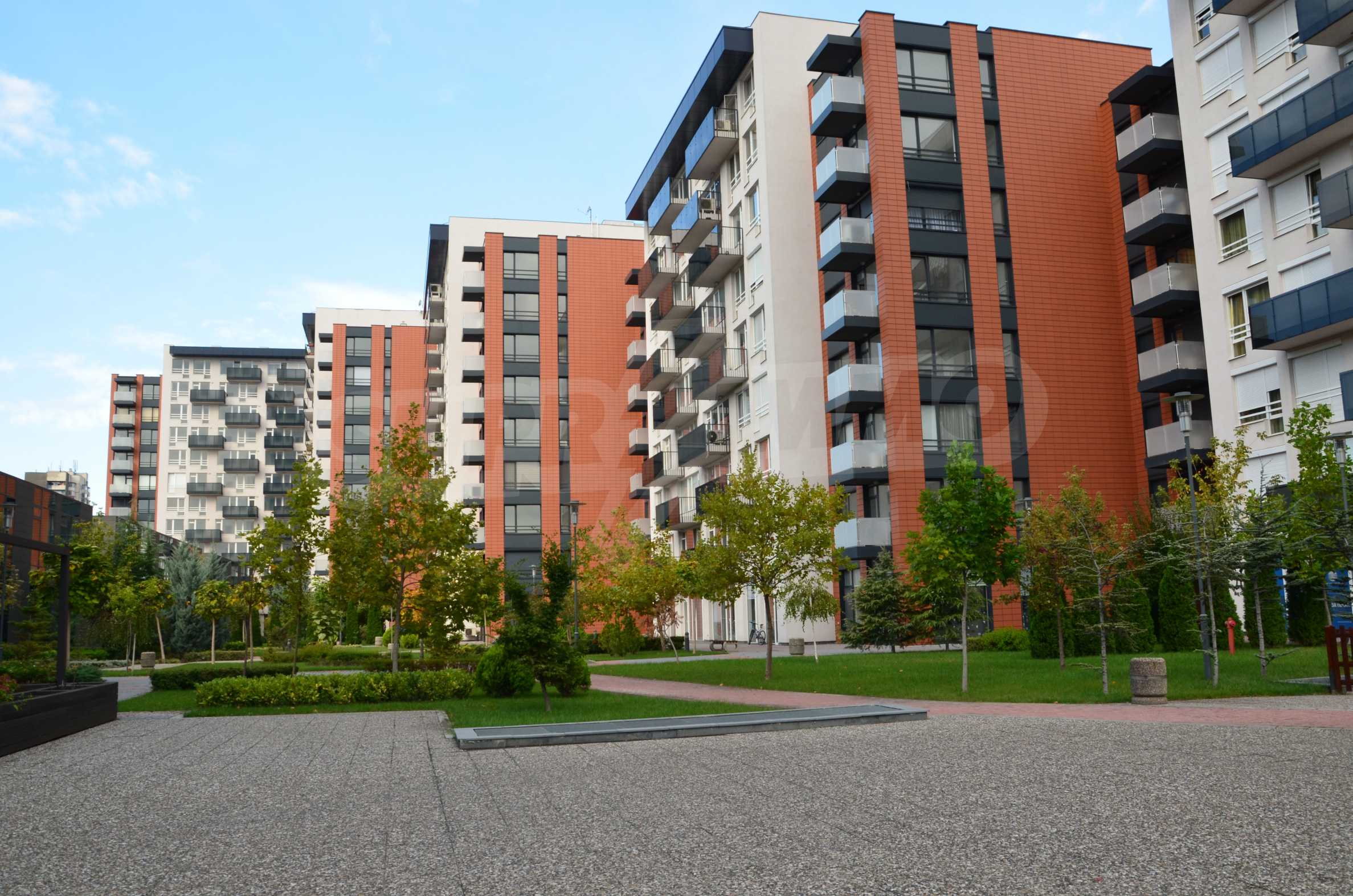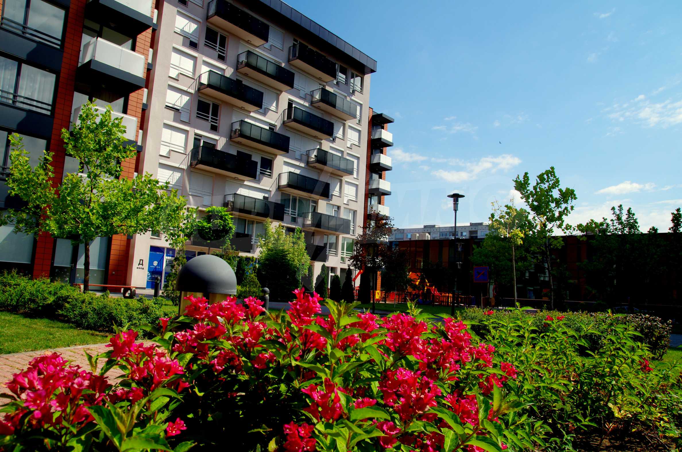 The complex consists of 5 residential sections with 267 apartments. The complex offers a variety of sizes studios, one, two and three bedroom apartments as well as numerous retail and office space for rent. The complex offers many additional amenities and services available to residents in it: kid's playground, cocktail bar, restaurant and coffee shop. In the central area of the complex is a separate parking area with over 2 acres of garden and a spacious playground, recreation and entertainment.