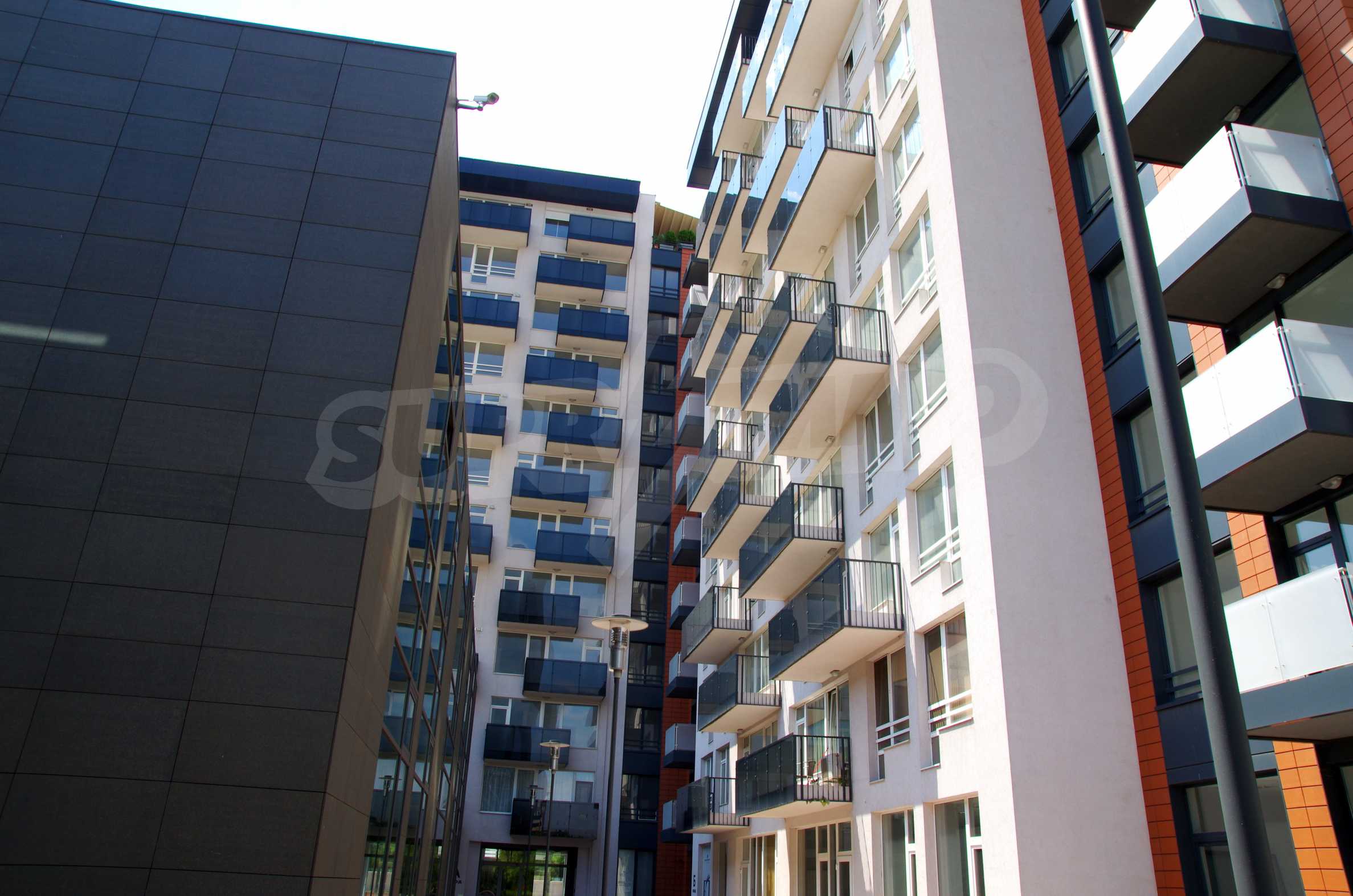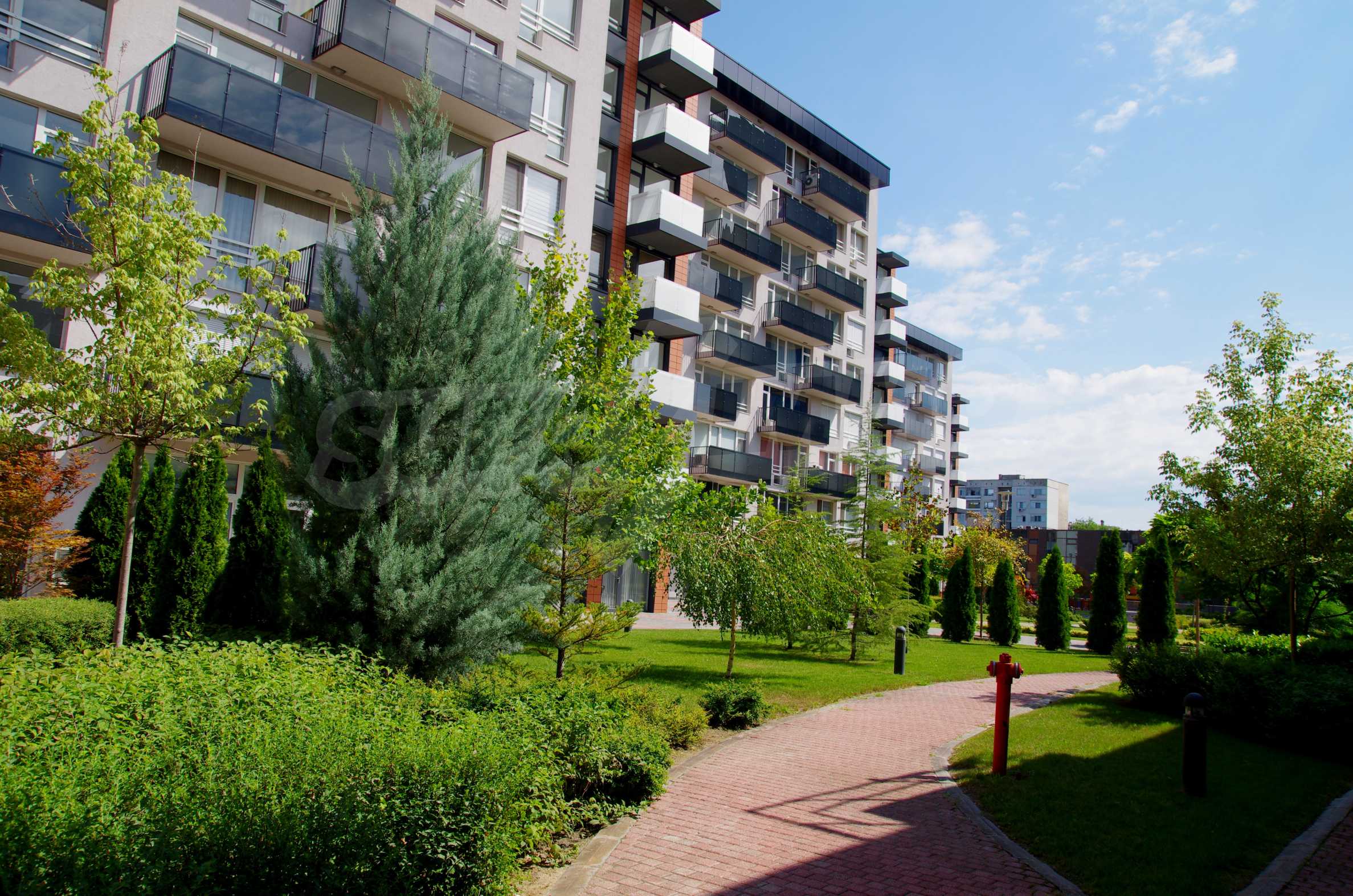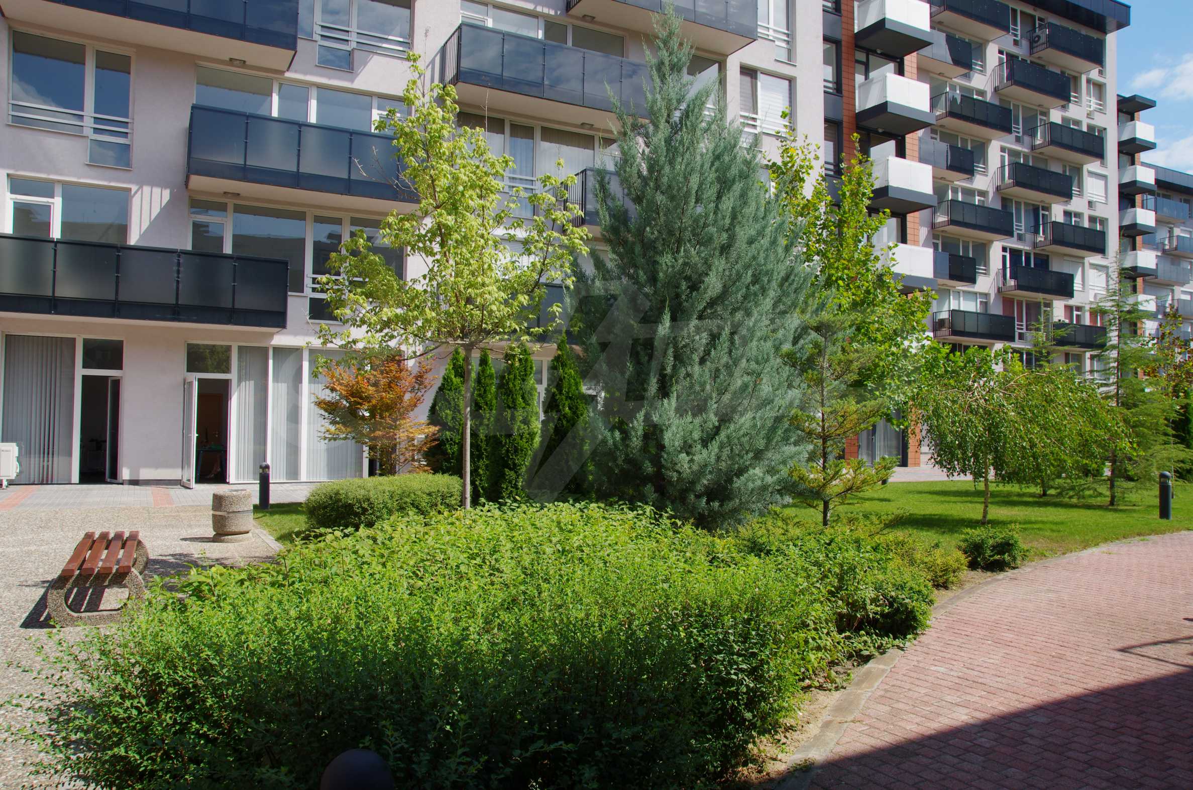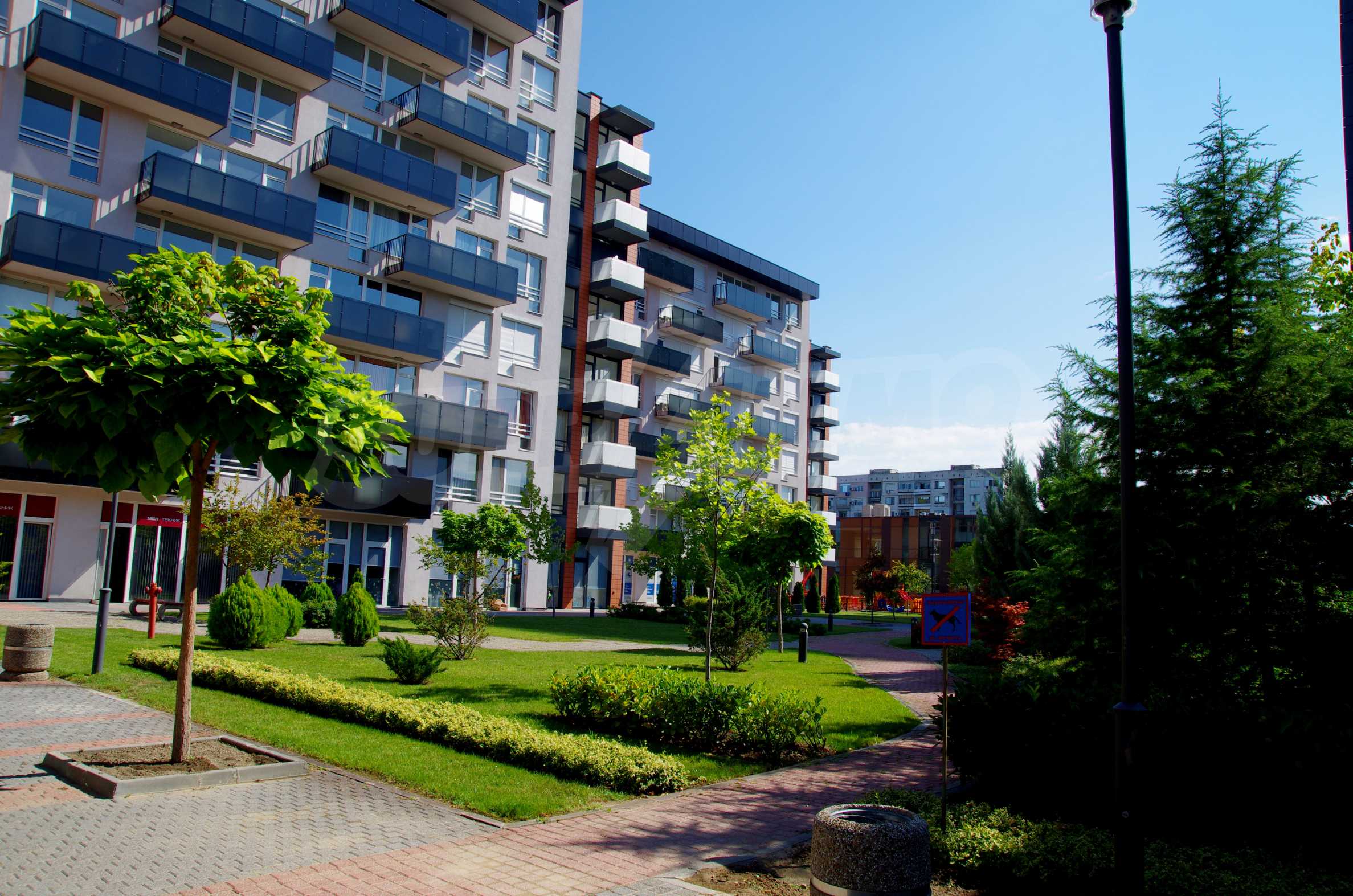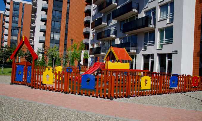 The complex consists of 5 residential sections with 267 apartments. The complex offers a variety of sizes studios, one, two and three bedroom apartments as well as numerous retail and office space for rent. The complex offers many additional amenities and services available to residents in it: kid's playground, cocktail bar, restaurant and coffee shop. In the central area of the complex is a separate parking area with over 2 acres of garden and a spacious playground, recreation and entertainment.