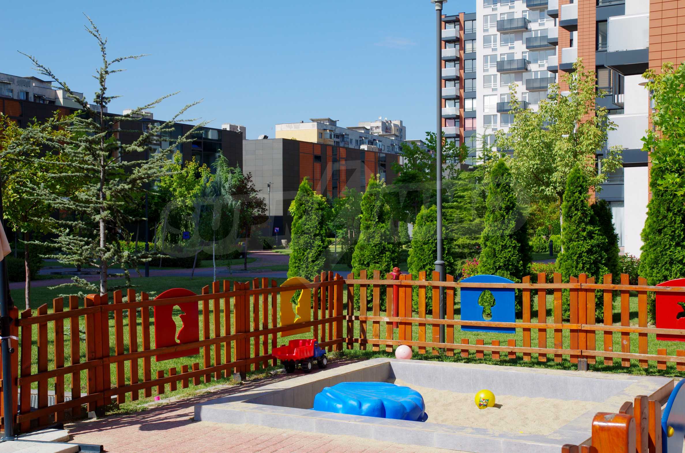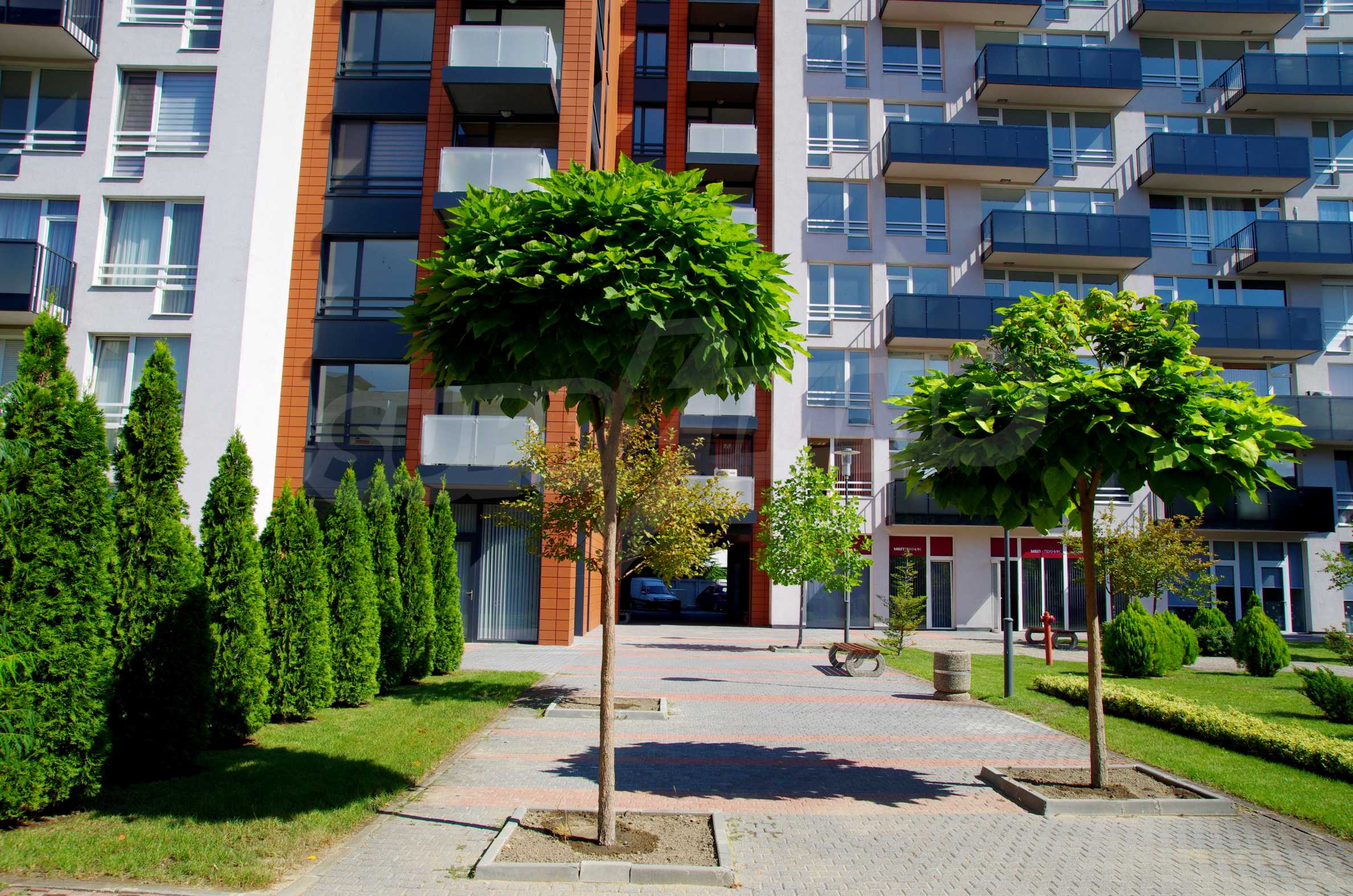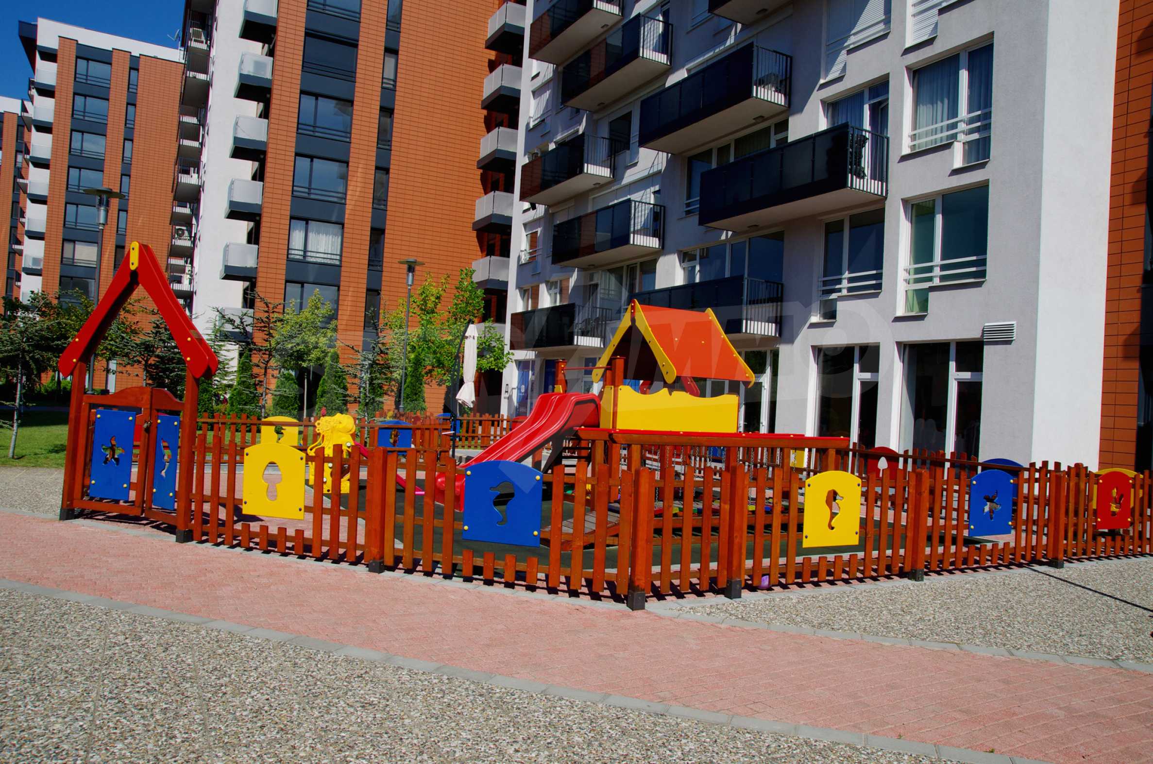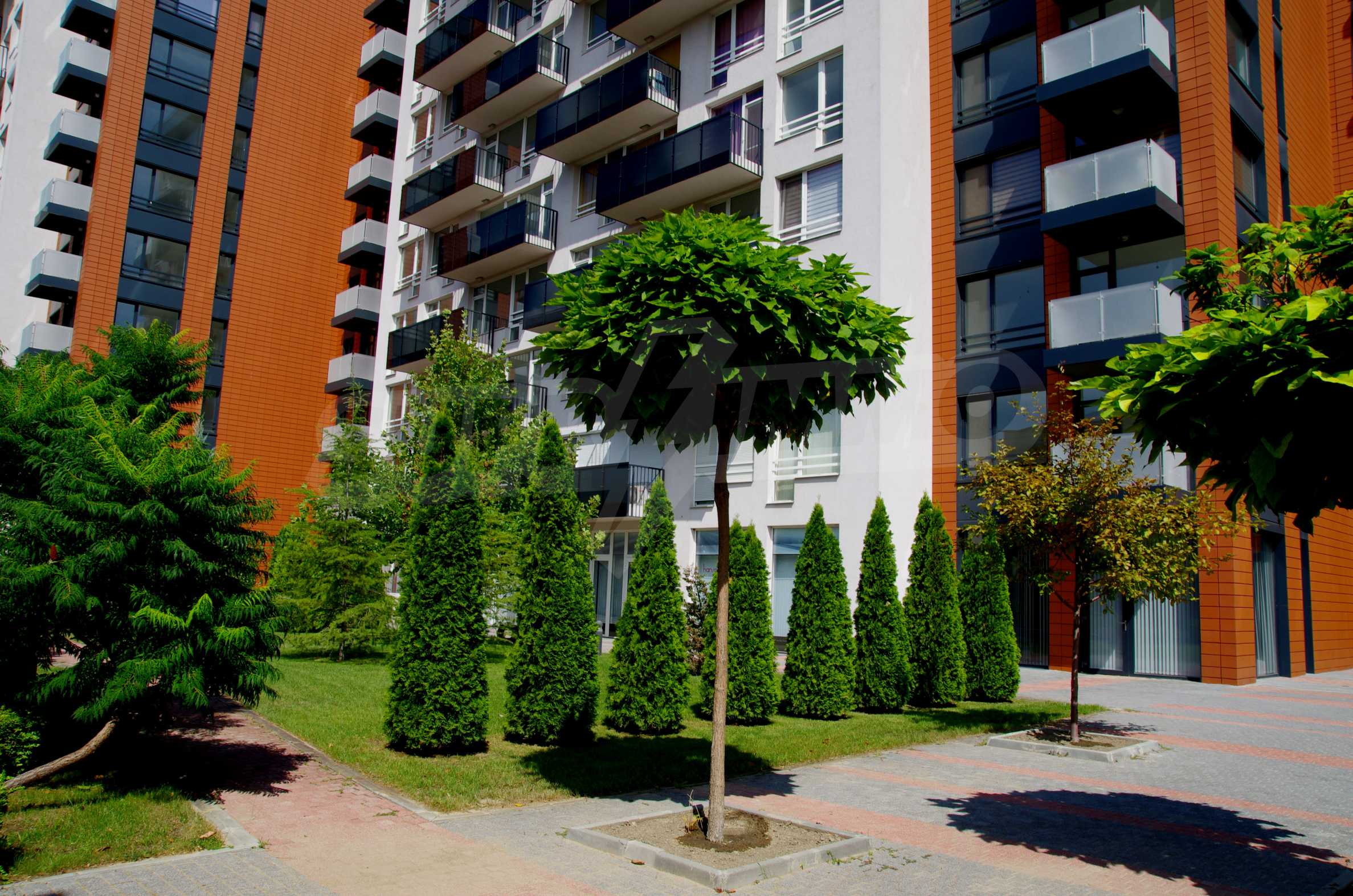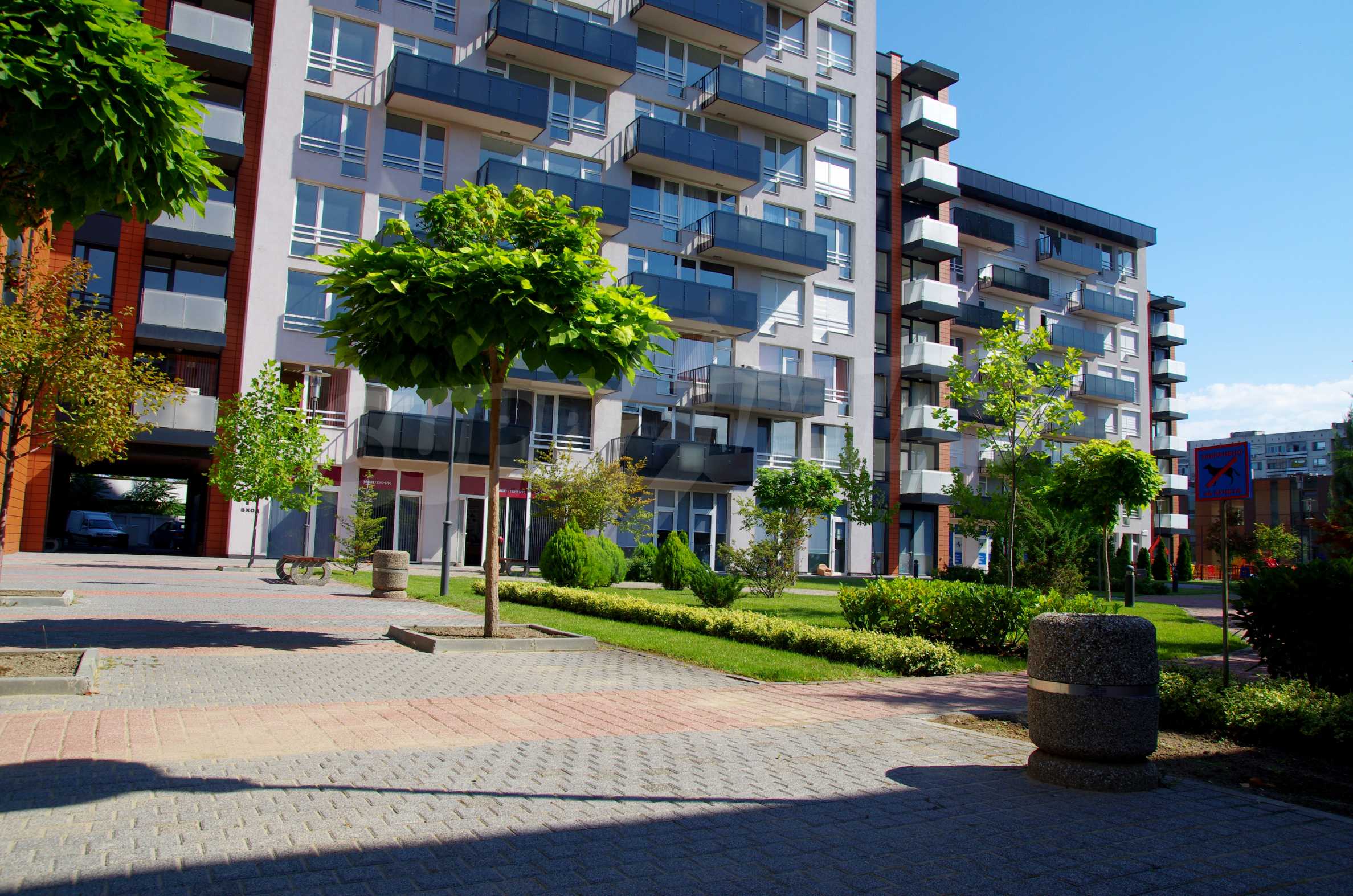 The complex consists of 5 residential sections with 267 apartments. The complex offers a variety of sizes studios, one, two and three bedroom apartments as well as numerous retail and office space for rent. The complex offers many additional amenities and services available to residents in it: kid's playground, cocktail bar, restaurant and coffee shop. In the central area of the complex is a separate parking area with over 2 acres of garden and a spacious playground, recreation and entertainment.
