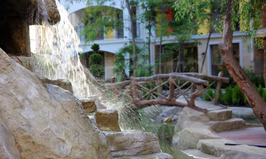 The landscaping of the garden is perfectly completed to the smallest detail, a relaxation in the inner garden, where there is a unique cave with a waterfall, a small river with fish, numerous areas for relaxation and walking, cozy arbors and a beautiful Japanese style garden. directly in front of the building, waterfalls and artificial streams, bridges and fountains, a mini amphitheater with chess pieces and the opportunity to play chess, beautifully arranged green spaces, gazebo for relaxation, jacuzzi and rattan furniture, glass vault cave, trampoline for jumping, "cottage of hobbies ". The complex is located near a park of 800 m2, which is located a few meters from the neighboring complex of the mini-resort. There is a volleyball court, football field, barbecue, small cottage for children and a playground. For the children are added more swings and slides.