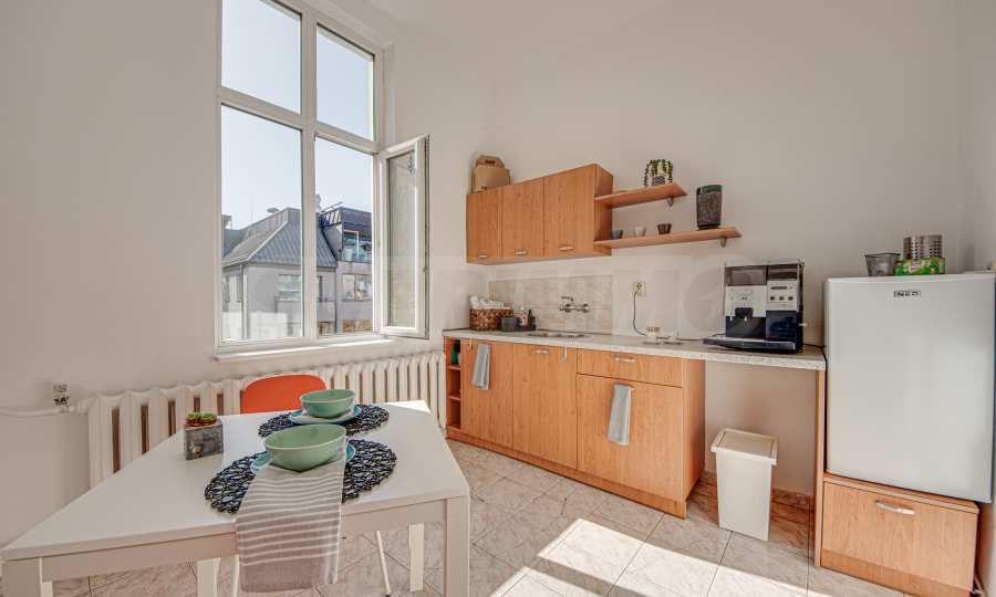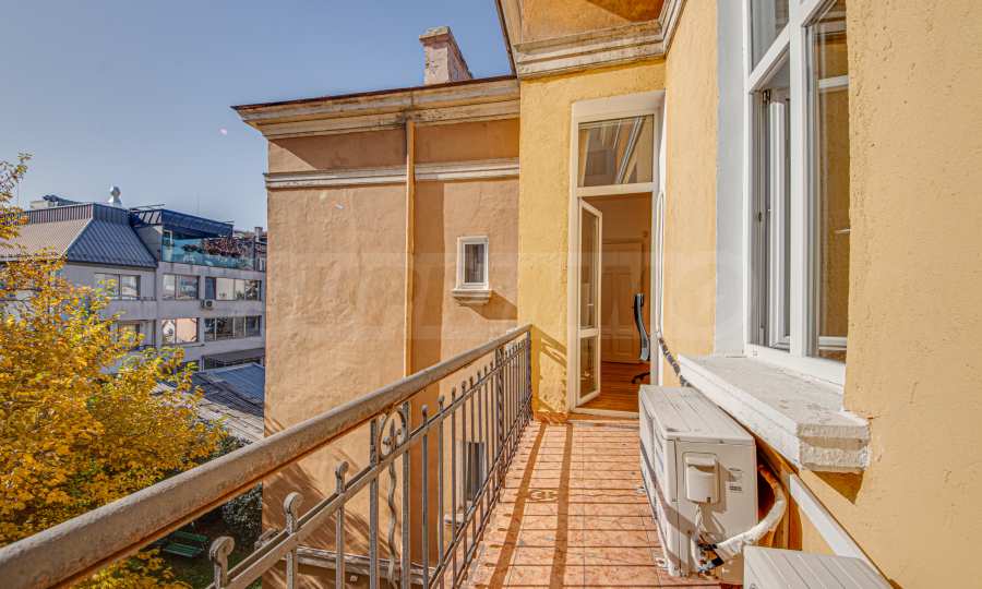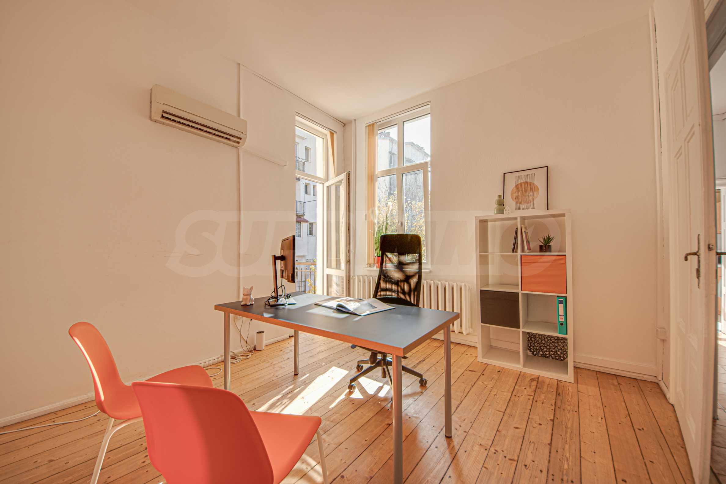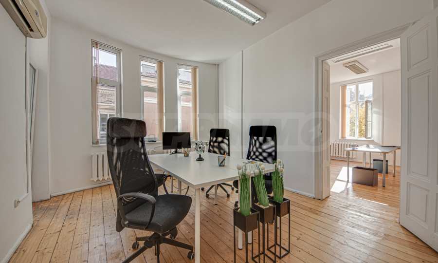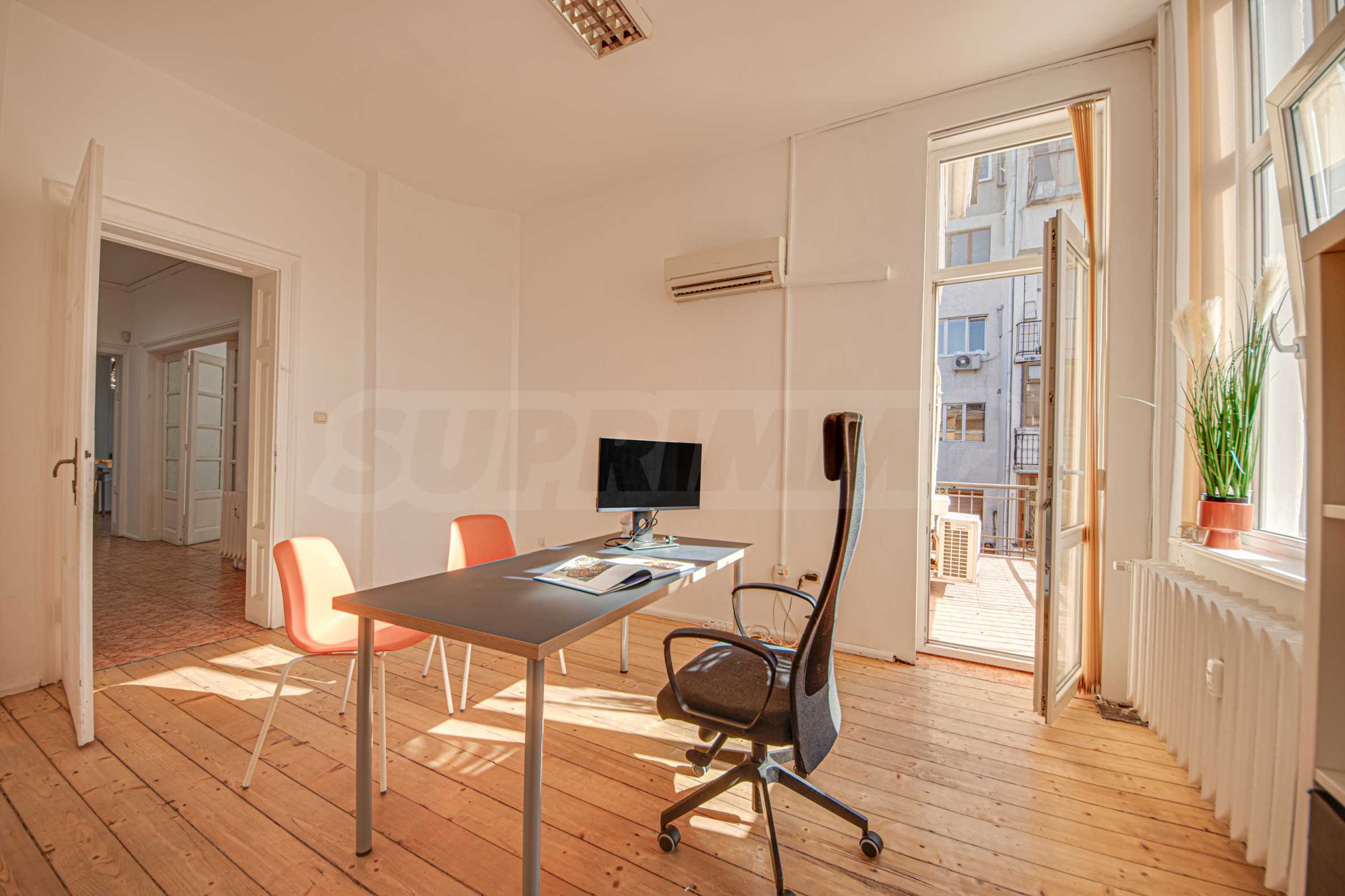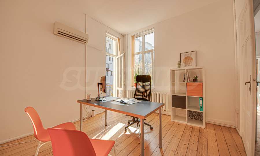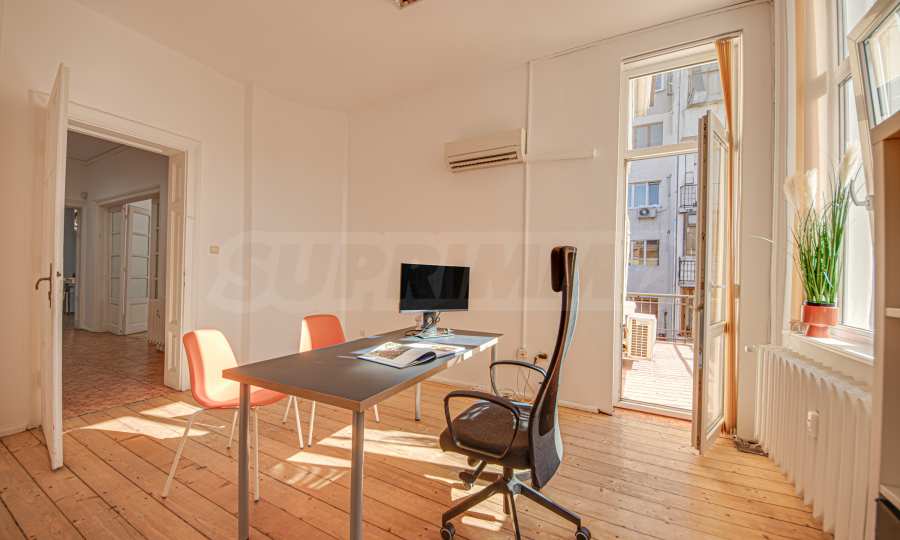 Spacious office for rent with excellent location in the center of the town, on the corner of "Vitosha" Blvd. and "Solunska" Str. The area is constantly evolving and constantly improving. The access is convenient and easy from all parts of the city. The property is located in a cultural heritage building, constructed in 1915. There is central heating and six air conditioners "Nippon".