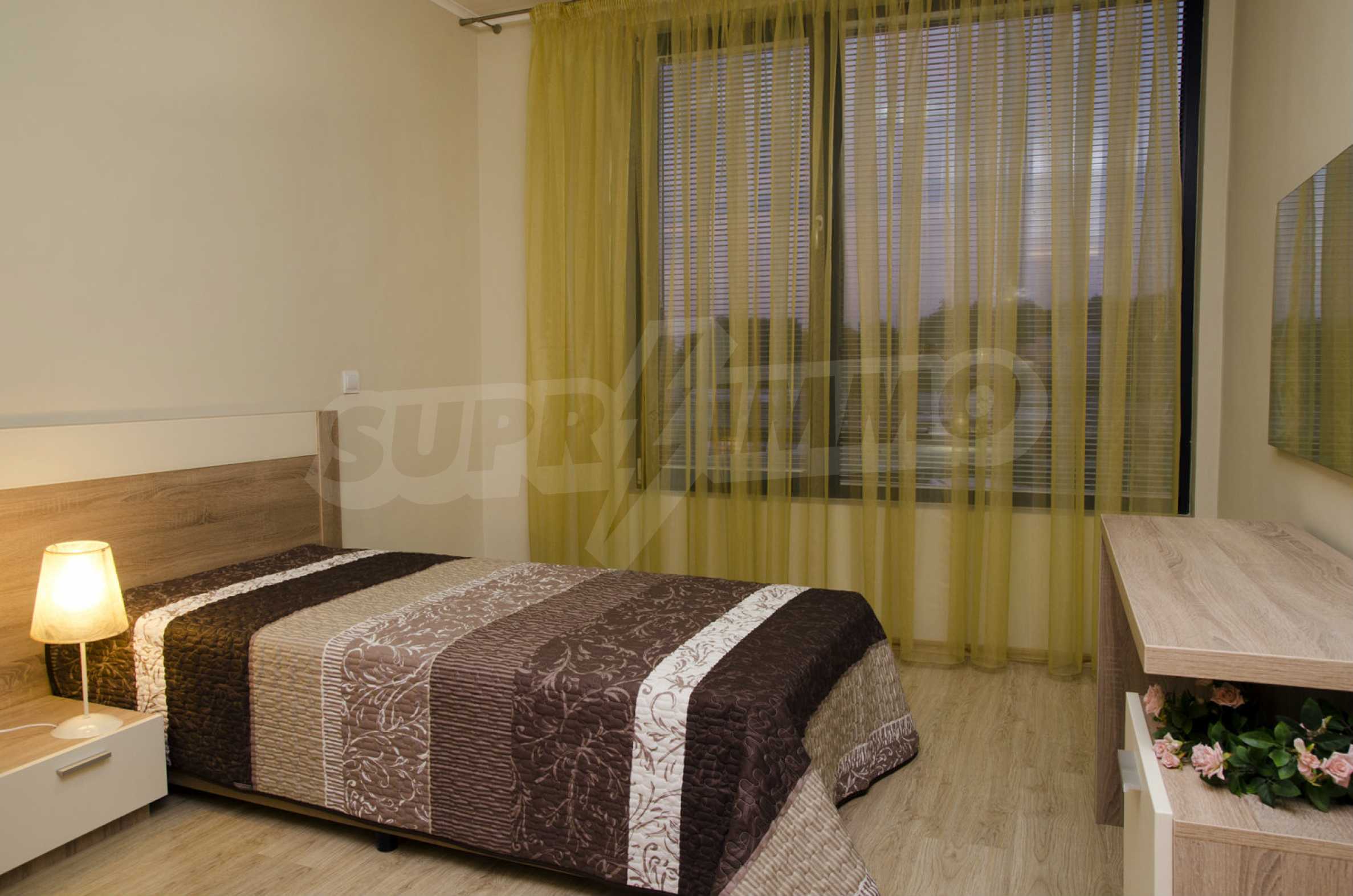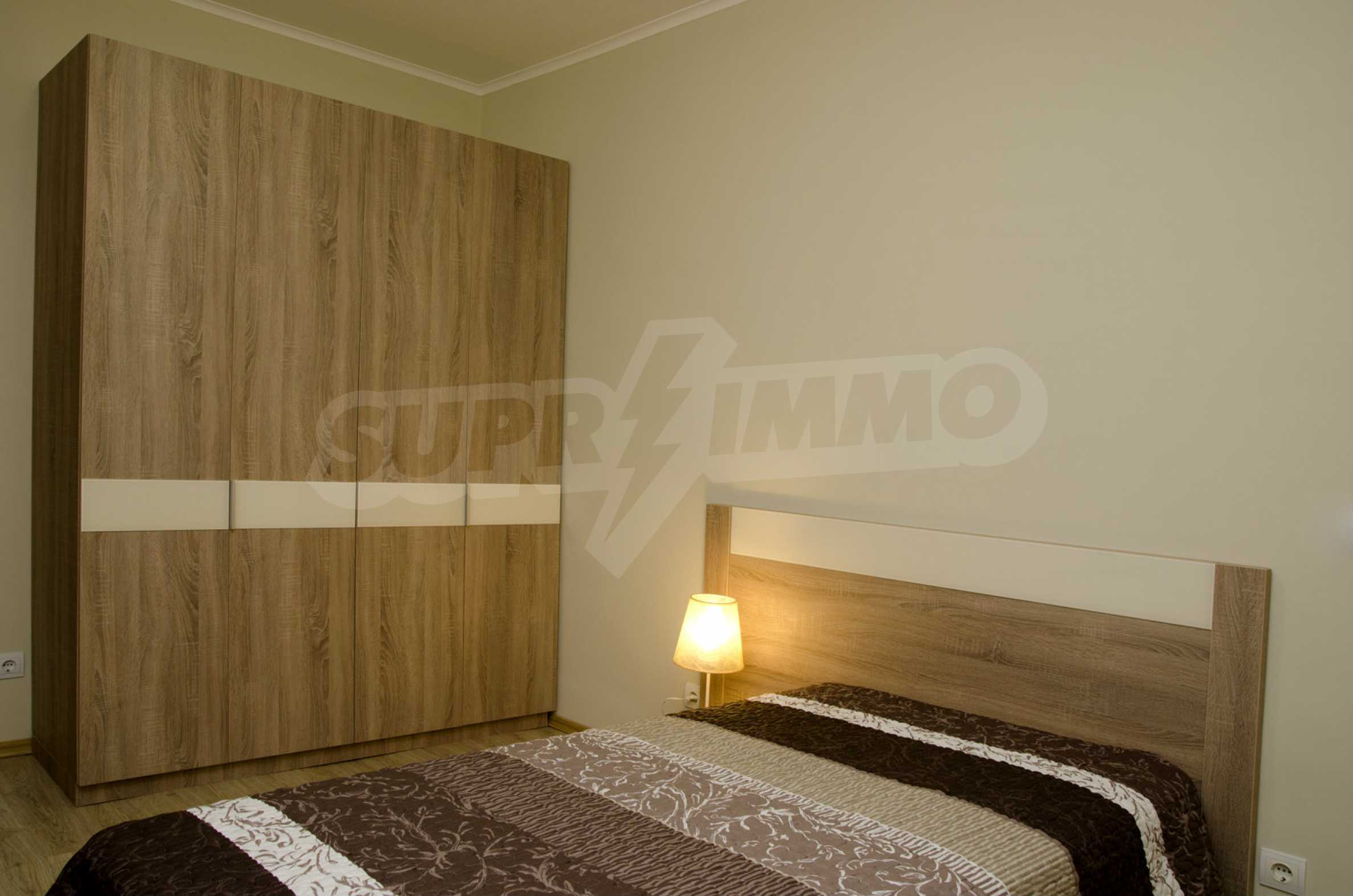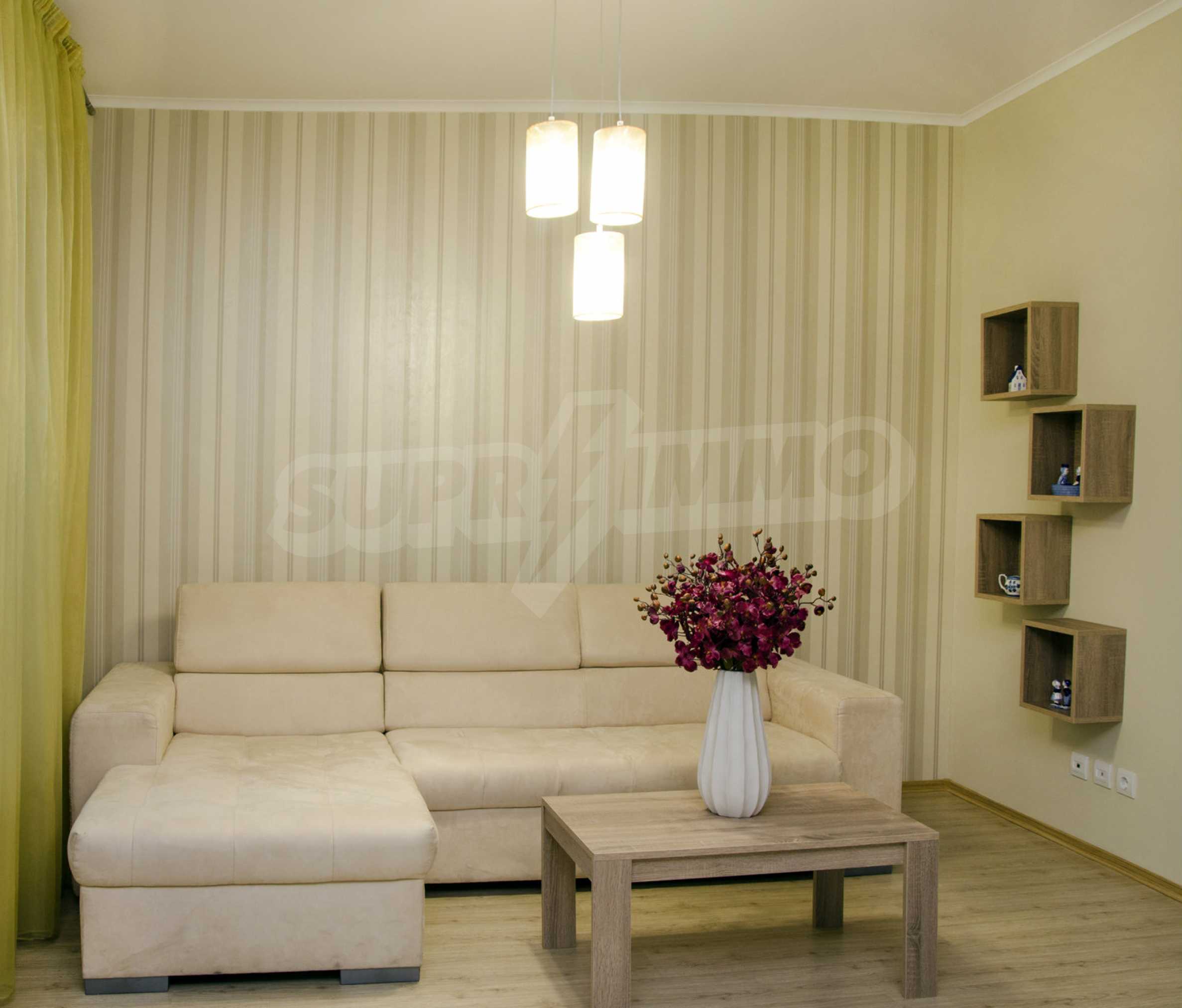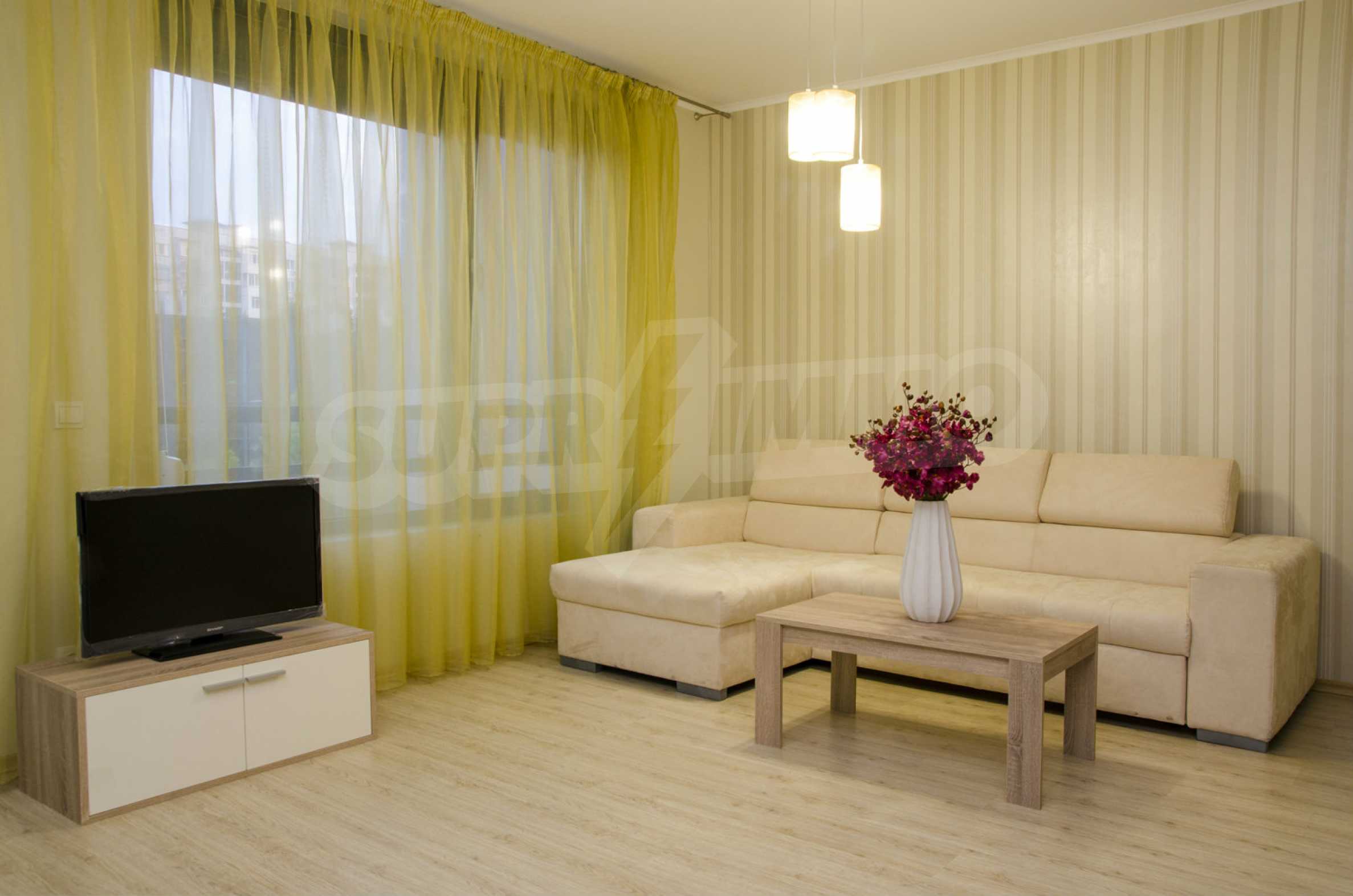 Today our offers include the rent of an excellent fully furnished two-bedroom apartment in the complex Royal City in the Karshiyaka district in Plovdiv. The residential complex is gated and is located in one of the most attractive areas in the city of Plovdiv. The complex is equipped with an elevator and offers its residents a variety of amenities such as shops, cafes, restaurants, a children's center, a fitness center, and SPA treatments. It is also equipped with 24-hour security and video surveillance as the rent includes the fee for the maintenance of the common areas and the security.