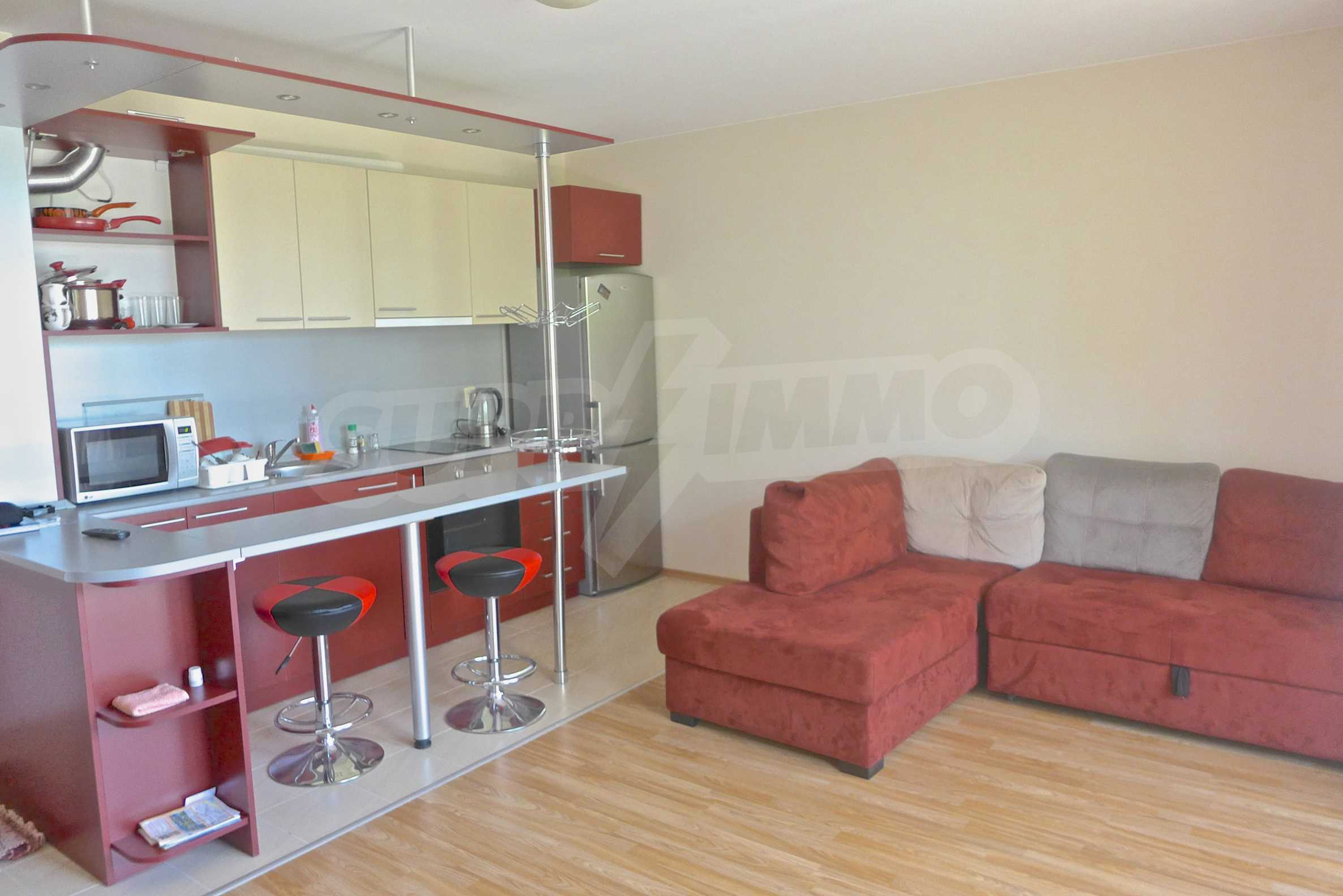 We offer you this 1-bedroom apartment with a total area of 55 m2 which is situated in a gated development Mellia Resort, located just 150 m from the sea. Mellia Resort consists of four modern holiday complexes with apartments that enjoy a prime location and proximity to the beach in the family resort Ravda. Views that are revealed from the apartments in the four complex are to the town and the sea. The building is fully developed infrastructure, with all necessary facilities and entertainment venues. Nearby are placed many nightclubs and restaurants, shops and amusement park for children and adults.