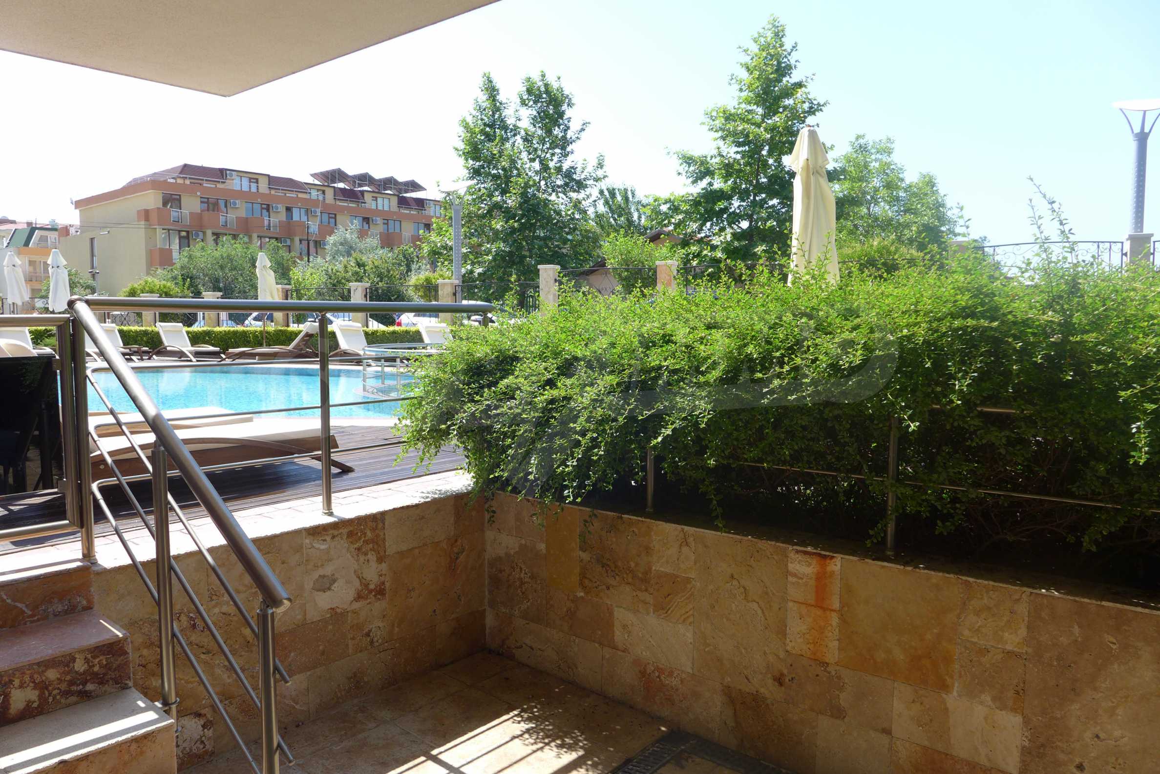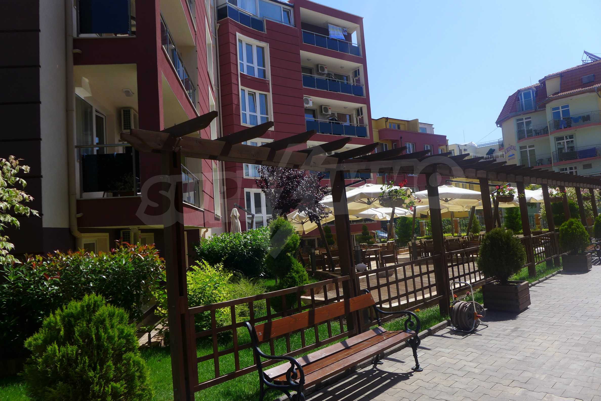 The complexe is located in a peaceful area, yet close to the places for dining and entertainment. The resort offers excellent opportunities for swimming and sunbathing, as well as for practicing a range of water sports, fishing, cultural and historical sightseeing in the nearby cities of Nessebar and Sozopol.