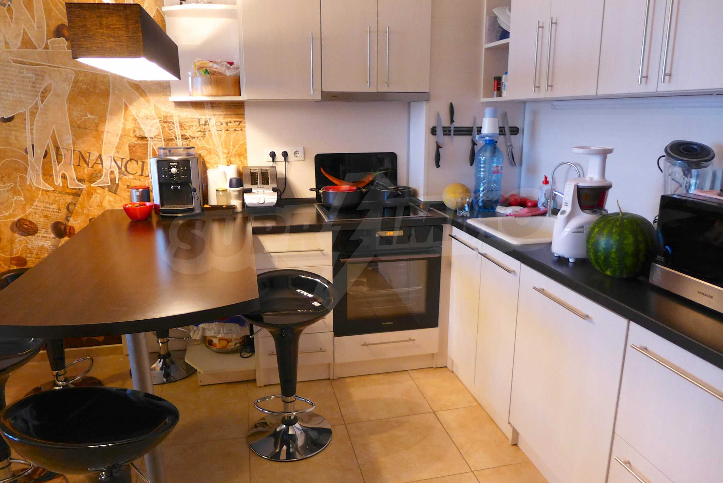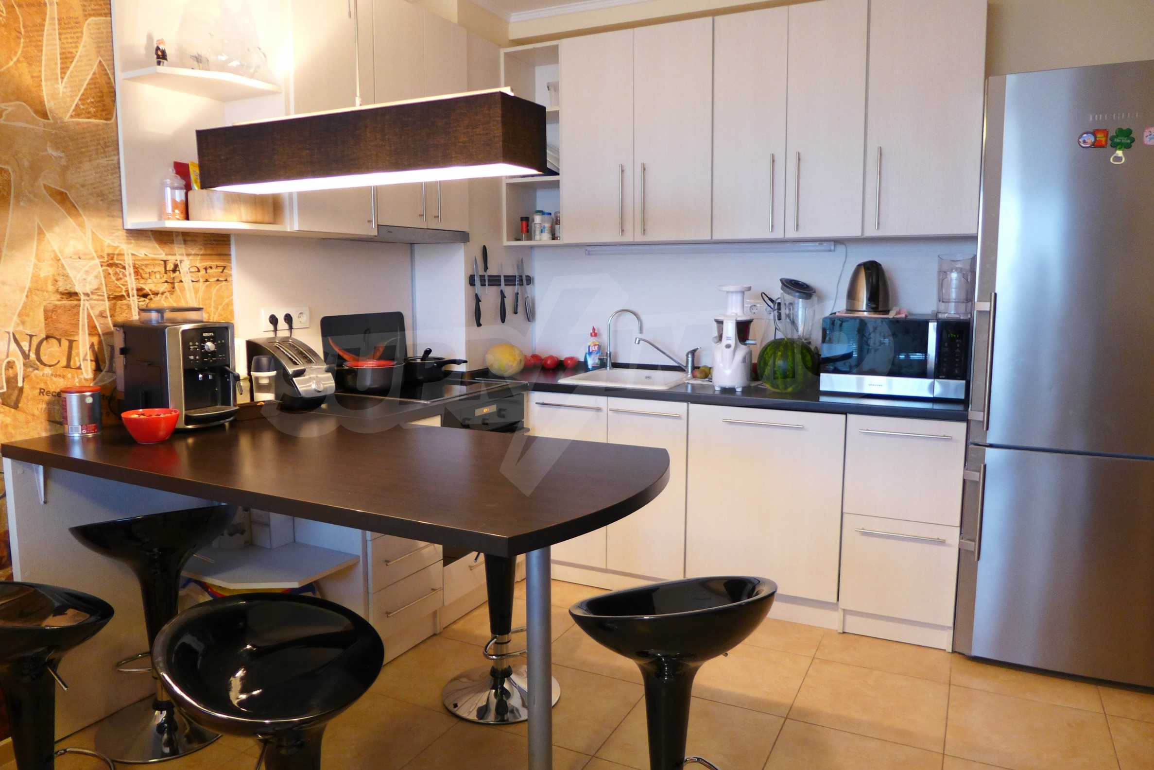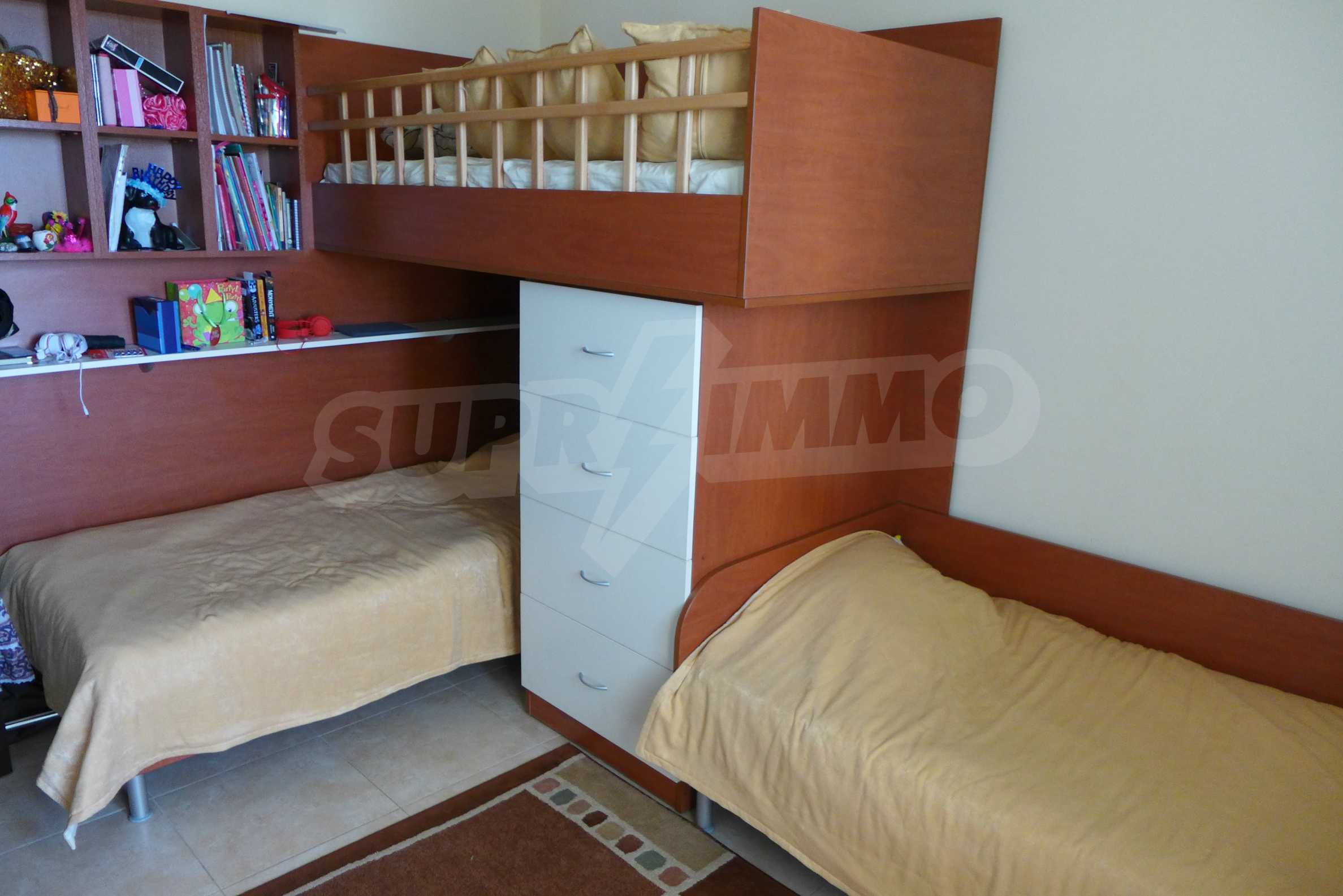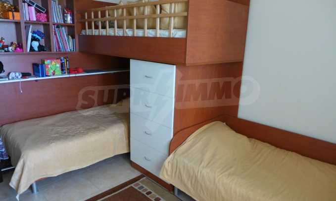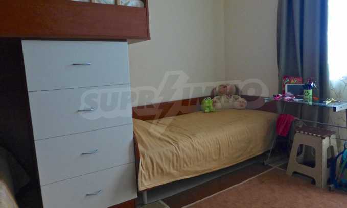 The described holiday home is located on the second floor with an area of 95 sq.m., divided between a living room with kitchenette, two bedrooms, two bathrooms with WC and two balconies (one overlooking the swimming pool in the complex, and the other - the mountains). The flooring is tiled, the walls painted and the windows are PVC. The complete furniture and equipment can be viewed in the photos. The annual maintenance fee is 600 euros per year.